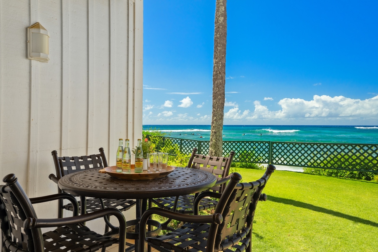 This is a leasehold property. At Kiahuna Plantation in Poipu Beach, opportunities like this are rare. This one-bedroom, one-bath condominium is one of only a handful of oceanfront units in the resort–and the views set it apart. From the living room, lanai, or even the kitchen, you can take in wide, unobstructed ocean vistas and sunsets that define the experience of being directly on the shoreline. Very few locations within the property offers this perspective.
