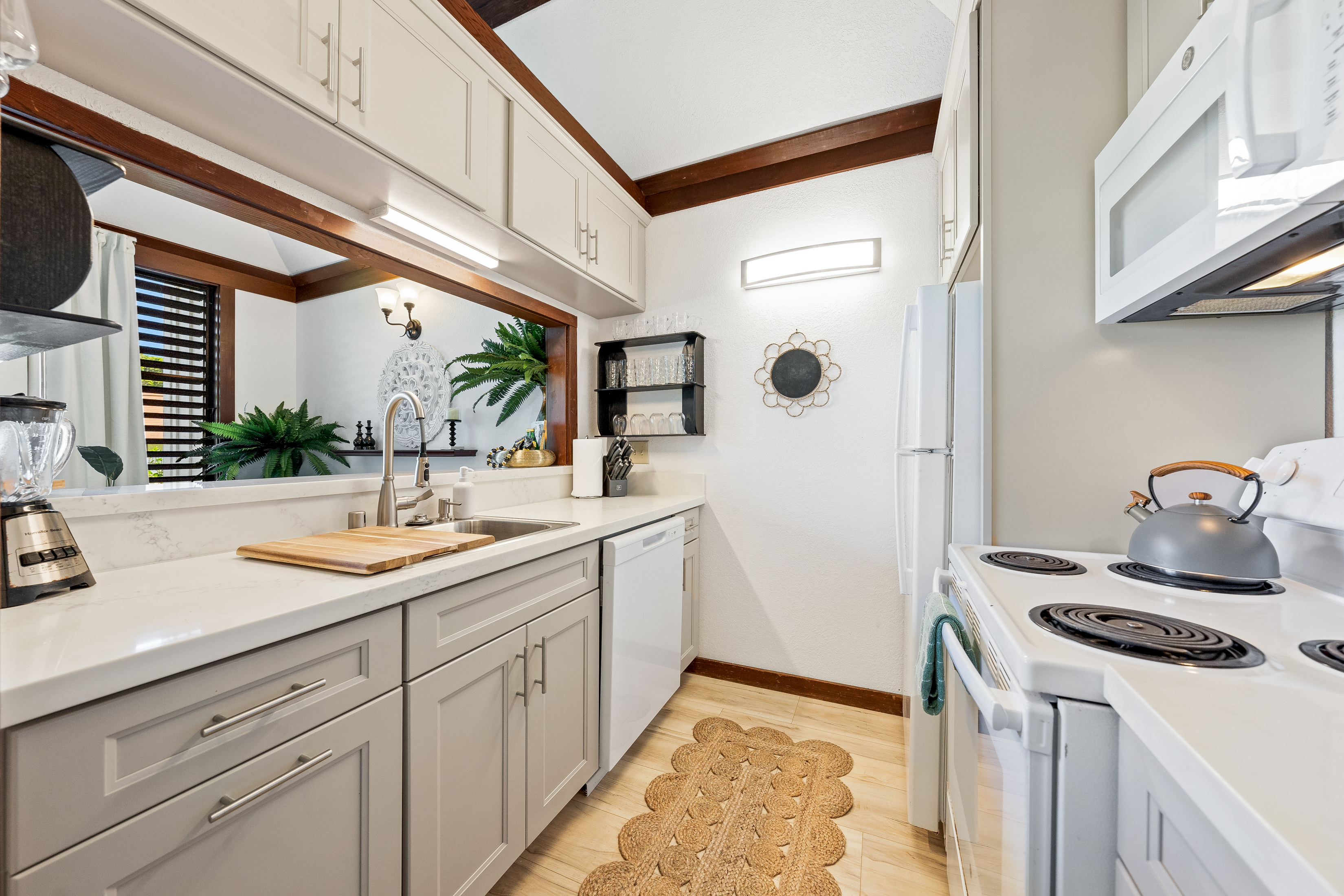 This is a leasehold property. Completely renovated ground-floor condo in one of the most captivating places on earth. With its breathtaking beauty and laid-back lifestyle, few destinations compare to Kauai. This desirable ground-floor unit offers direct access from the private lanai to a lush, manicured lawn–perfect for indoor-outdoor living. Enjoy meals on the lanai, open the windows for fresh island breezes, or relax in the bright one-bedroom featuring a king-size bed and abundant natural light. Air conditioning keeps the space comfortable during warm south shore summers. Beautifully furnished and truly turnkey, the condo features a fully equipped kitchen with full-size appliances and recent updates including fresh paint, updated flooring, cabinetry, countertops, and fixtures. A short stroll across expansive grounds leads to resort amenities, including a pristine swimming beach. HOA dues cover access to the pool, gym, on-site restaurant, poolside food and beverage service, towel service, 24-hour security, parking, utilities, and more. Ideal as a personal island retreat or a successful vacation rental. Fully furnished and future bookings may be included, creating a seamless turnkey opportunity.