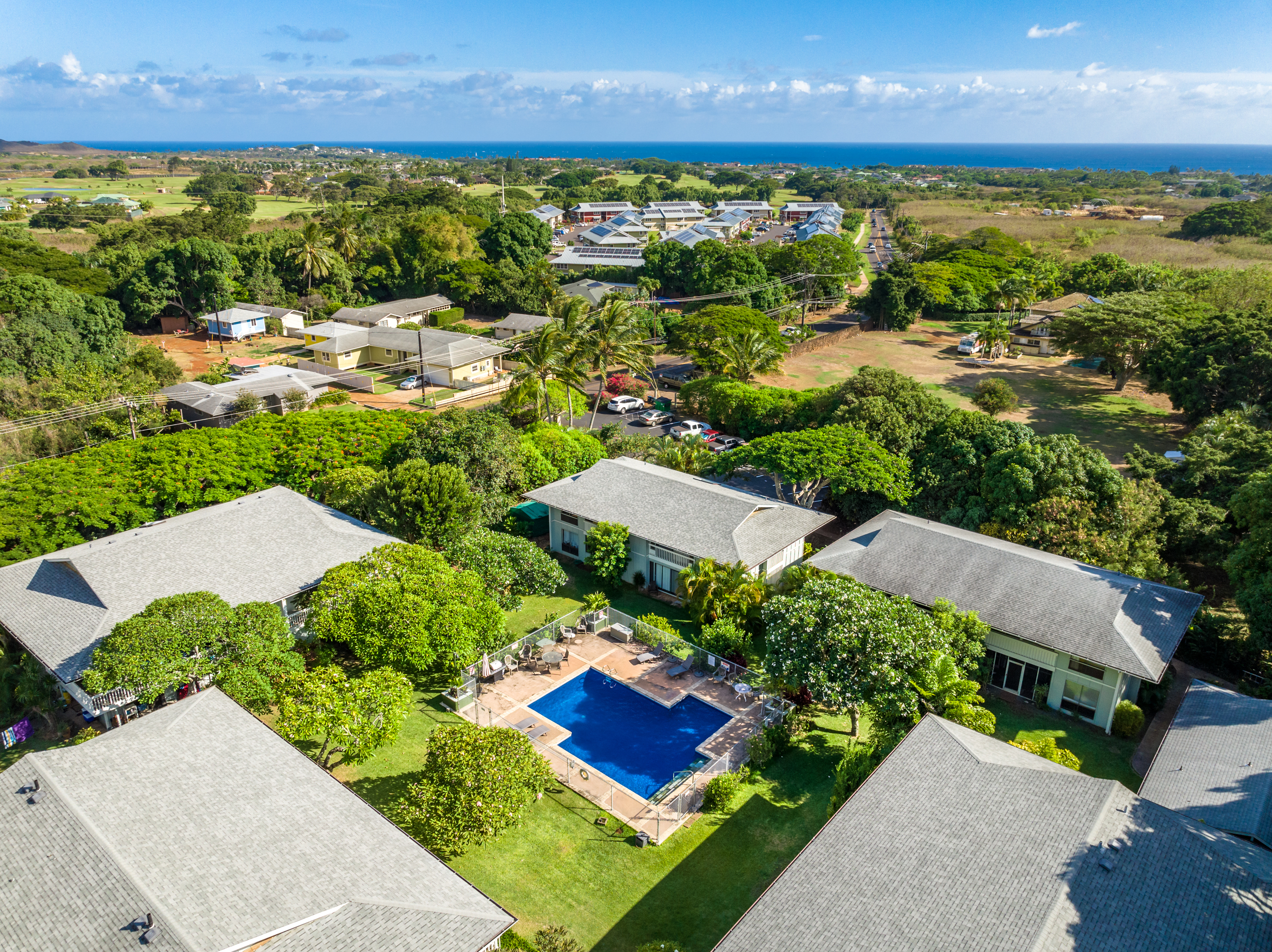 Koloa Garden Apartments is located near Koloa town, with access to shopping, dining, and medical services. Poipu Beach is within a short driving distance. The complex includes a swimming pool and shared outdoor areas.