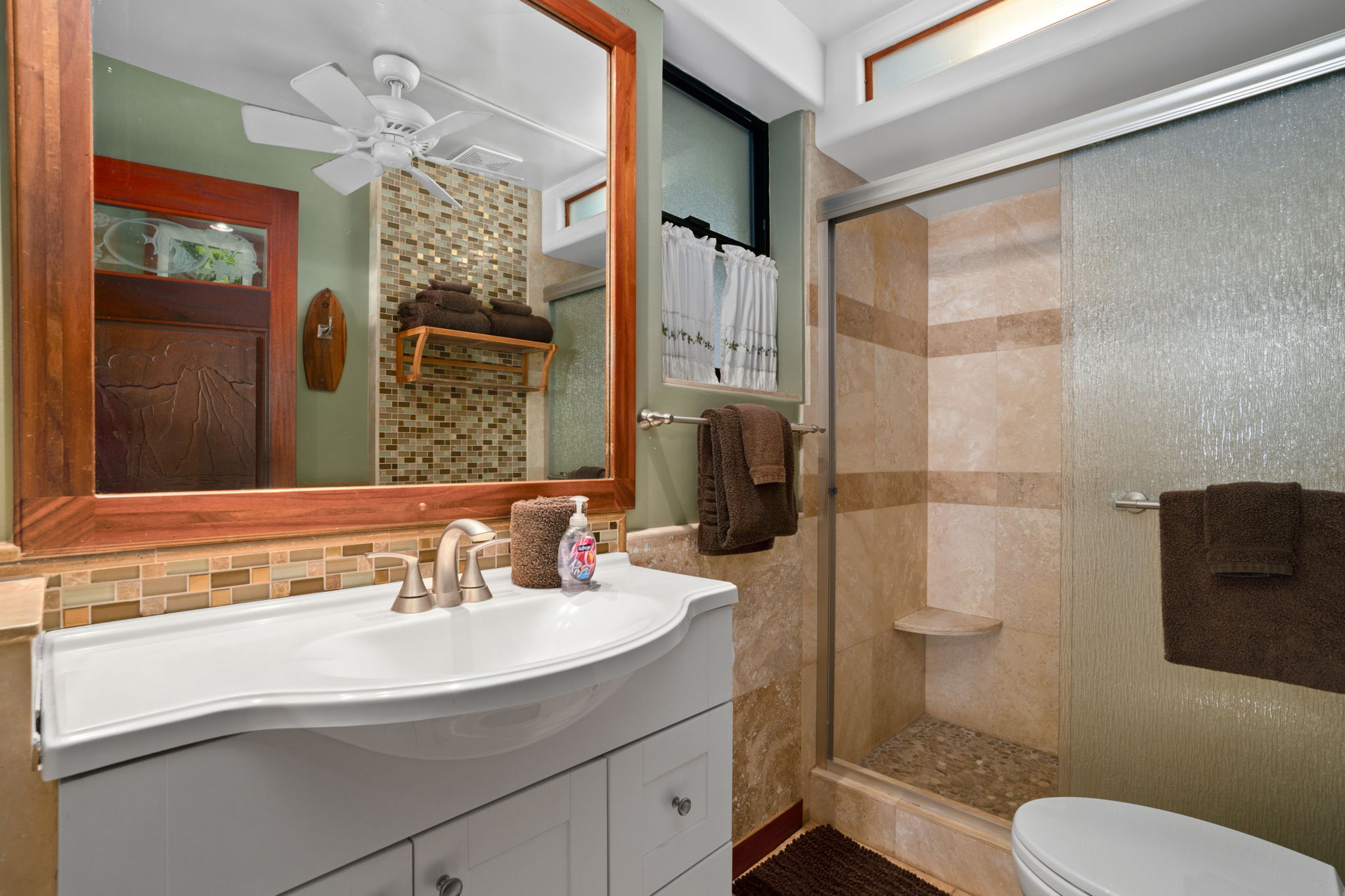 Inside, you’ll find warm and inviting Hawaiiana-inspired décor, blending tropical textures, island artwork, and vintage touches that celebrate the spirit of Kauai. The bright open layout includes a comfortable living area, well-equipped kitchen, and a private lanai for relaxing to the sound of the waves. A split-system A/C keeps the space cool and comfortable year-round.