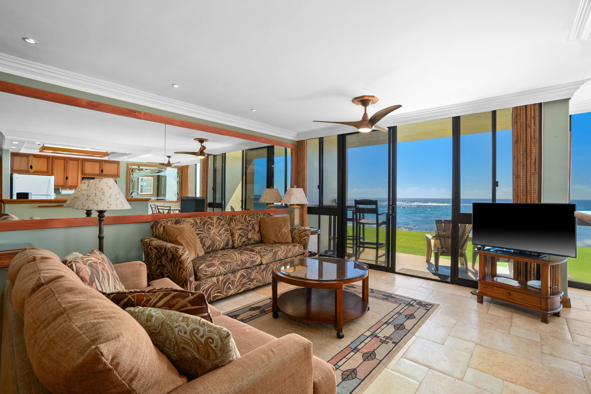 Welcome to Kuhio Shores #113, a charming 1-bedroom/1-bath oceanfront condo where laid-back island living meets thoughtful comfort. Located on the ground floor, this unit offers easy access to the oceanfront lawn–perfect for watching sea turtles, surfers, and spectacular sunsets right outside your door.
