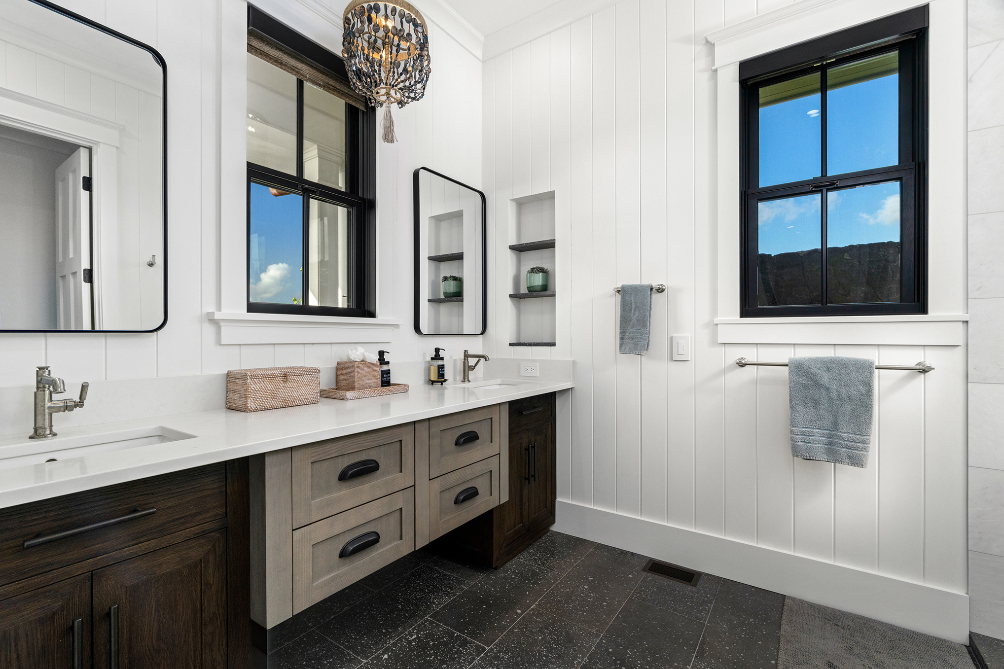 The grounds are equally artful, featuring terraced tropical landscaping, a custom-engineered pool and spa, and one of Kukui?ula’s only approved pickleball courts. A grand entry drive, sculpted pavers, and a striking golden rainbow shower tree further elevate the sense of place. A 2½-car garage with workshop, EV conduit, and smart storage adds practicality without compromising design.