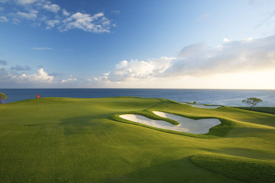 Inside, bespoke craftsmanship defines every space. Museum-grade solid Koa furnishings, American Walnut wide-plank floors, and Ipe wood lana?i enrich the home with warmth and timeless sophistication. The interiors reflect refined Hawaiian modern design–clean, soulful, and rooted in place. The vaulted great room, with its coffered ceilings and exposed beams, draws the eye toward endless Pacific horizons, while a gourmet kitchen equipped with a Wolf 60" range, Sub-Zero refrigeration, and an expansive island anchors the heart of the home.