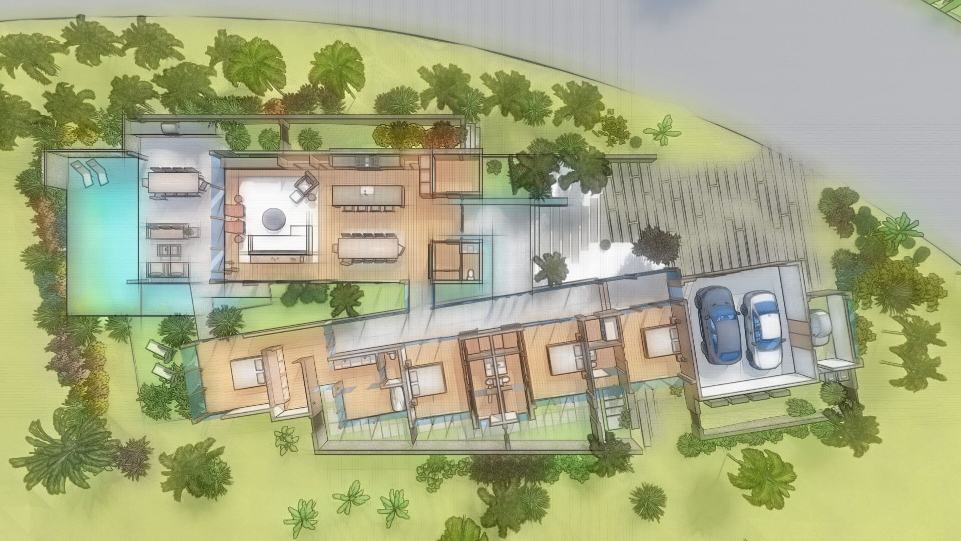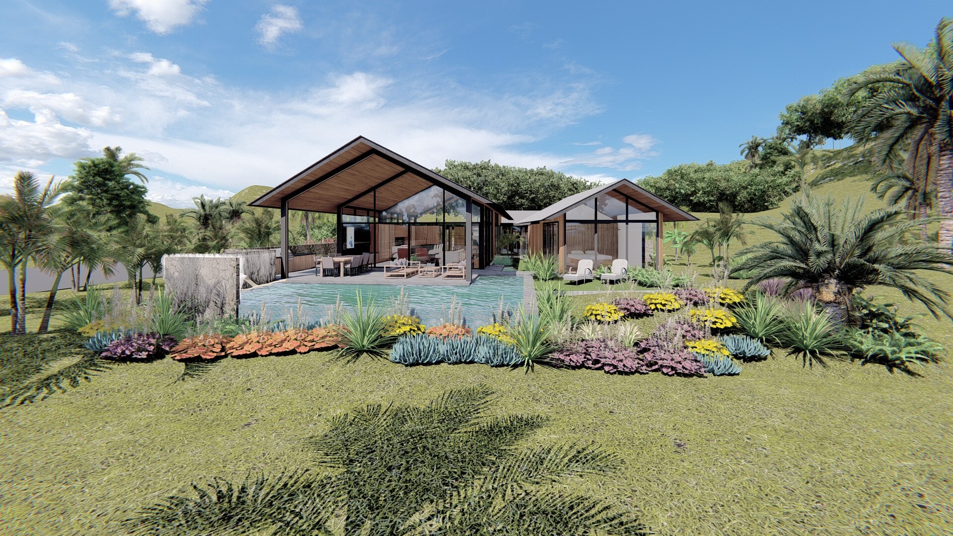Overlooking the 8th hole, Homesite 17 offers an elevated perch and welcoming vistas. Here, you can enjoy an inspired and uplifting approach to home design. Exteriors blend with interiors so views can be enjoyed throughout the space. Sunny days and comfortable evenings help blur the spatial lines of inside and out. This homesite includes concept plans by Keith Kelly of Kelly & Stone Architects.