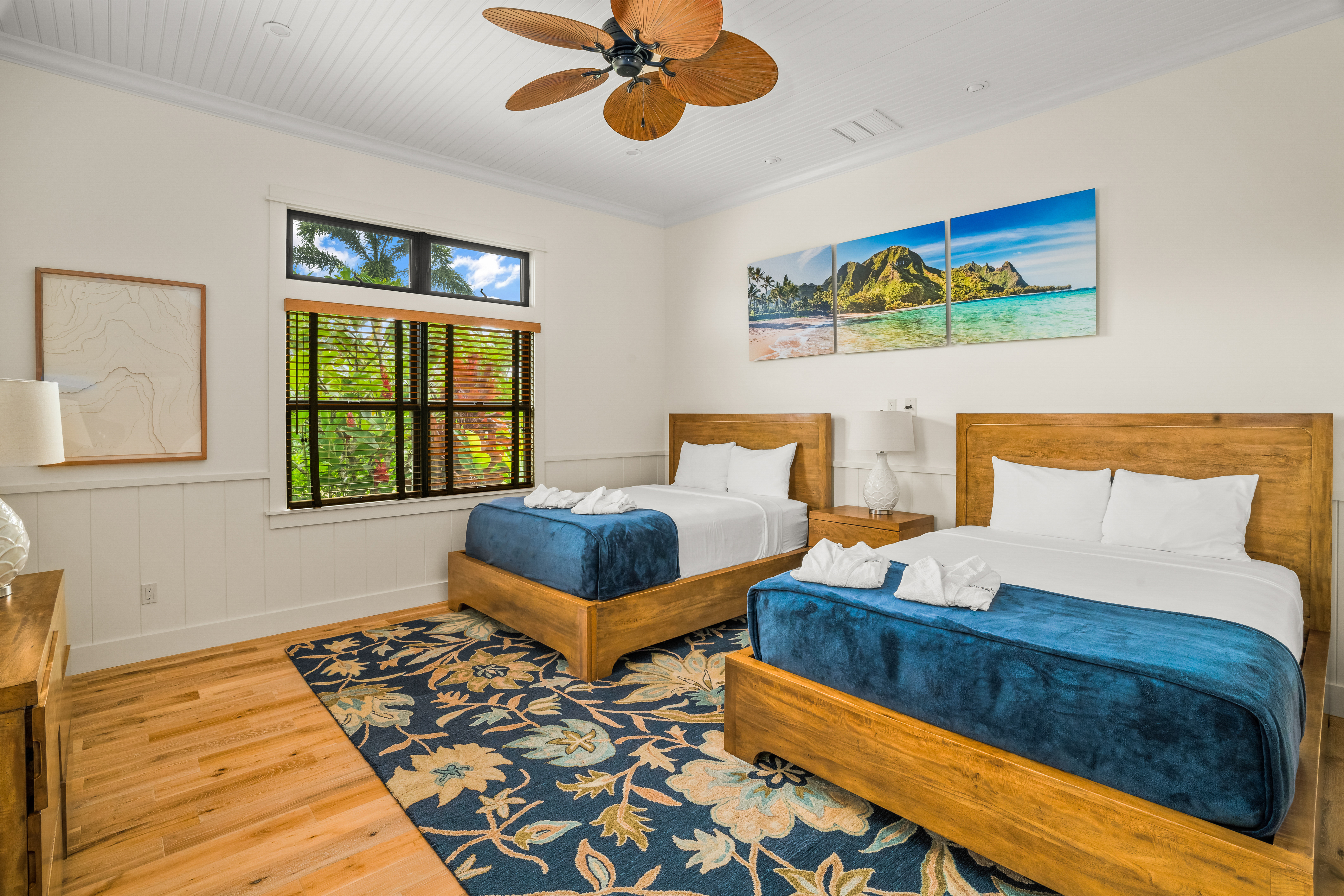The property is climate-controlled with a 32-panel photovoltaic system and online irrigation control, keeping utility costs low. The home is located in the VDA, sold turnkey, and is a short walk to the Kukui’ula clubhouse with spa, fitness, tennis, pickleball, farm, events & golf amenities.
