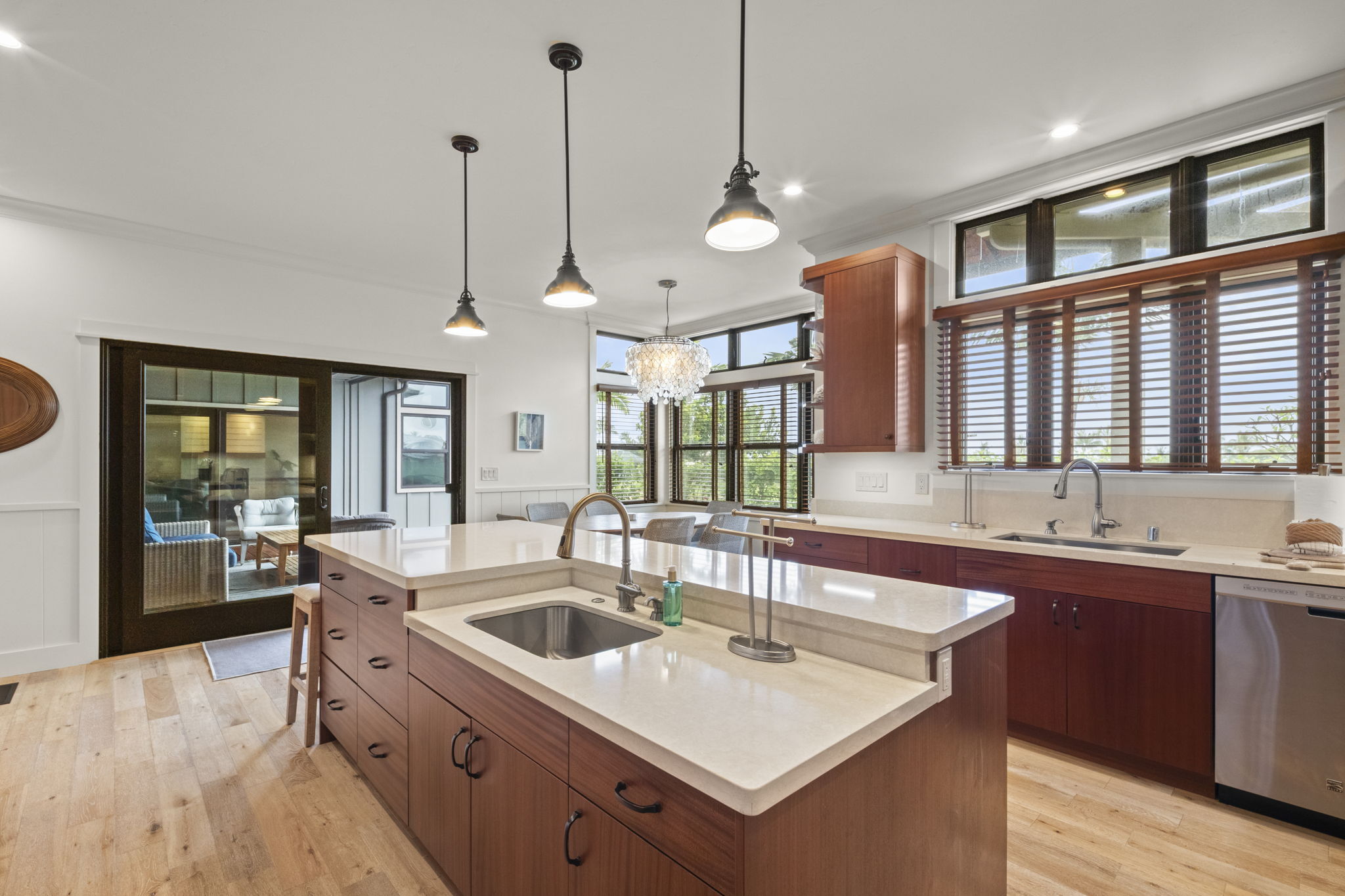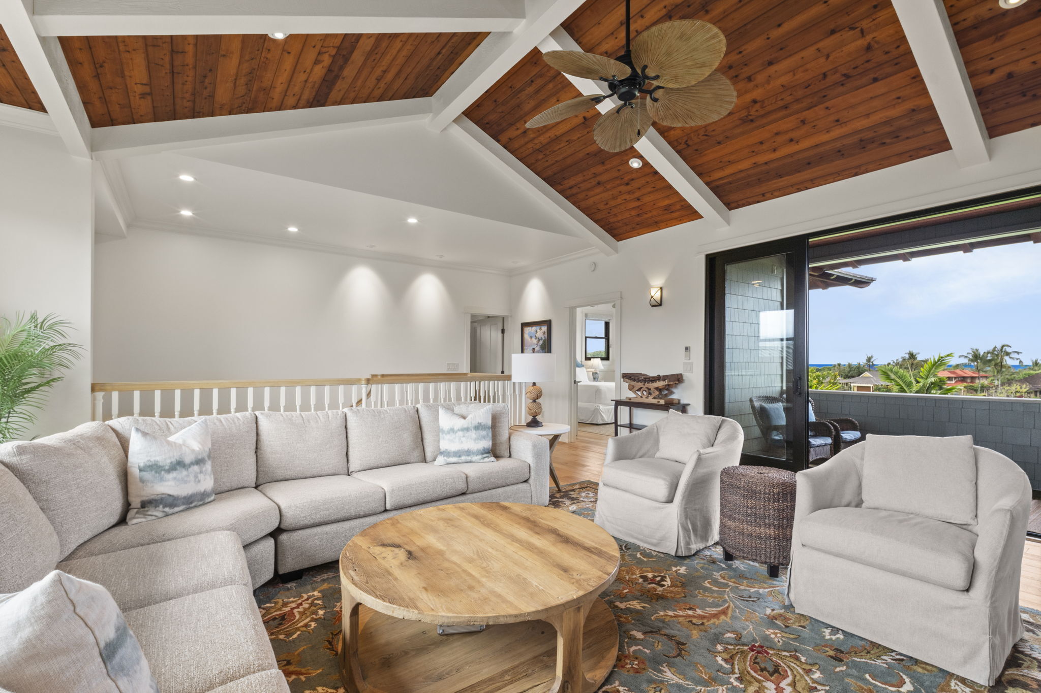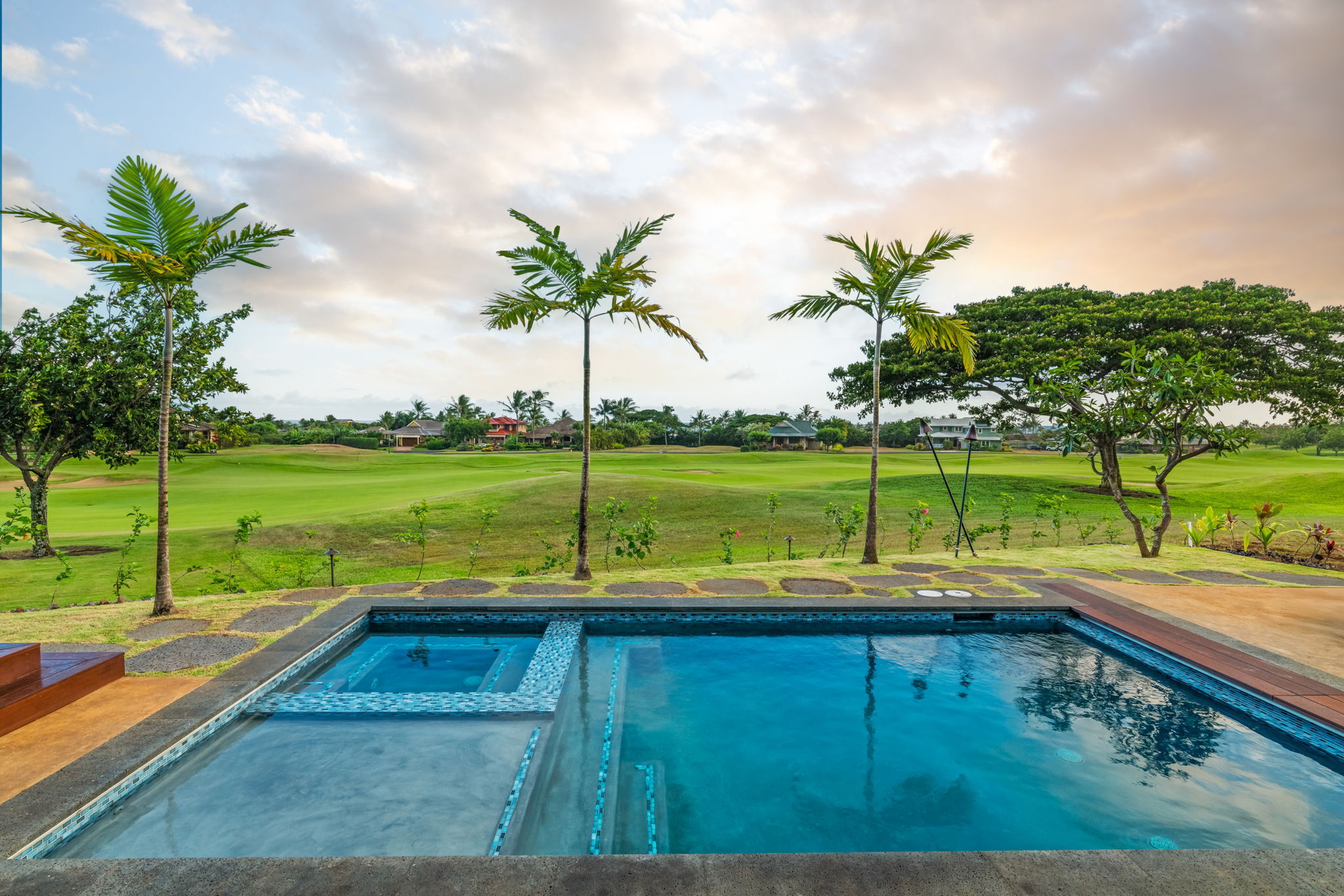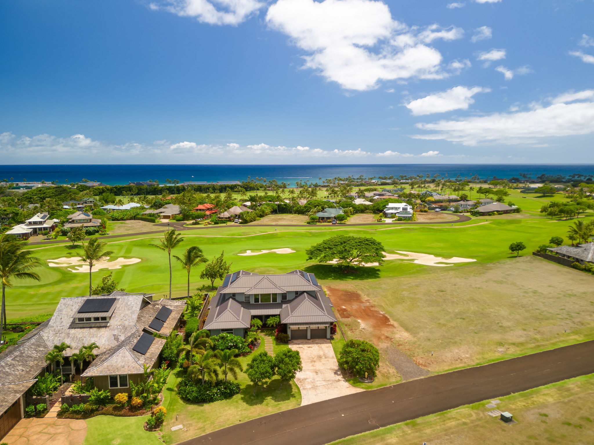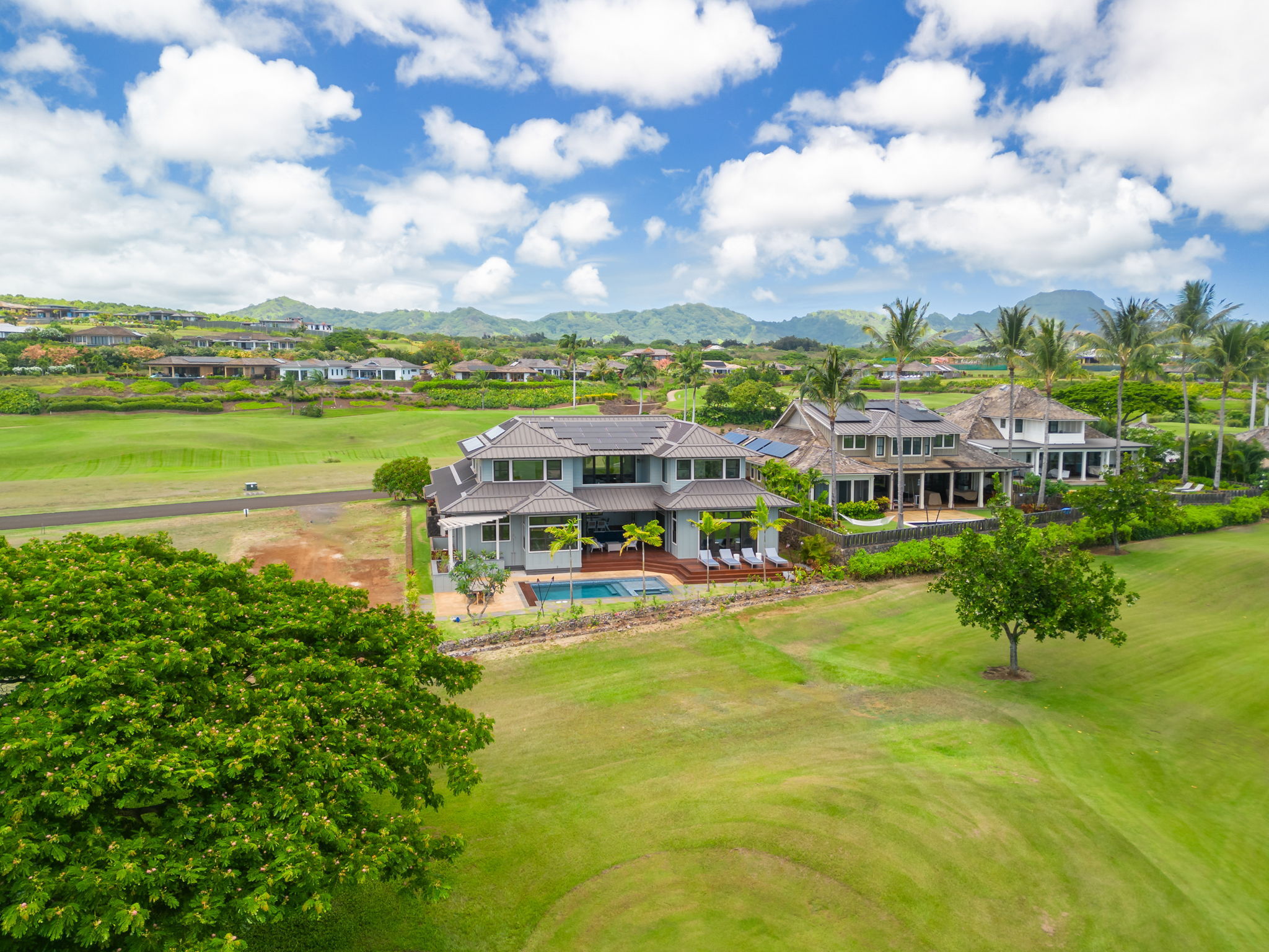 This Kauai vacation rental is located within the exclusive Kukui’ula resort community on Kauai’s sunny South Shore, offering refined island living in one of the island’s most sought-after neighborhoods. Situated on the second fairway of the private Kukui’ula Golf Course, this 4-bedroom, 3.5-bathroom home comfortably hosts your guests. Golf course views are captured from every room, while the upper level offers distant ocean and mountain vistas. Designed in a modern plantation style, the home features a spacious open floor plan and seamless indoor-outdoor living. The chef’s kitchen includes Wolf and Sub-Zero appliances, custom cabinetry, and a breakfast nook. Three lanais extend living areas for dining and relaxation. The upper level includes the primary suite, guest suite, and media room. The lower level offers a second suite, guest bedroom, and main living area centered around a covered dining lanai. The backyard is an entertainer’s dream with a pool, spa, sun deck, BBQ, and outdoor dining area. Equipped with climate control, a 32-panel photovoltaic system, and irrigation control, the home is comfortable and energy efficient. Located in the VACATION DESTINATION AREA and offered fully turnkey, it is a short walk to the Kukui’ula clubhouse with spa, fitness, tennis, pickleball, farm, events, and golf amenities. Renovations include: - New master bathroom & built out new office in 2023 - Renovated living room fireplace in 2023 - New backyard, including a large lanai, pool, spa, outdoor kitchen, outdoor shower, outdoor eating area, landscaping, & landscape lighting in 2023 - Repainted the exterior in 2023 with three tones: soffits, siding & window trim, & doors - $1M in renovations done in 2023/24 - All renovations are permitted, including the backyard & pool/spa - Upgraded kitchen nook light fixture & dining - $150,000 Plantation Membership fee to The Club at Kukui’ula is mandatory. Welcome Home to Kukui’ula!