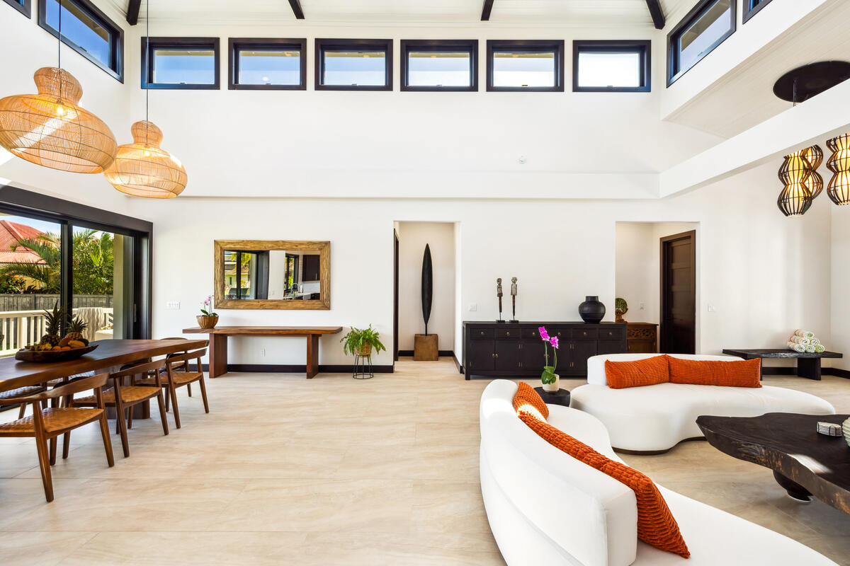 Long Awaited Paradise is a true sanctuary, designed to evoke the ultimate tropical experience. A destination in itself, embodying the very essence of luxury and relaxation. Prepare to be swept away by the grandeur of the 23-foot celestial ceiling, featuring 18 clearstory windows that flood the great room with natural day light, followed by moon and star light, creating a brilliant, open atmosphere that effortlessly flows from room to room. Contemporary Bali design channels high-end resort vibes with every detail of its 3,943 square feet of TOTAL build out - exquisitely designed for the utmost in privacy and comfort. Gourmet kitchen with its commercial ice maker and wine fridge built into the fabulously large Island is ready to impress. Primary Suite opens to the sprawling 456 SF lanai and includes a stunning outdoor shower where you can immerse yourself in nature while enjoying a moment of complete relaxation. 2nd and 3rd bedrooms provide private ensuite. The detached O'hana (ADU / 4th bedroom) offers a private and tranquil escape, featuring a kitchenette, en-suite bathroom, 2nd outdoor shower, and a private lanai. A perfect space for ones seeking seclusion in comfort. 16-feet of Fleetwood disappearing glass doors seamlessly create the transition from the great room to the great outdoors for total enjoyment of the covered lanai, outdoor dining, and lounging in the sunshine of your beautiful surroundings. "Kali Lo Ihi" Long Awaited Paradise (yes there’s a story behind the name) was designed for luxury and built to last a lifetime. Custom lighting and furnishings throughout the property were sourced from Bali, each piece carefully selected to perfectly complement the others. Handpicked suar wood furniture, with its rich warm tones is stronger than teak and adds an organic touch with natural resistance to drywood termites and wood borers. The list goes on and on. The paperclip icon at the top of the page will take you to more details.