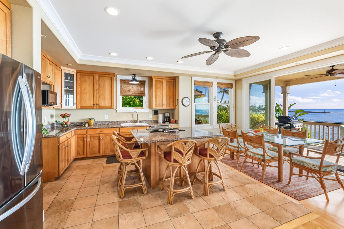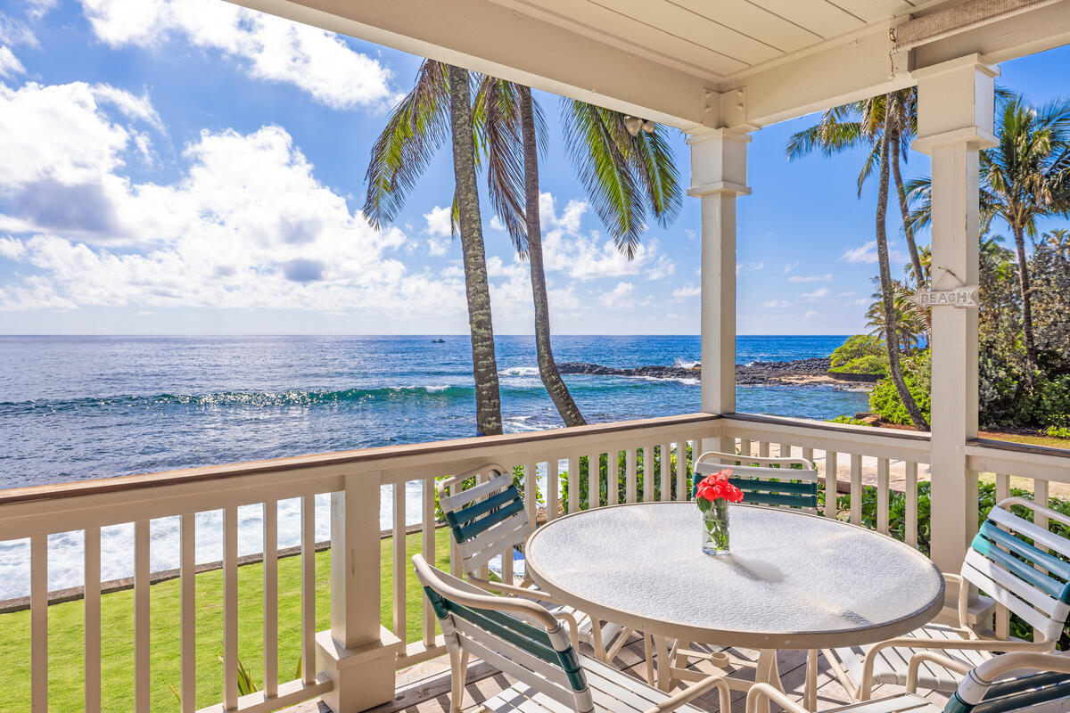 There are homes near the ocean, and then there are homes shaped by it. Hale Mahana Kai sits along the shoreline of Poipu’s Lawai Road, where the waves roll in close enough to feel their rhythm throughout the home. Designed by esteemed Kauai architect Ginny Latham, this property has long been a gathering place–a space where families return year after year to reconnect, celebrate, and soak in Kauai’s unmistakable beauty. Set above Kukui‘ula Bay, the home faces a constantly changing canvas: turtles drifting by, boats crossing the horizon, and sunsets that light up the lanai each evening. The owners and guests alike loved its casual, beach-house personality–unpretentious, comfortable, and full of natural light. It’s a place where sandy feet are welcome and mornings begin with the sound of the surf. Inside, the great-room layout is designed for togetherness. Meals are shared with an ocean backdrop, conversations stretch long into the evening, and every bedroom suite offers its own private vantage point of the coastline. The third suite, with its separate exterior entrance, became a favorite for extended family and friends to come and go easily. Lawai Road is one of Poipu’s most iconic stretches–steps from the National Tropical Botanical Garden, a short stroll to Spouting Horn, and minutes from Poipu Beach and the dining and shopping of Kukui‘ula. Life here feels connected not only to the ocean but to everything that makes the South Shore so special. Hale Mahana Kai remains a rare opportunity: a licensed vacation rental oceanfront home with a warm, welcoming character in a location that continues to be one of Kauai’s most sought-after coastal neighborhoods. For those who appreciate authenticity, views that never get old, and the ease of island living, this home is ready to write its next chapter.
