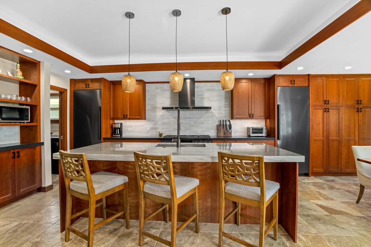 At 2,570 square feet, this residence is comfortably spacious. Each of the 3 bedrooms + office come freshly appointed. The Primary Suite rests on the view and its bath features dual vanities, indoor and outdoor showers. When accommodating multiple guests, pull down the Murphy bed in the office as a most suitable accommodation.
