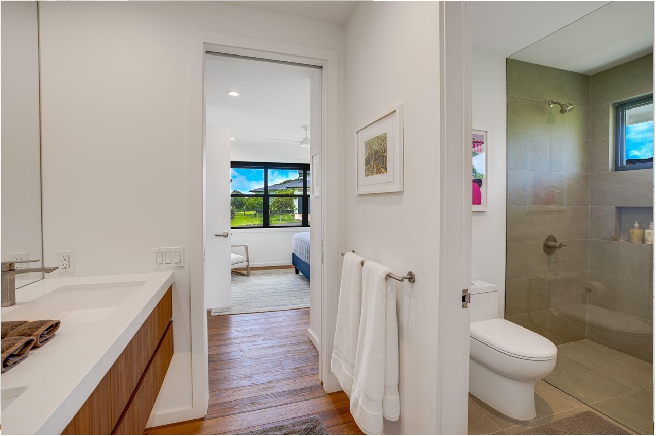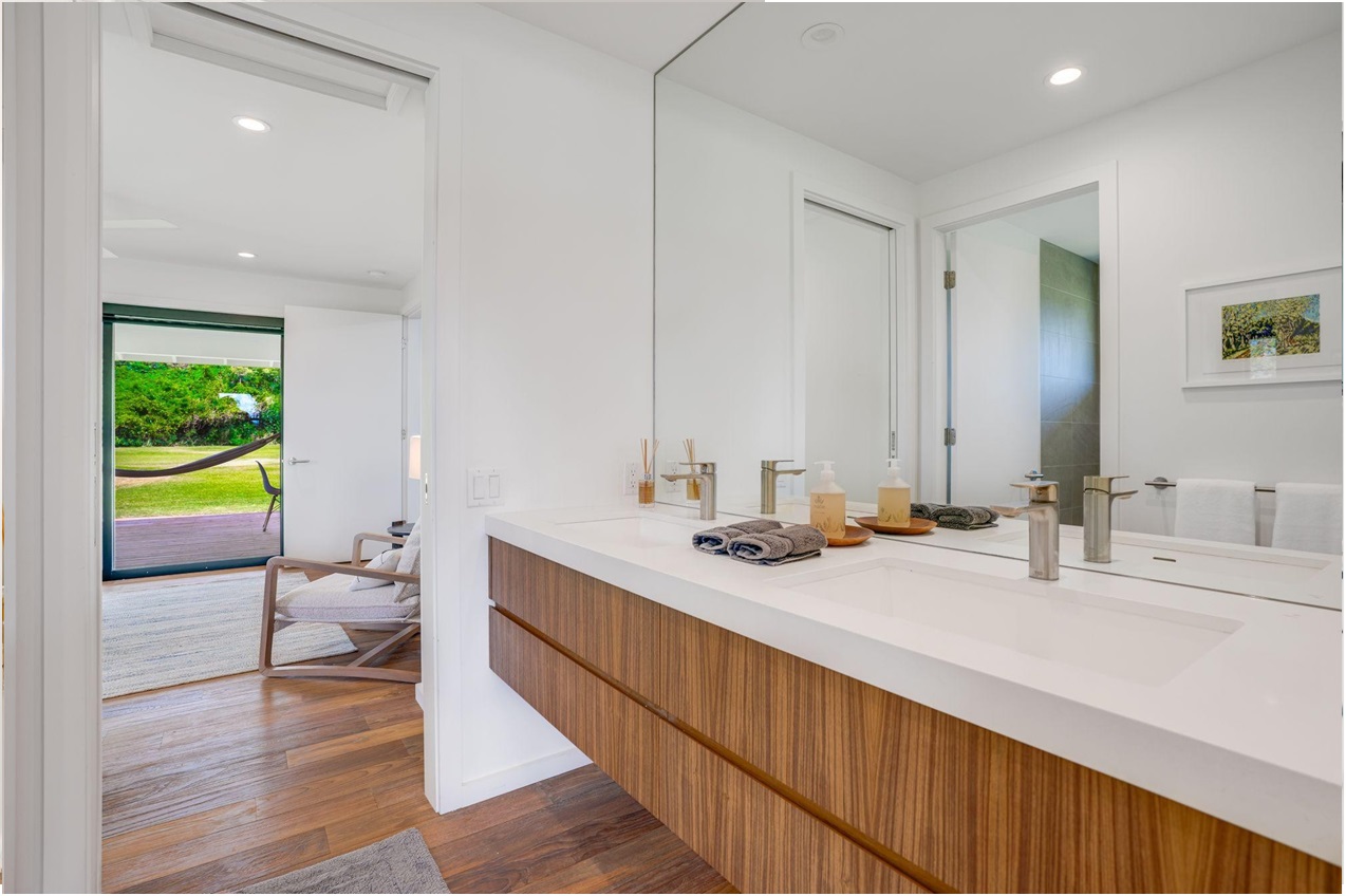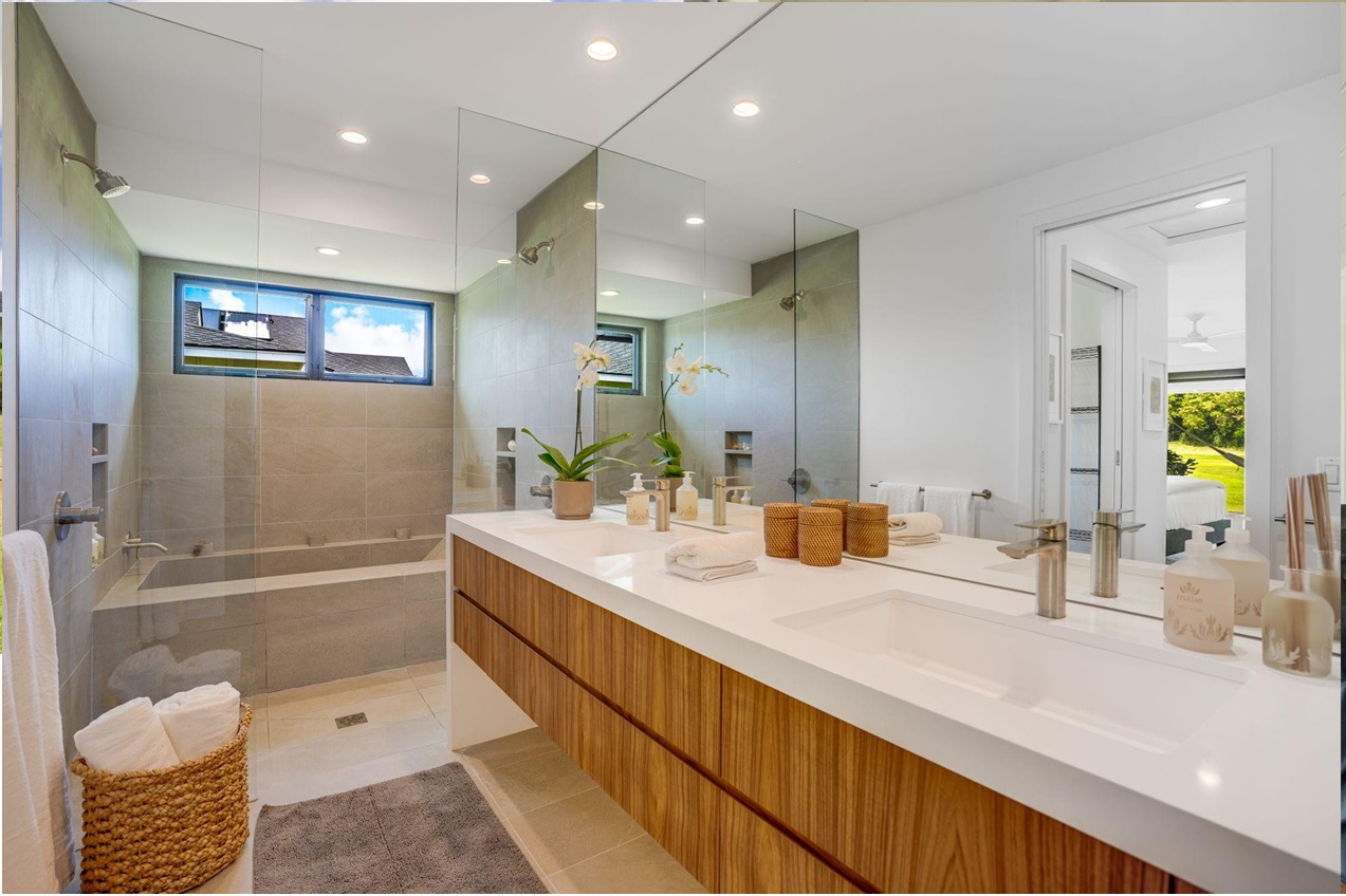 Experience the epitome of island living with this newly constructed, architecturally stunning 3-bedroom, 2.5-bathroom home located in the desirable Wanani subdivision on the Kiahuna Golf Course. This residence features a thoughtfully designed layout with resort-style en-suite bathrooms on either side of the house, custom acacia cabinets throughout, and expansive lanais ideal for relaxation and entertaining. Tucked away in a tranquil cul-de-sac, this home offers privacy and serenity while enjoying the picturesque backdrop of the golf course.