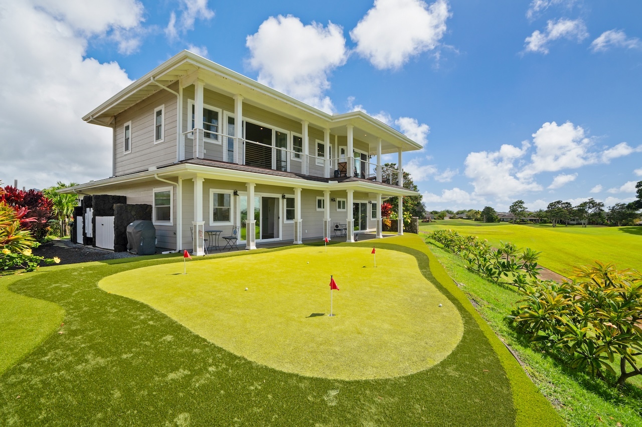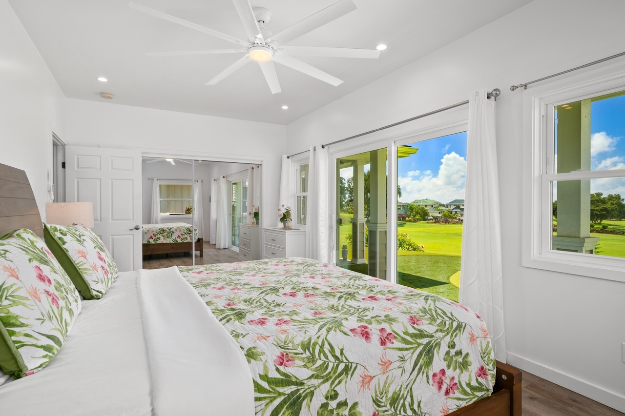 Versatile. Elegant. Purposeful. This exceptional Poipu home was designed with flexibility in mind. Built in 2021, this modern island-style property in Wainani at Poipu offers panoramic views of the Kiahuna Golf Course, Haupu Mountain, and the Pacific Ocean on the horizon.