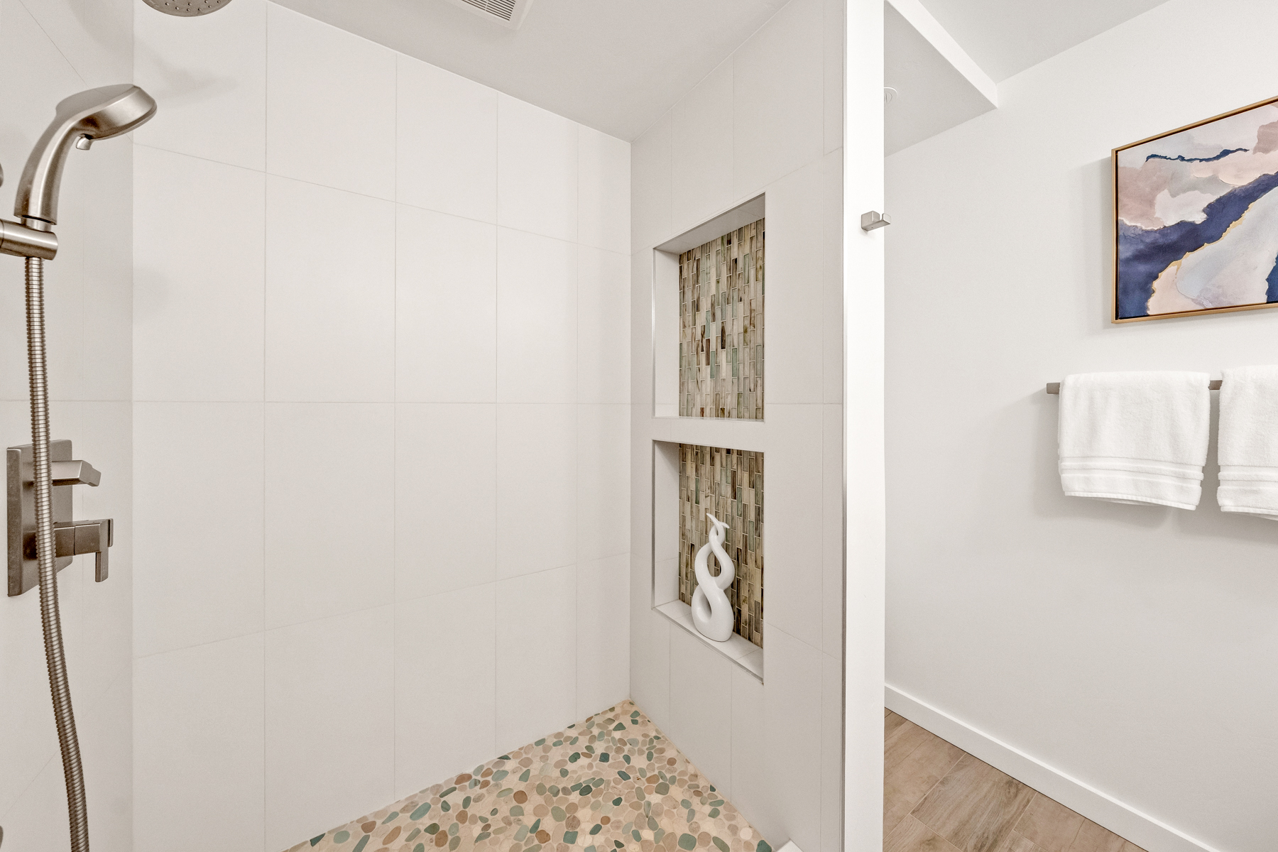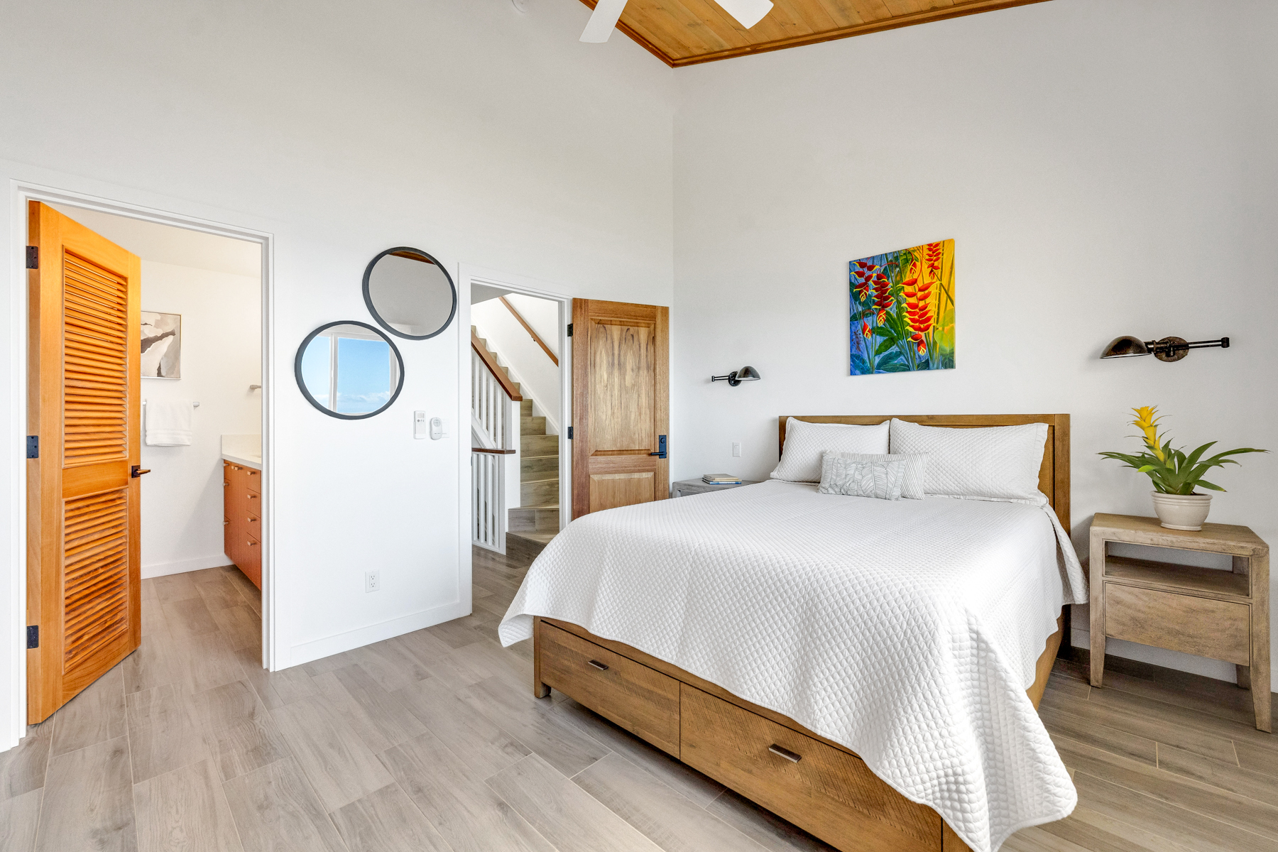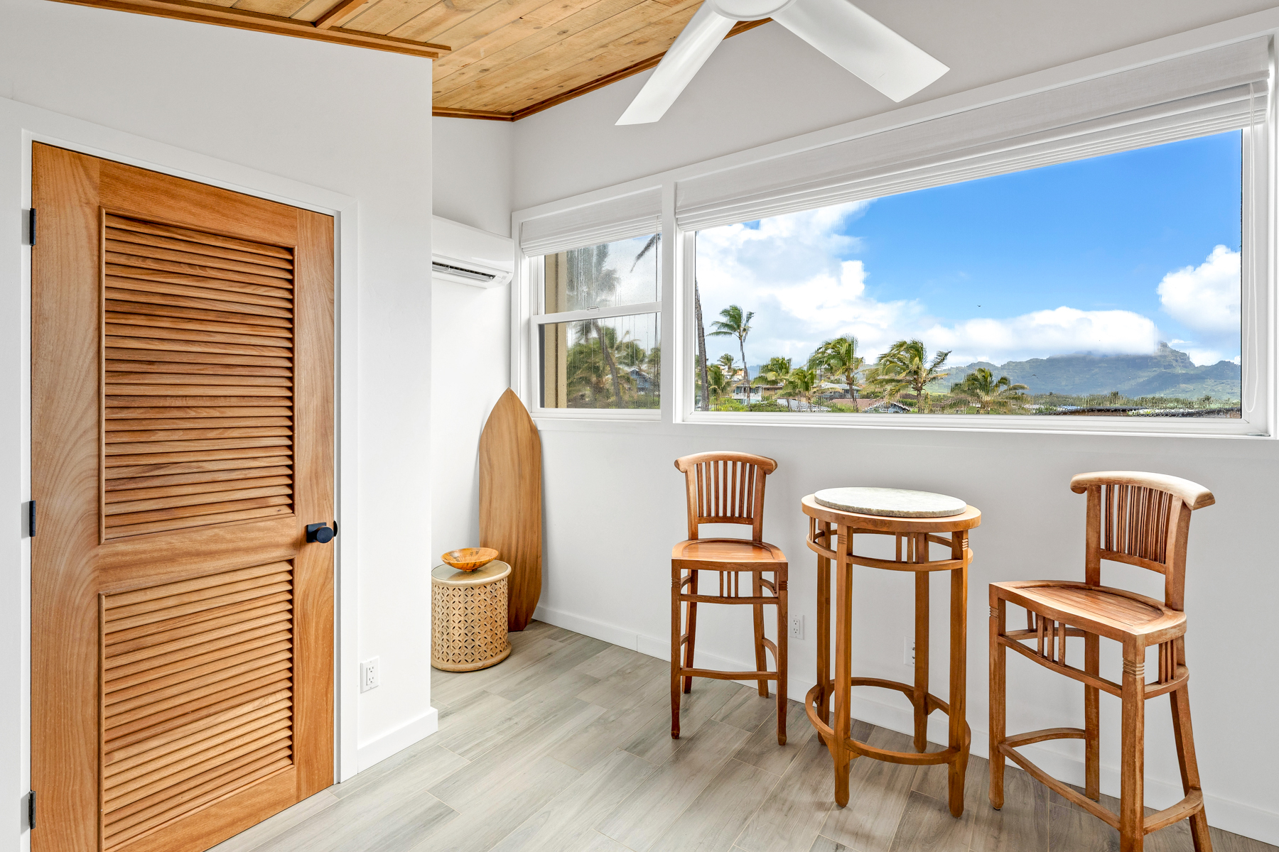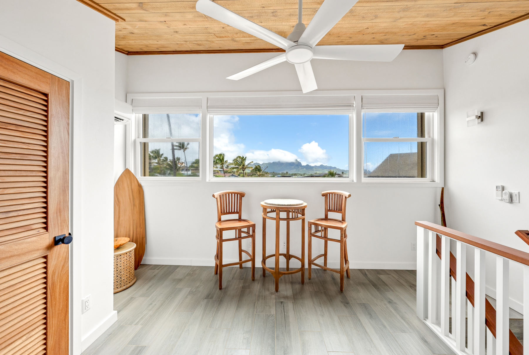 Set on the top floor with Kauai South Shore Ocean, sunrise and sunset views, Makahuena 2307 was remodeled as a family residence with a commitment to quality and comfort of the highest standards. Makahuena 2307 is ready for full-time living or an upscale Poipu Beach vacation rental: Swimming pool, jacuzzi, tennis/pickle ball courts, with BBQ area. Its location near the Grand Hyatt and Poipu beaches and restaurants makes it a winner. Every room has a split air conditioning system; however the buyer may wish to open the expansive Fleetwood slider in the living area and the upgraded Milgard windows in the bedrooms to invite Kauai trade winds and the sound of the surf into this tri-level home. The 1st floor is designed for indoor-outdoor living, and the chef’s kitchen is a masterpiece in its own right. A custom-built kitchen island; perfect spacing of high-end appliances; Sapele wood cabinetry; and a granite honed-finished countertop make both cooking and entertaining a delight for all. The half bath, with its full-sized stacked washer & dryer, is adjacent to the kitchen. Both bedroom suites are located on the 2nd floor. The primary bedroom suite is an oasis with its high ceilings and the ocean & sky view enjoyed through the series of windows. Its ensuite bathroom features a refined walk-in shower opposite the handcrafted vanity with quartz countertop. The secondary bedroom suite highlights a palm tree & mountain view. Its ensuite features a bathtub with a polished, custom-tiled surround & built-in shelving. The 3rd floor loft may be utilized as a third bedroom, and features an exceptional palm tree & mountain view, a high ceiling, and ample storage. Details Rebuilt From Studs Out in 2022 Insulation Installed for Sound & Comfort 4 Split-Air Conditioning Systems Upgraded Fleetwood Slider Upgraded Milgard Windows Porcelain Tile Flooring Handcrafted Wood Cabinetry & Doors Furnishings from Aspire Inc