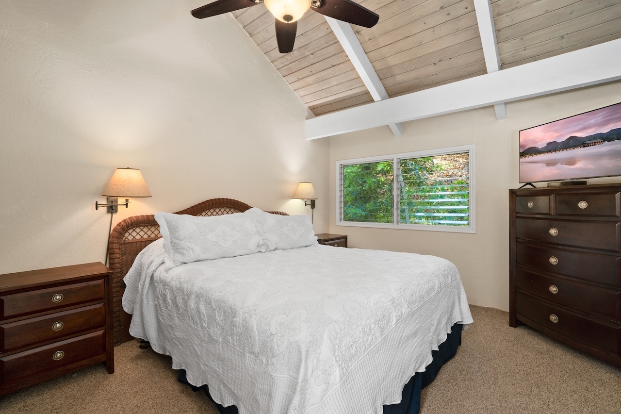 Updated, Secluded, AC 2 Bedroom 2 Bath Poipu Crater Priced Below Assessed Value The Poipu Crater resort is so secluded that you can drive right past it without realizing it is there, which is part of what makes it so appealing. Spread out over seven landscaped acres in the heart of Poipu Beach, this 30-unit community offers a quieter, lower-density setting that works equally well for full-time living, a second home, or vacation rental use. Zoning allows for vacation rentals when not owner-occupied. Unit #27 enjoys a prime interior location within the complex. There is no unit above or below, only one shared wall, and a dedicated parking stall nearby. With three walls that do not adjoin another residence, it offers a level of privacy that is unusual for a condominium. The floor plan is especially well designed. The entire upper level is devoted to the primary suite, creating separation between the bedrooms and living areas. Both bedrooms have air conditioning, and the kitchen and bathrooms have been tastefully renovated. The living area opens to an oversized covered lanai that functions more like an outdoor living room than a typical condominium lanai. Large enough for both seating and dining, it can be accessed from both the living room and dining area, creating an easy indoor-outdoor flow. Poipu Crater is a favorite with many repeat visitors because of its spacious layout and quiet setting. Owners and guests enjoy an easy walk to the onsite pool, spa, sauna, clubhouse, tennis, ping pong, and community BBQ areas. Poipu’s beaches and the Grand Hyatt are also nearby. To virtually walk through this lovely unit copy and paste this link into a new browser window: https://bit.ly/PoipuCrater27-Tour
