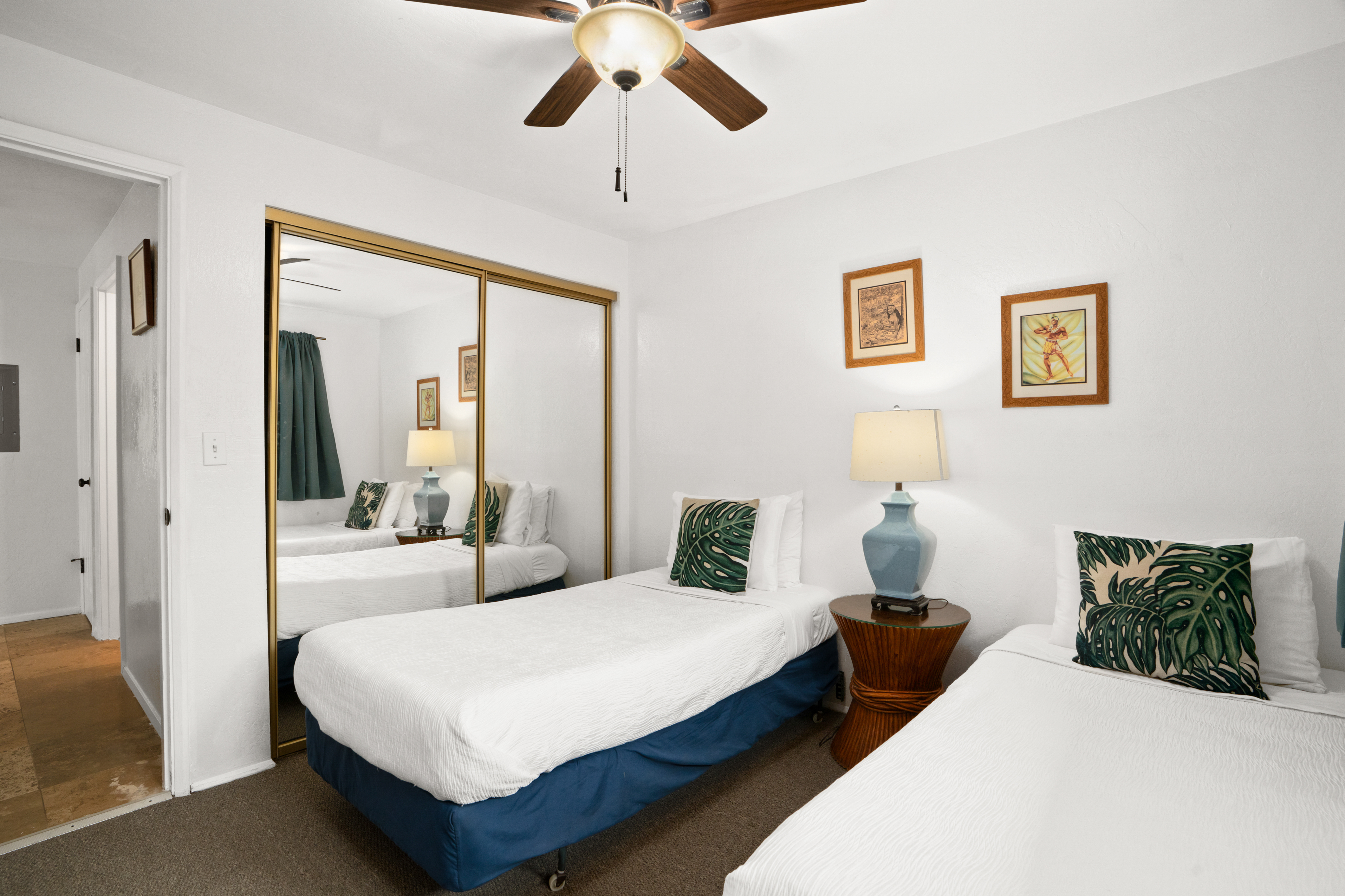 Located in a boutique 8-unit complex on a quiet Poipu cul-de-sac, this 2-bedroom, 1-bath condo delivers exactly what matters most–location, flexibility, and a relaxed island feel. This upper-level corner unit captures tradewinds and natural light, offering a comfortable, low-maintenance space just moments from everything. You’re less than a 5-minute walk to Poipu Beach Park, along with nearby shops and dining–ideal for both everyday living and visiting guests. Just minutes away–with convenient pedestrian access–to Poipu Beach Park, shops, and dining - ideal for both everyday living and visiting guests Positioned within the legal VDA, the property allows for short-term vacation rentals, giving you options whether you’re looking for income potential, a second home, or both. Hale Kahanalu stands out for its smaller, residential feel–not a large resort, but a place that feels easy, quiet, and personal. Covered parking, storage, and a garden BBQ area complete the setup. A rare combination of walkability, flexibility, and boutique living–straightforward, well-located, and hard to replicate at this price point in Poipu.