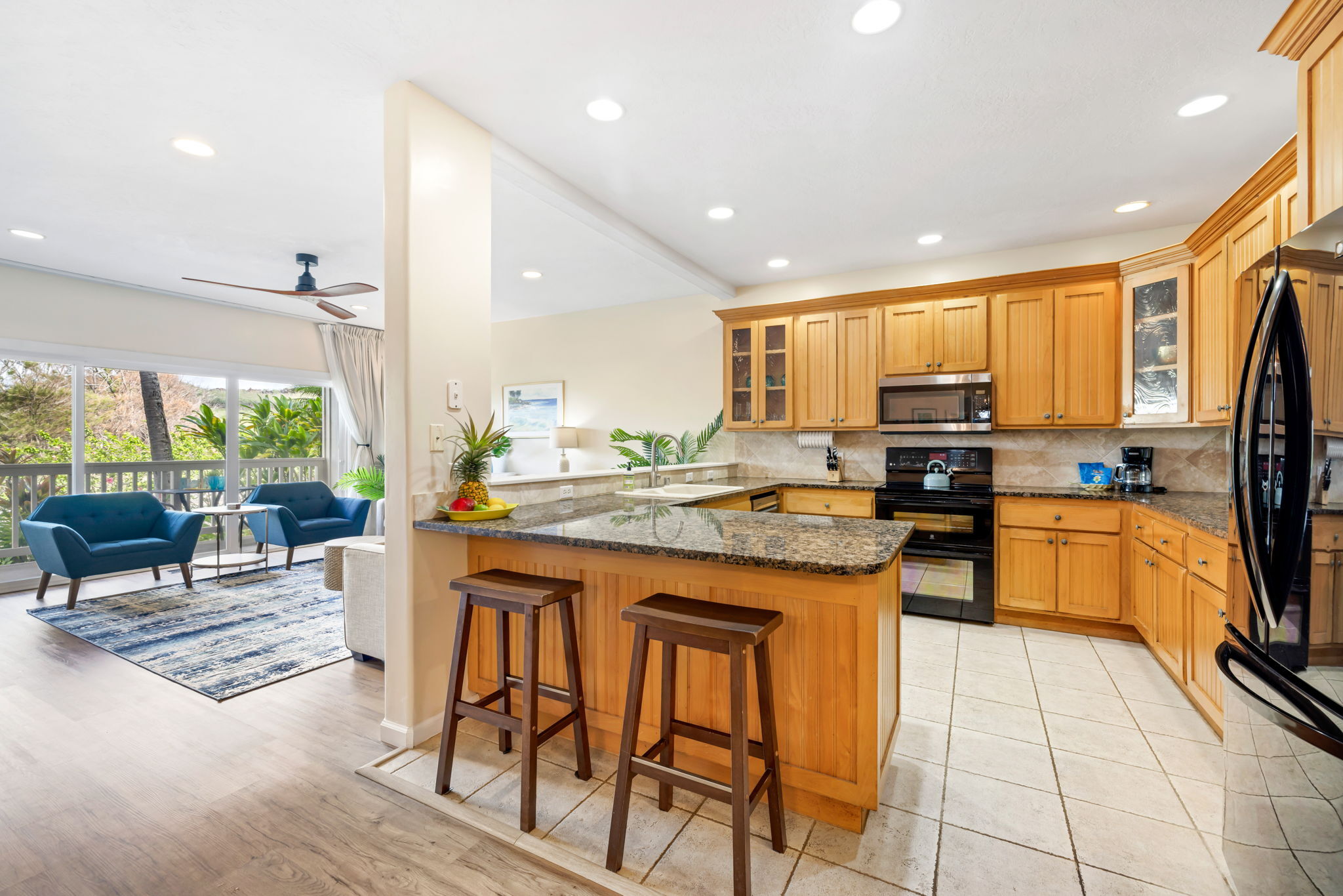 Each of the three private lanais extends the living space and overlooks the lush tropical surroundings where you can relax in the serene ambiance of meticulously maintained gardens, and soak up the island lifestyle.