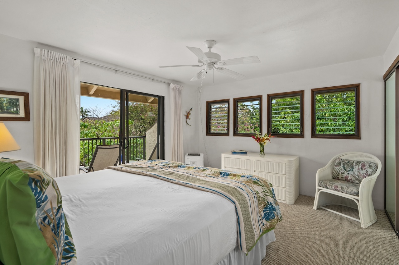 Kahala 421 is a top-floor, corner one-bedroom, one-bath condominium located within the Poipu Kai Resort. This residence features one of the more desirable floor plans in the Kahala, offering two private lanais, excellent separation of space, and a locked-off loft that works well for owner storage. A generous downstairs closet provides additional storage flexibility. The unit has a private entry with no shared access. Its top-floor location means no neighbors above, higher vaulted ceilings, enhanced privacy, and good natural light. The condo comfortably sleeps up to four and is currently an active vacation rental, making it suitable for personal use, rental income, or both. The living area opens to garden views and one of the two lanais. The dining area comfortably seats up to six and enjoys a pleasant view overlooking the landscaped gardens. The kitchen is roomy and fully equipped. The bedroom features a California king bed, its own lanai, and A/C in the primary bedroom, with ceiling fans throughout the living areas. Kahala 421 is part of the Poipu Kai Resort, which offers 24-hour security, two community pools within easy walking distance from the unit, barbecue areas, and miles of landscaped walking paths stretching from Brennecke’s Beach to the Grand Hyatt Kauai Resort & Spa. The property is within easy walking distance to Poipu Beach Park, Brennecke’s Beach, and Shipwreck Beach, providing convenient access to swimming, snorkeling, surfing, and coastal paths. If you would like to take a tour of this unit cut and paste this link into a new browser window: https://bit.ly/455ENMC