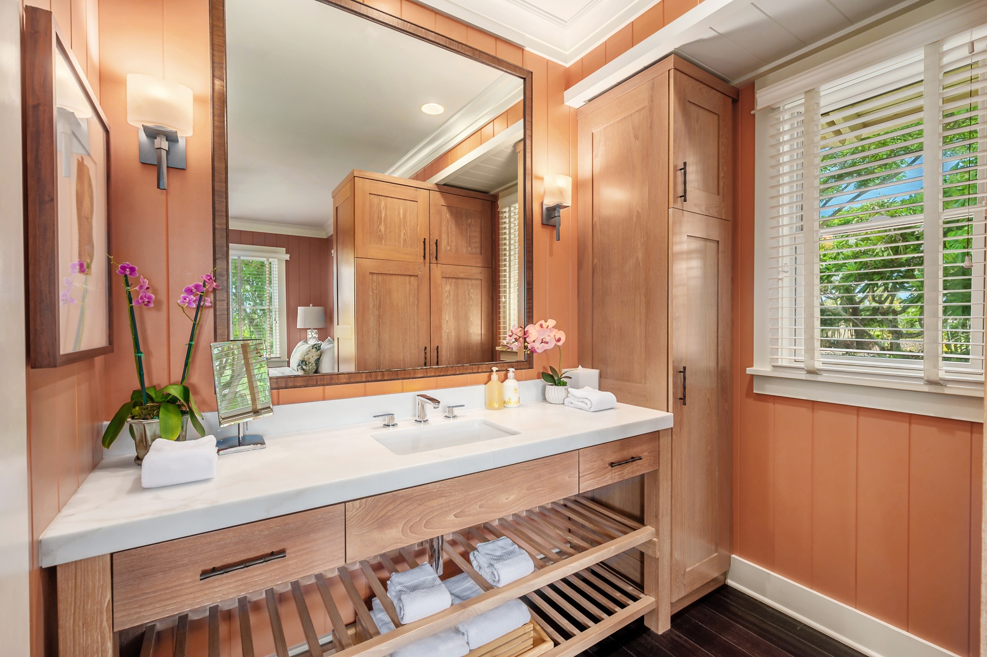 Designed for effortless island living, this single-story 3-bedroom, 3-bathroom Bungalow embraces Kaua‘i’s natural beauty with a thoughtfully designed great room featuring vaulted ceilings and disappearing pocket doors. These architectural elements seamlessly extend the indoor living space onto a spacious lanai–where mornings begin with golden sunrises and gentle ocean breezes. The primary suite is a tranquil retreat, complete with dual sinks, a freestanding soaking tub, and a private garden shower enclosed by lava rock walls, embracing the essence of indoor-outdoor living.