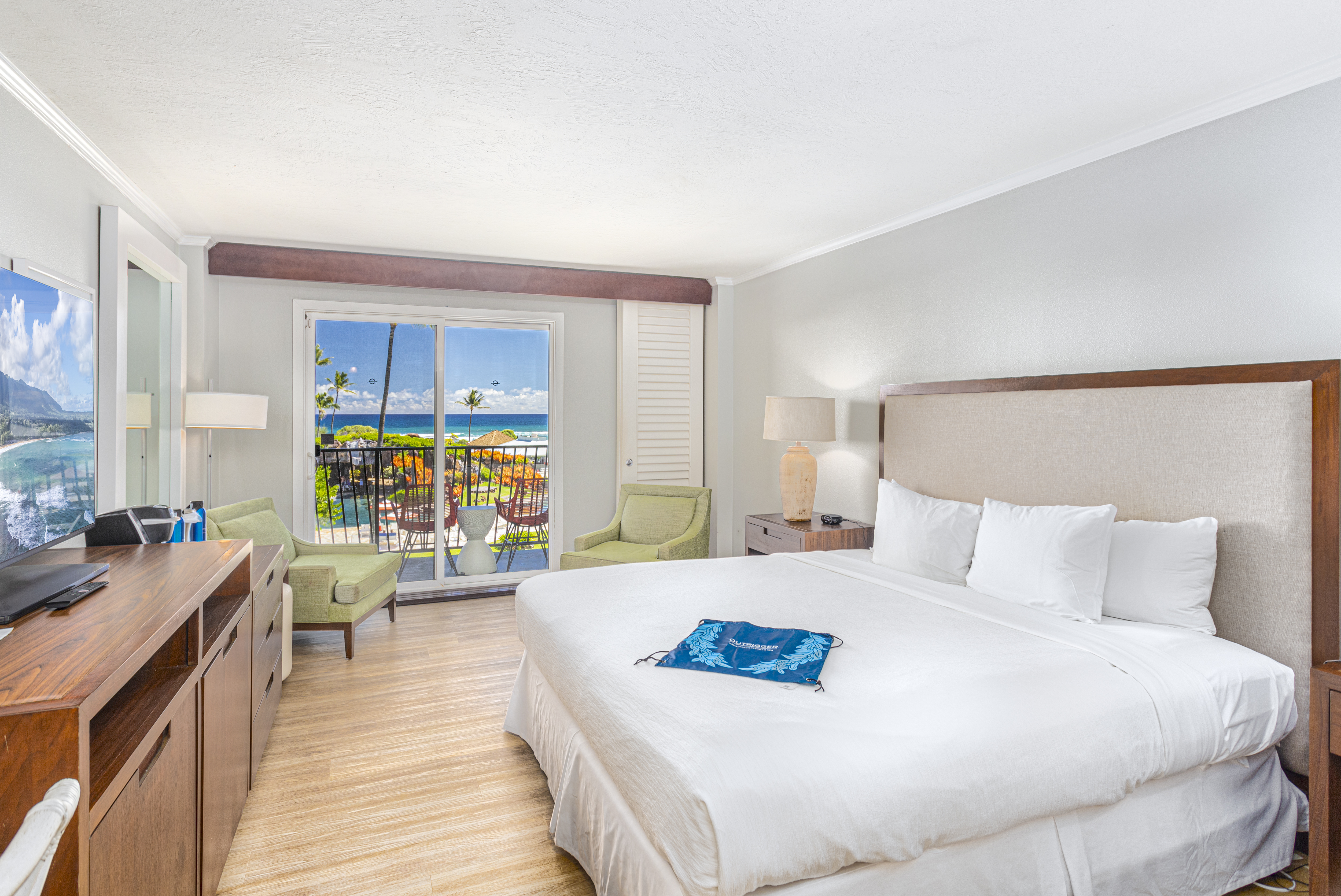 Welcome to Kauai Beach Resort #2408 – your perfect island getaway and income-producing condo! This recently remodeled and beautifully furnished fourth-floor unit offers sweeping ocean and resort views, inviting you to relax and unwind in true Hawaiian style. Updates include a full interior remodel including flooring, paint, and quartz vanity, plus all new high end furniture package.