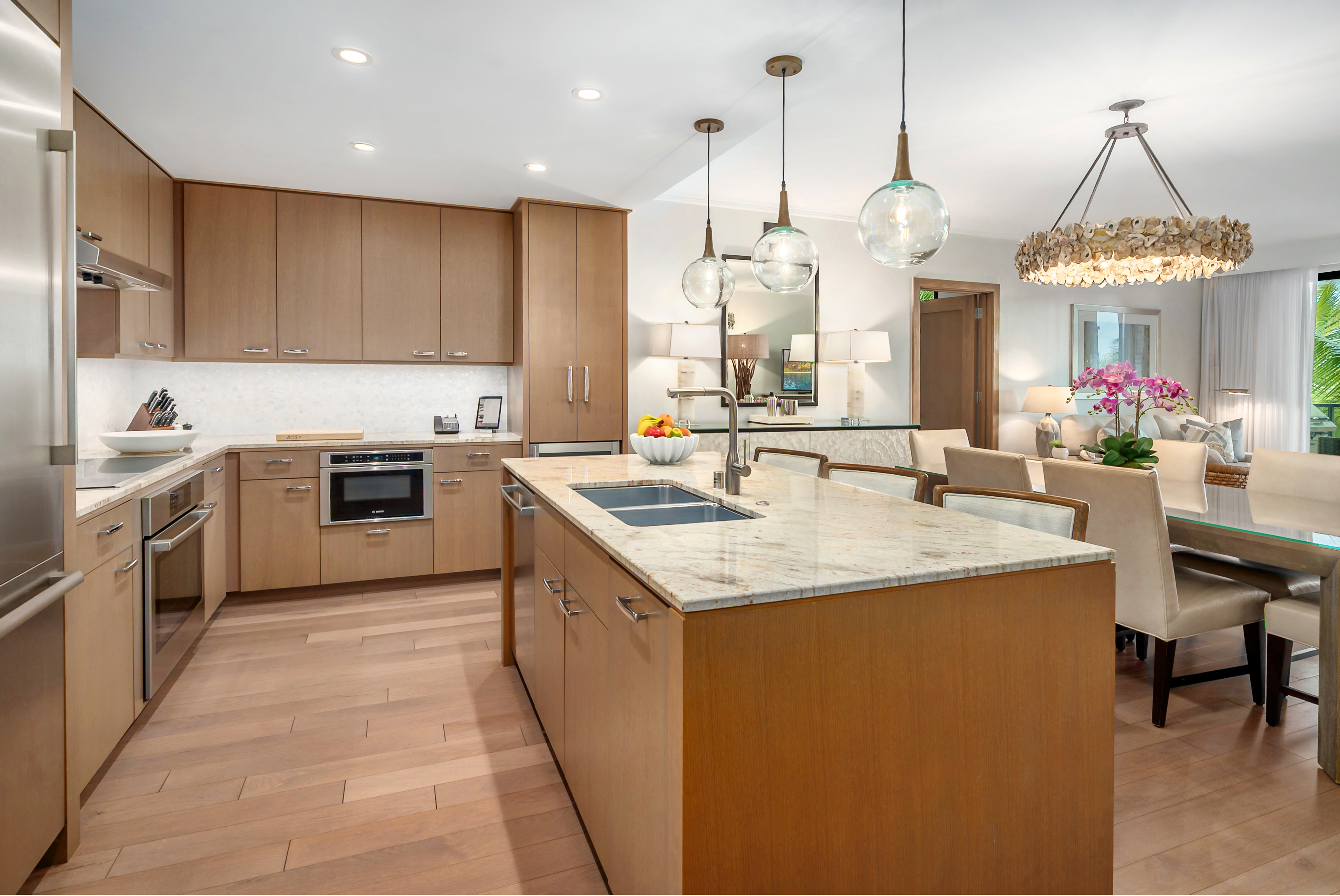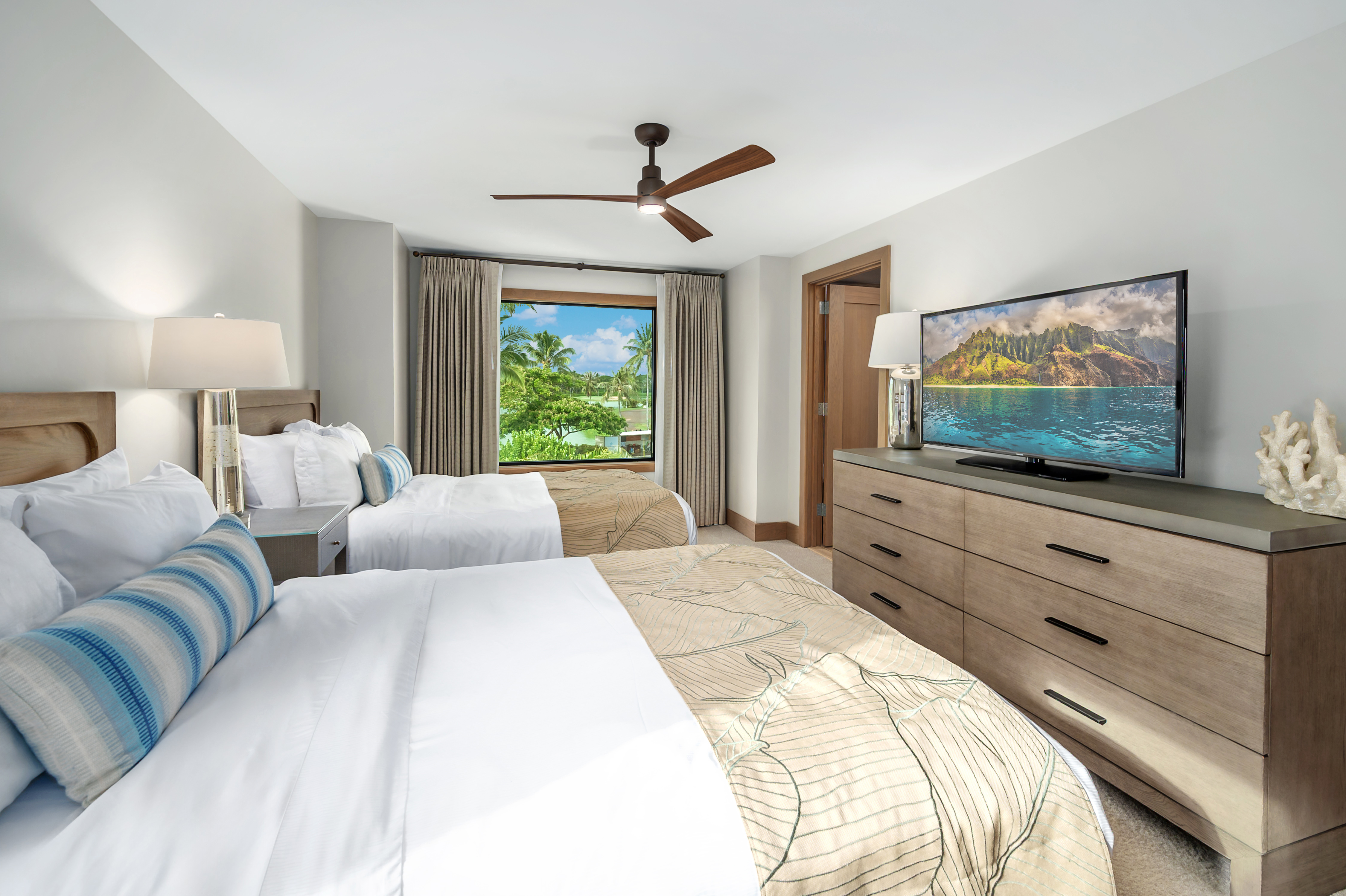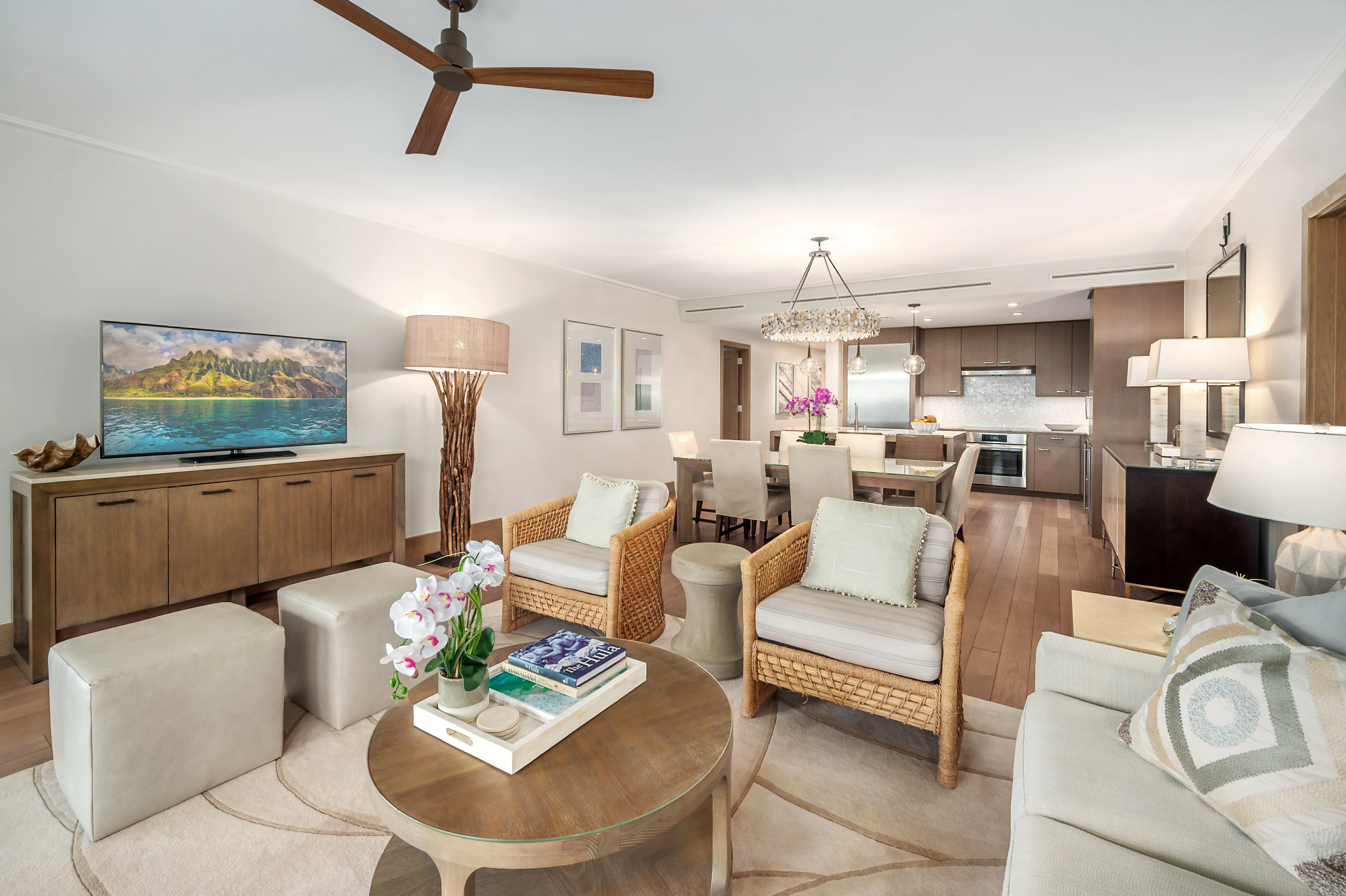 This gorgeous residence boasts beautiful Kauai sunrise views across the grotto pool to the Ninini Pt. lighthouse and Running Waters Bay from the three spacious lanais. The location of this home offers privacy and serenity and stunning views from every room of the tropical surroundings. Inside you’ll find an exceptional level of finish, with thoughtfully designed custom cabinetry, natural stone vanities and beautifully appointed kitchen that feature Thermador and Bosch appliances. The residence is beautifully furnished and is offered fully turn-key.