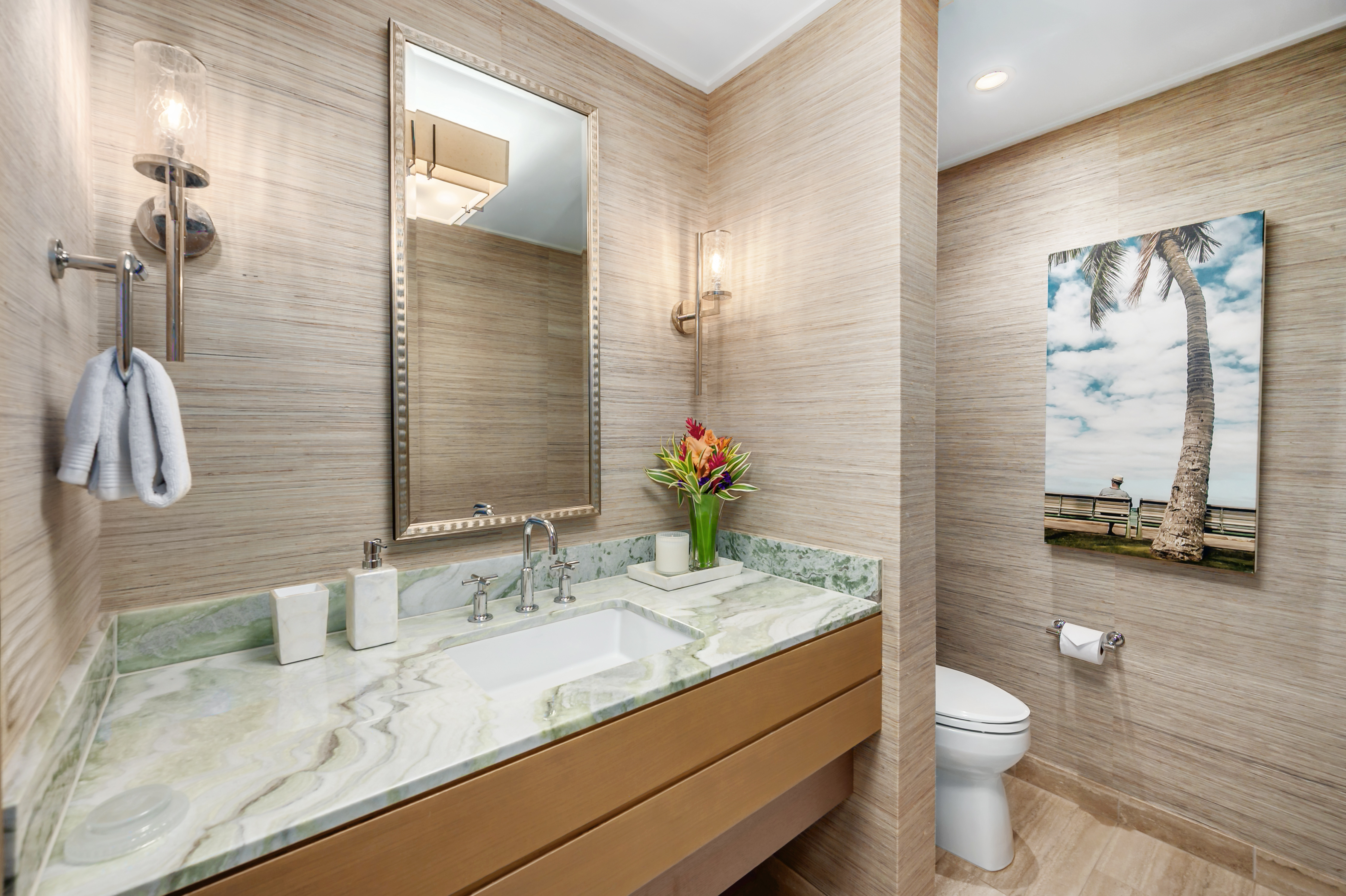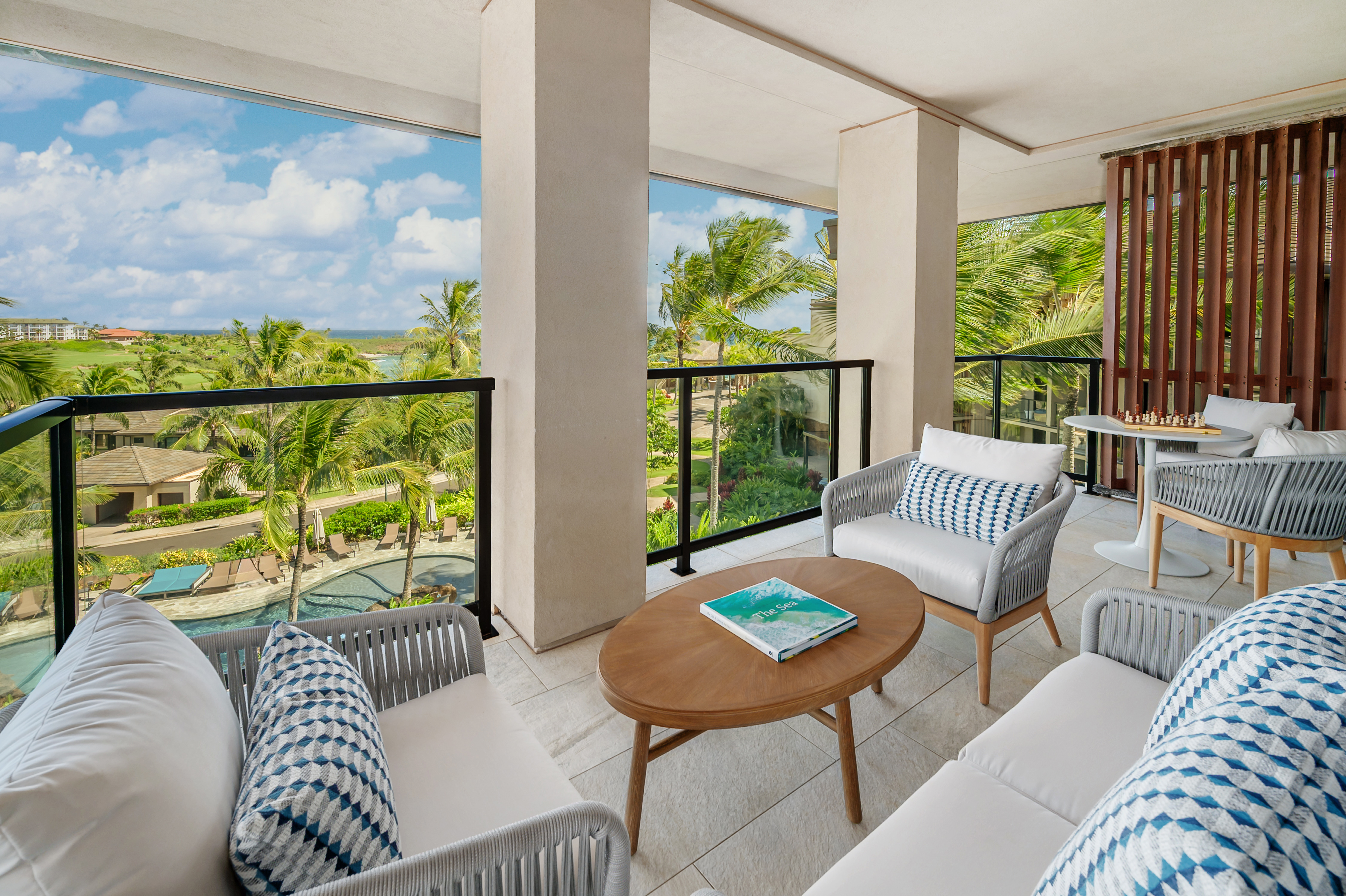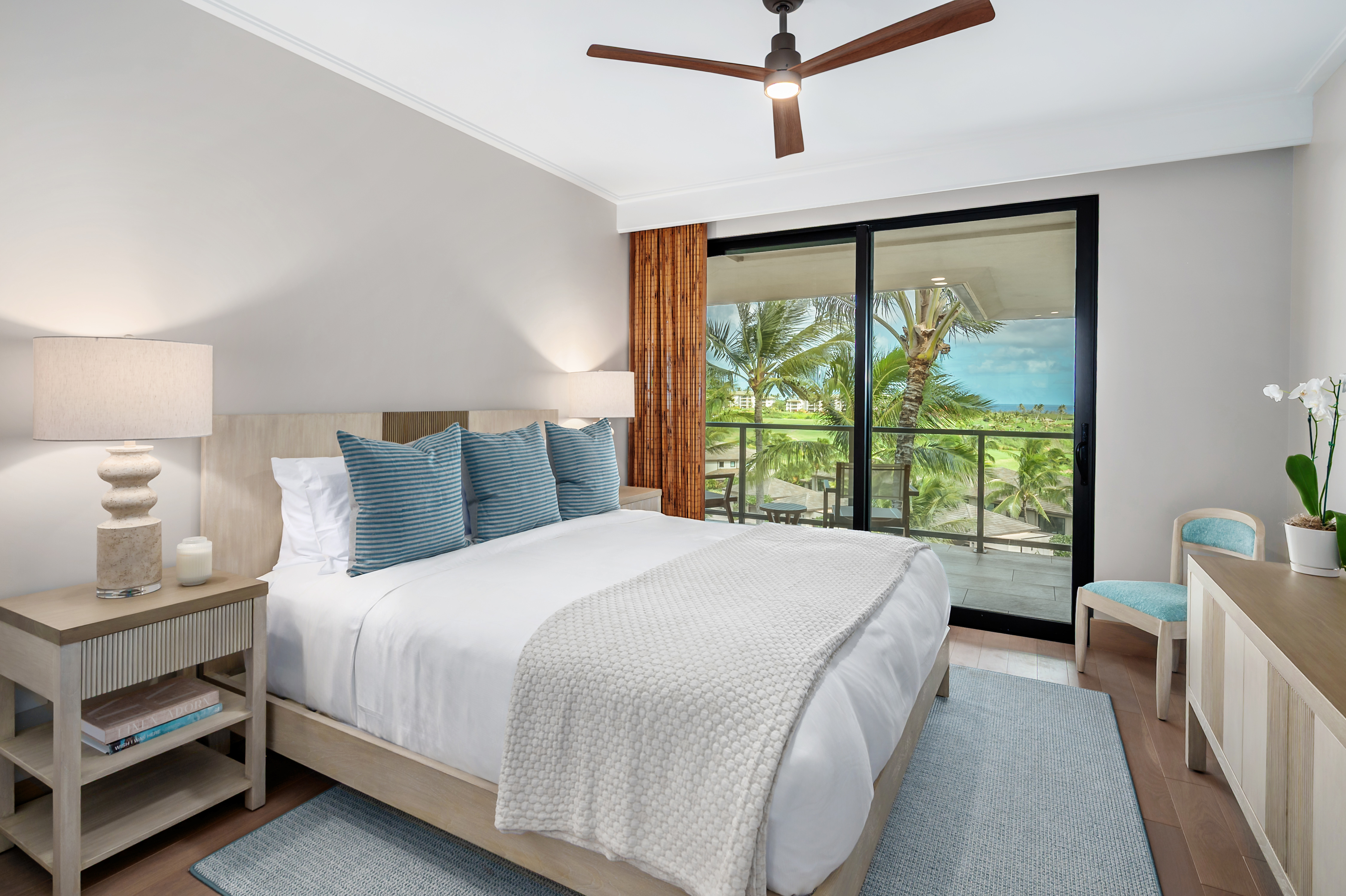 This gorgeous 3 bedroom/3.5 bath penthouse boasts beautiful Kauai sunrise views across the grotto pool to the Ninini Pt. lighthouse and Running Waters Bay from the four spacious lanais. The location of this home offers privacy and serenity and stunning views from every room of the tropical surroundings. Inside you’ll find an exceptional level of finish, with thoughtfully designed custom cabinetry, natural stone vanities and beautifully appointed kitchen that feature Thermador and Bosch appliances. The residence is beautifully furnished by Henderson House and is offered fully turn-key.