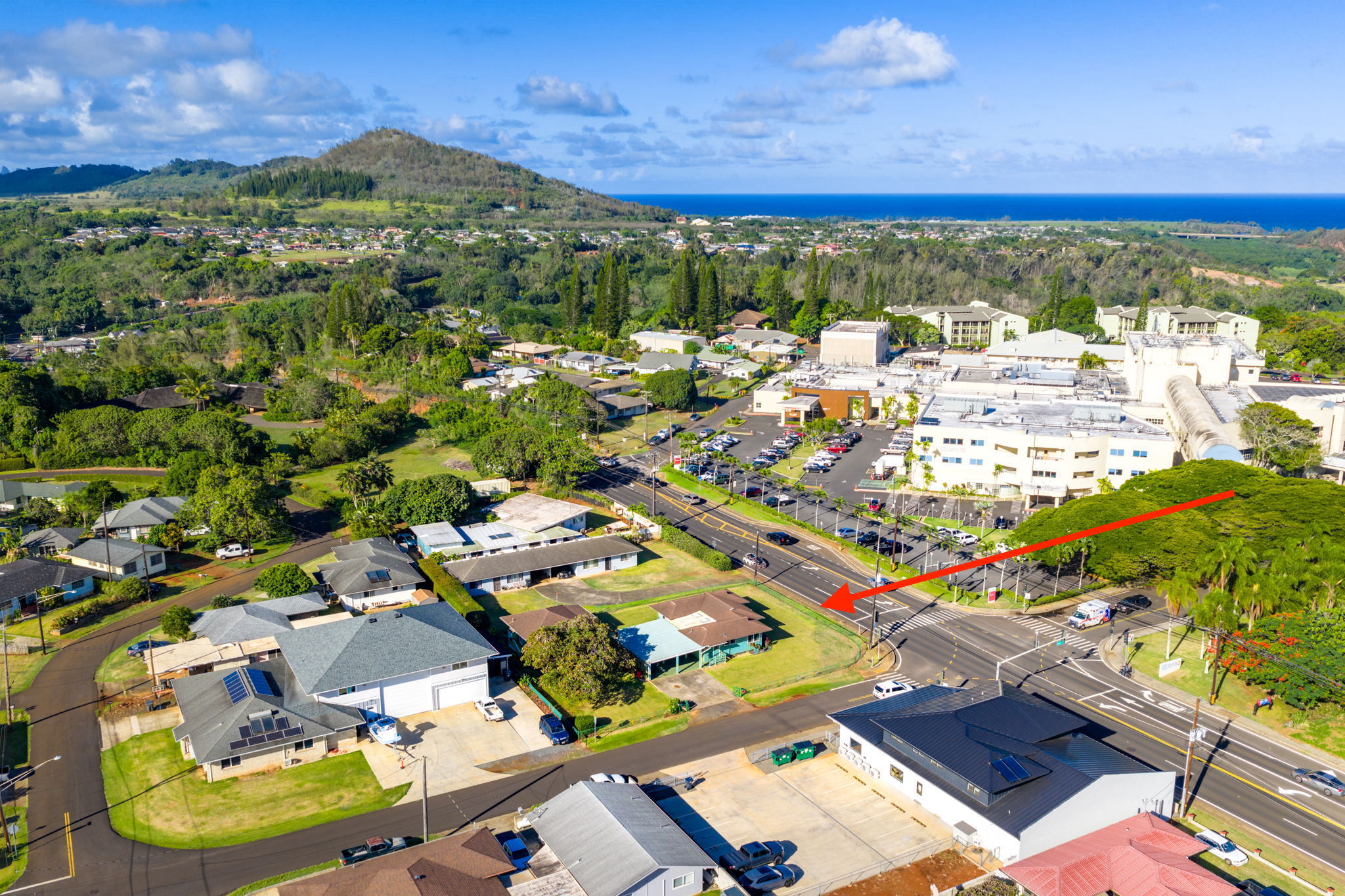 Although the address is on Kuhio Hwy access is off of Eha Road. 2 homes conveniently located across Wilcox Hospital in Lihue within walking distance or just a short drive to a variety of shopping options, restaurants, the beach, the golf course, work out facilities, medical facilities, several schools, the airport, and more.