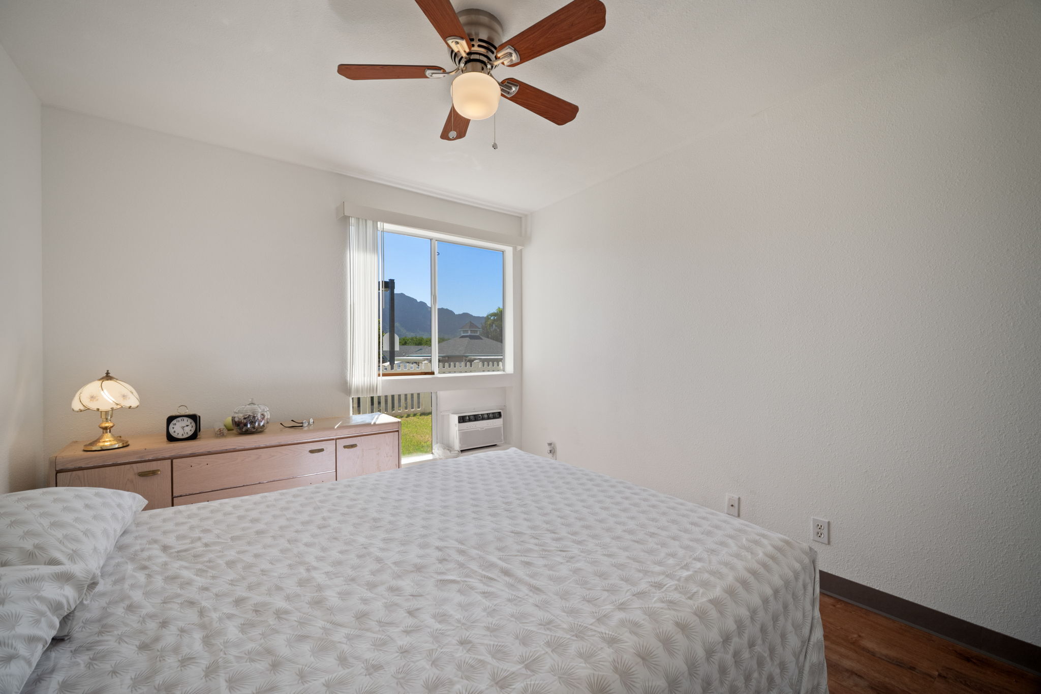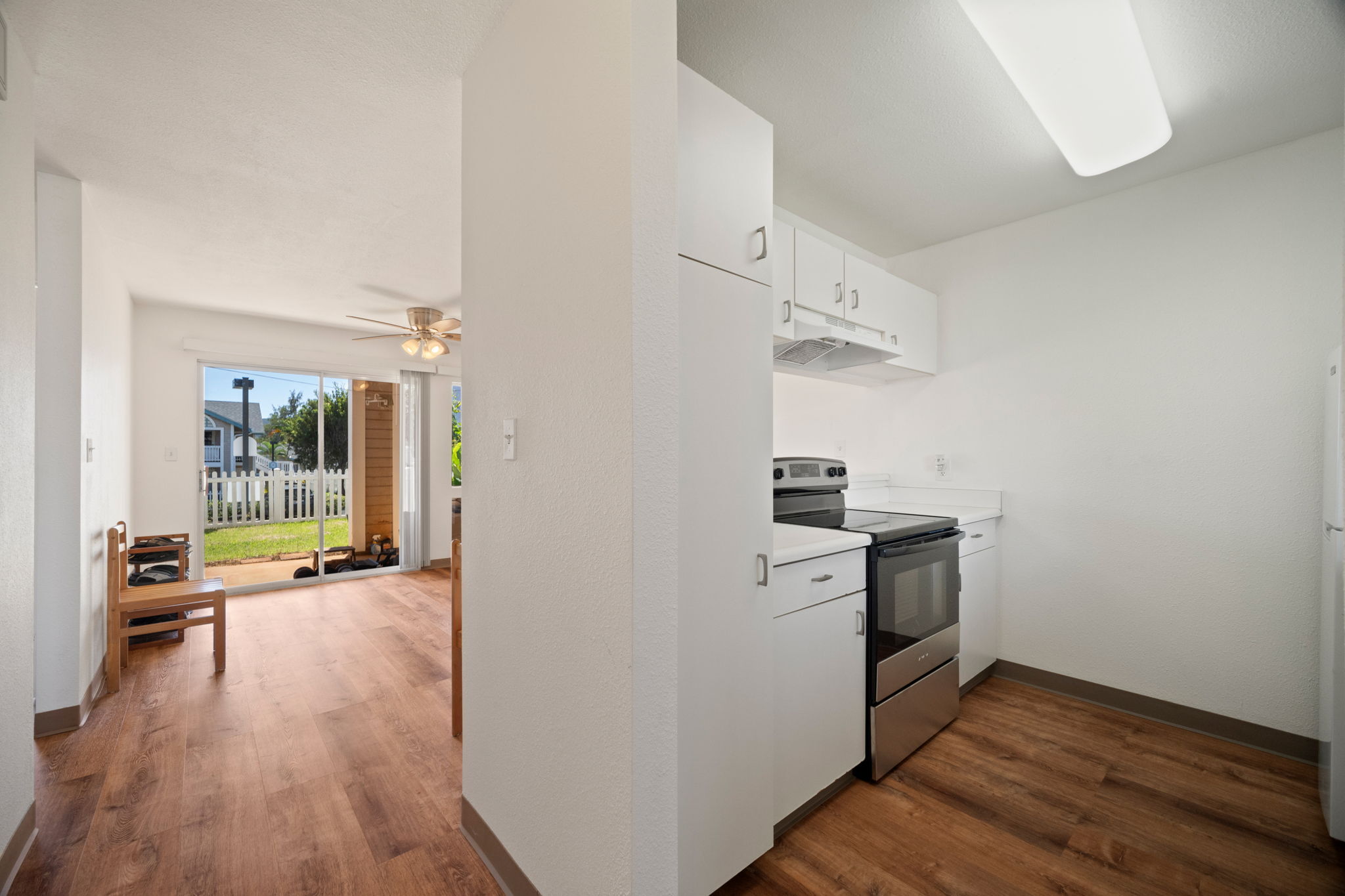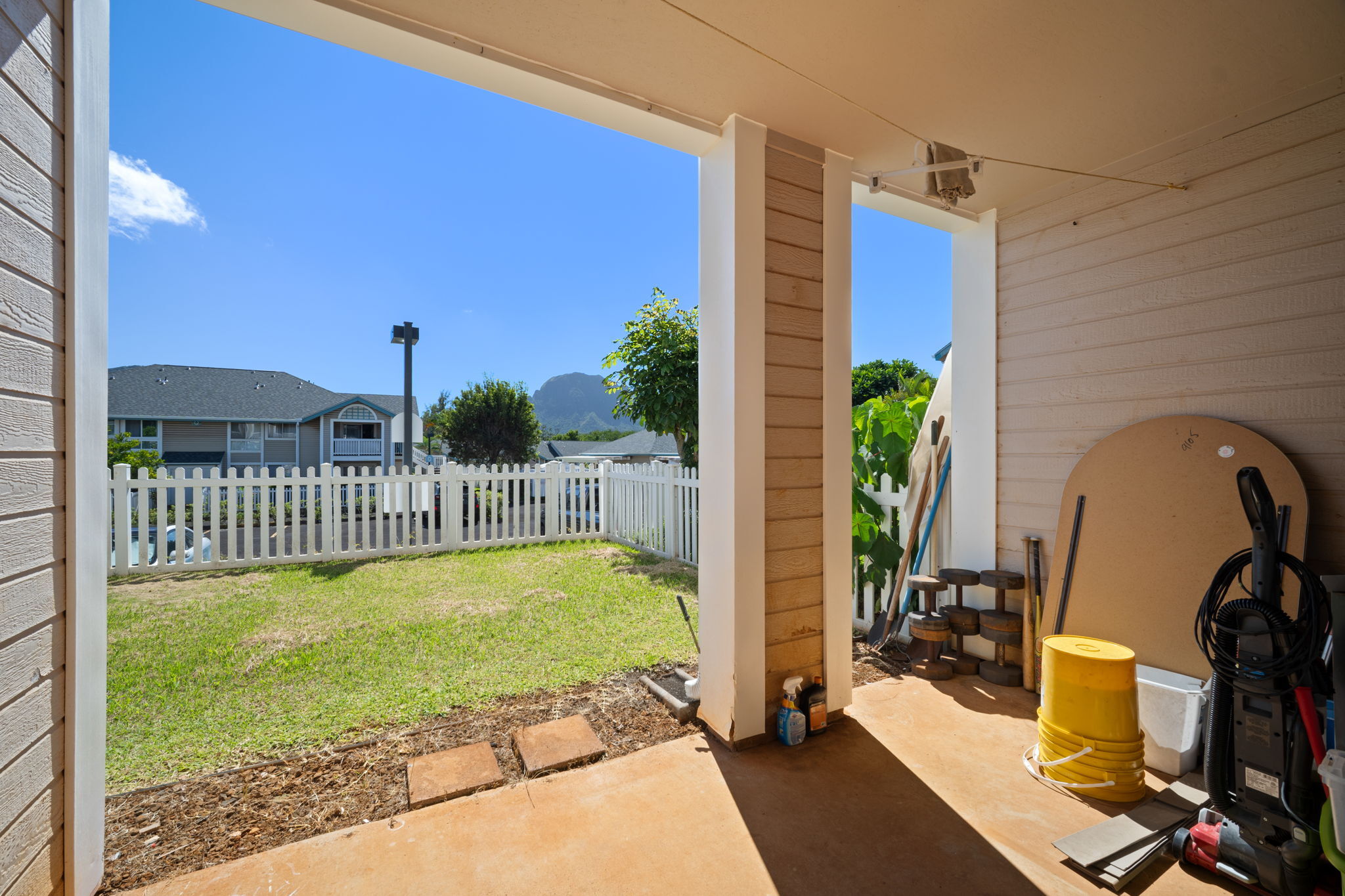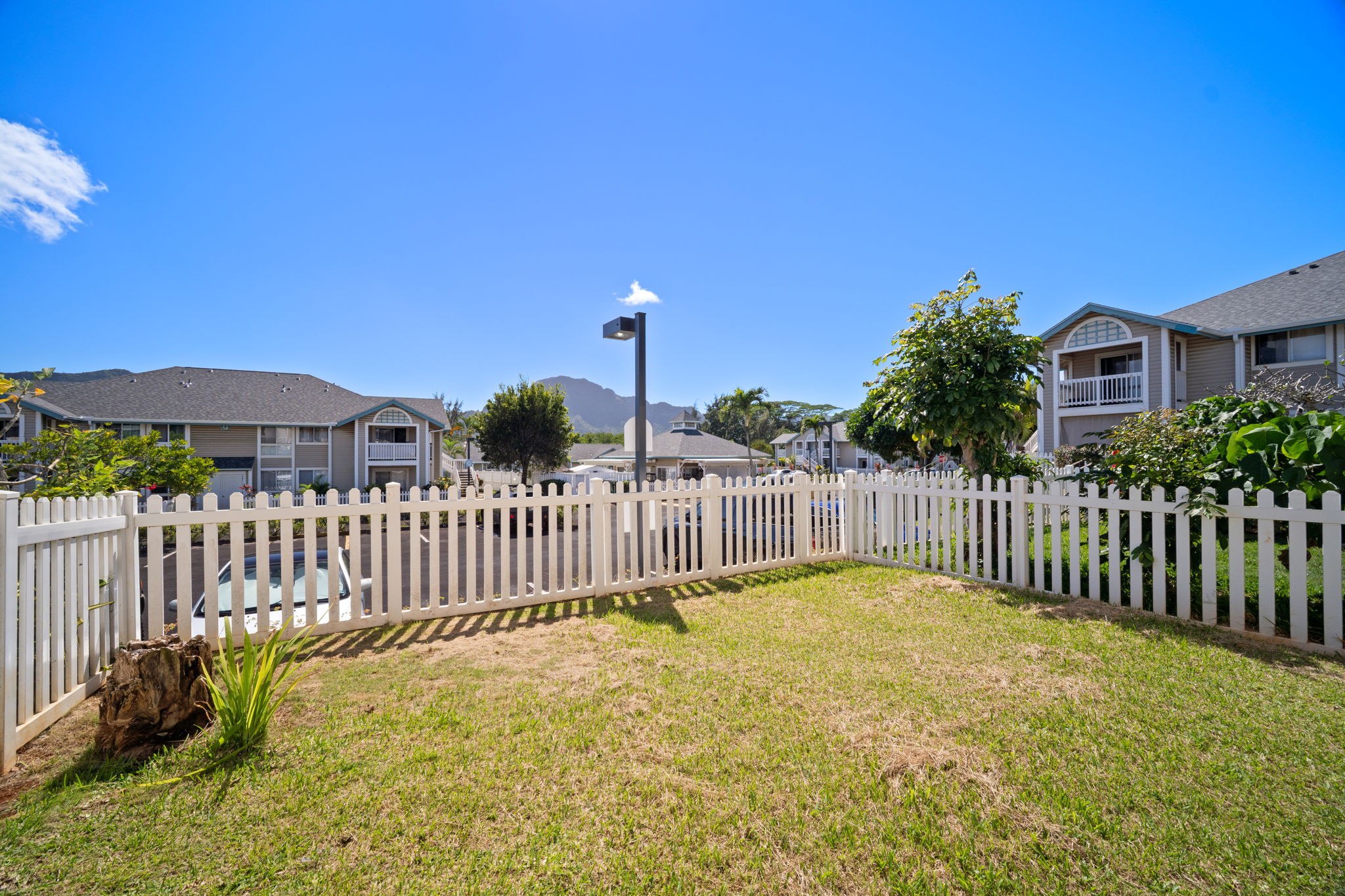 Welcome to Halelani Village at Puhi, where comfort meets convenience in this ground-floor townhouse featuring 2 bedrooms, 1 bathroom, and 2 parking stalls. This highly desirable unit offers a large private yard with beautiful mountain views, perfect for outdoor dining, gardening, or relaxing in your own space. Recently refreshed, the home features new interior paint, new luxury vinyl plank flooring, and new light fixtures, creating a bright and modern feel throughout. The kitchen is equipped with a new stainless steel range, and a new window A/C unit in the bedroom adds comfort year-round. Ideally located in Lihue near shopping, dining, and everyday conveniences and the airport, this move-in-ready home offers an excellent opportunity for both homeowners and investors seeking value and lifestyle in a well-maintained community.