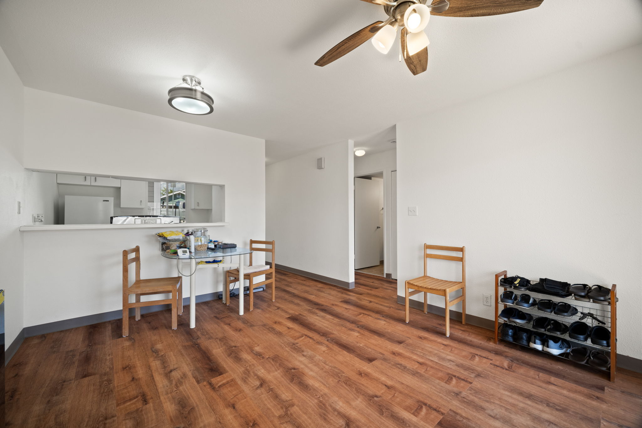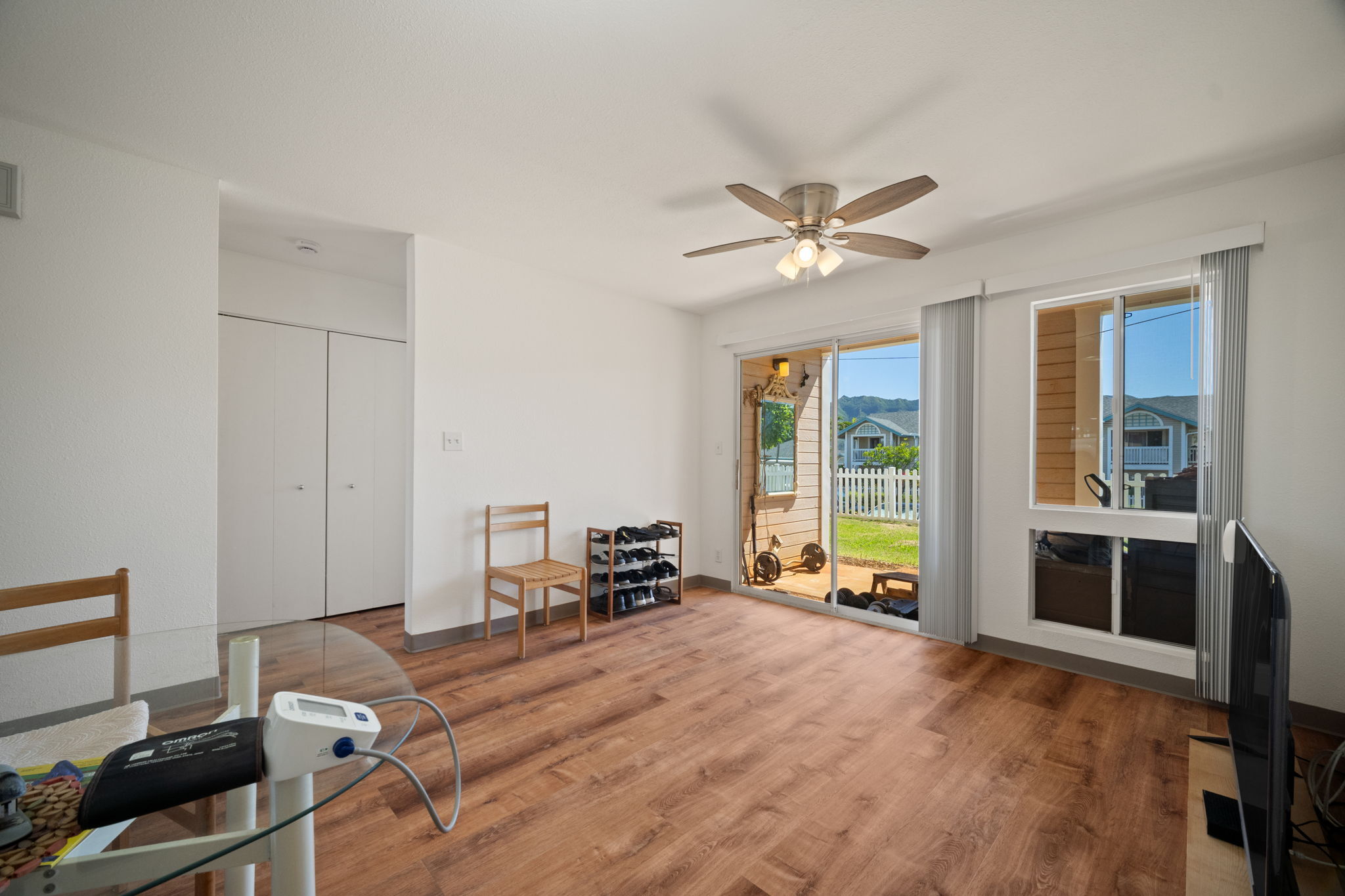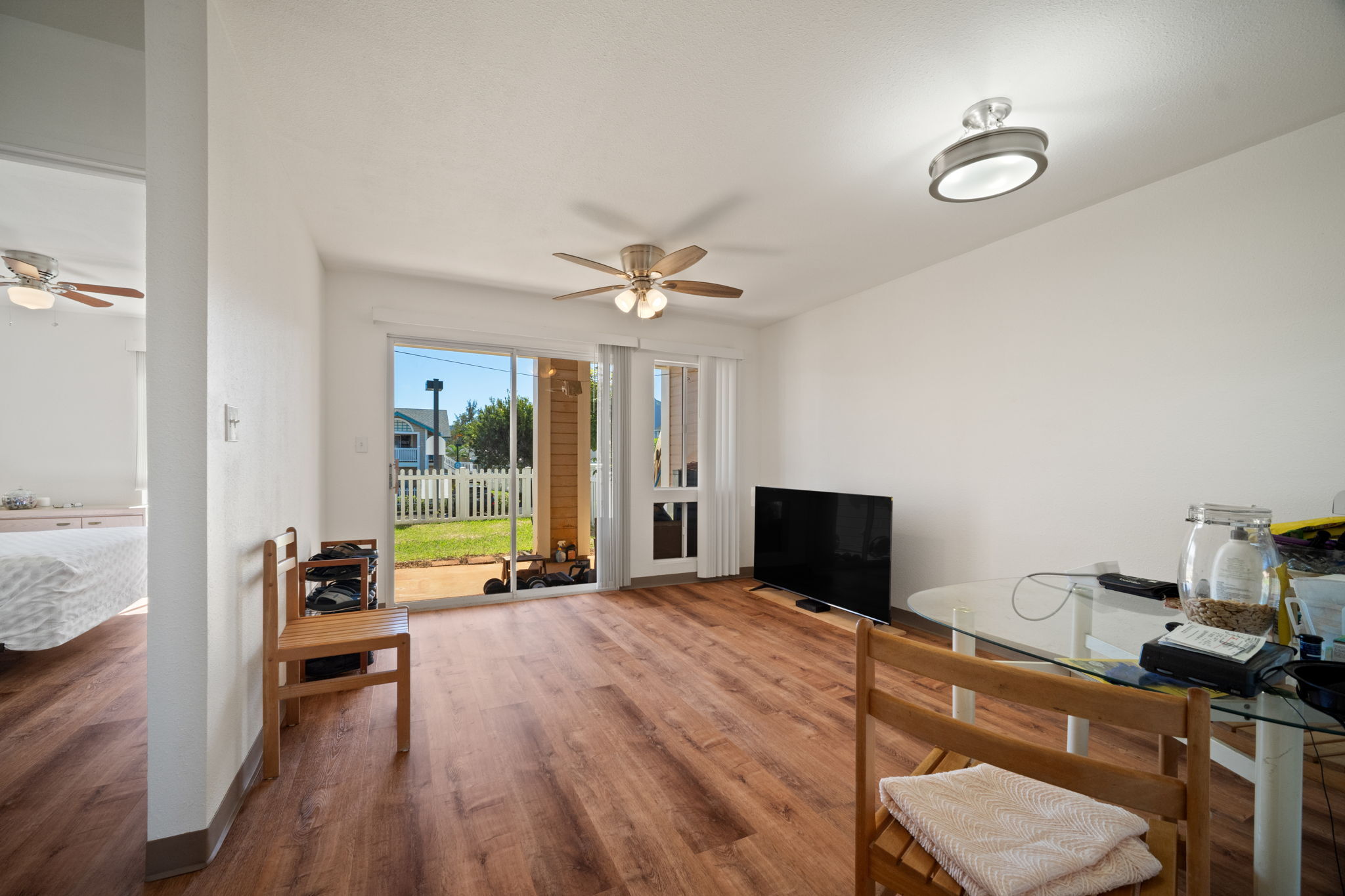 Welcome to Halelani Village at Puhi, where comfort meets convenience in this ground-floor townhouse featuring 2 bedrooms, 1 bathroom, and 2 parking stalls. This highly desirable unit offers a large private yard with beautiful mountain views, perfect for outdoor dining, gardening, or relaxing in your own space. Recently refreshed, the home features new interior paint, new luxury vinyl plank flooring, and new light fixtures, creating a bright and modern feel throughout. The kitchen is equipped with a new stainless steel range, and a new window A/C unit in the bedroom adds comfort year-round. Ideally located in Lihue near shopping, dining, and everyday conveniences and the airport, this move-in-ready home offers an excellent opportunity for both homeowners and investors seeking value and lifestyle in a well-maintained community.