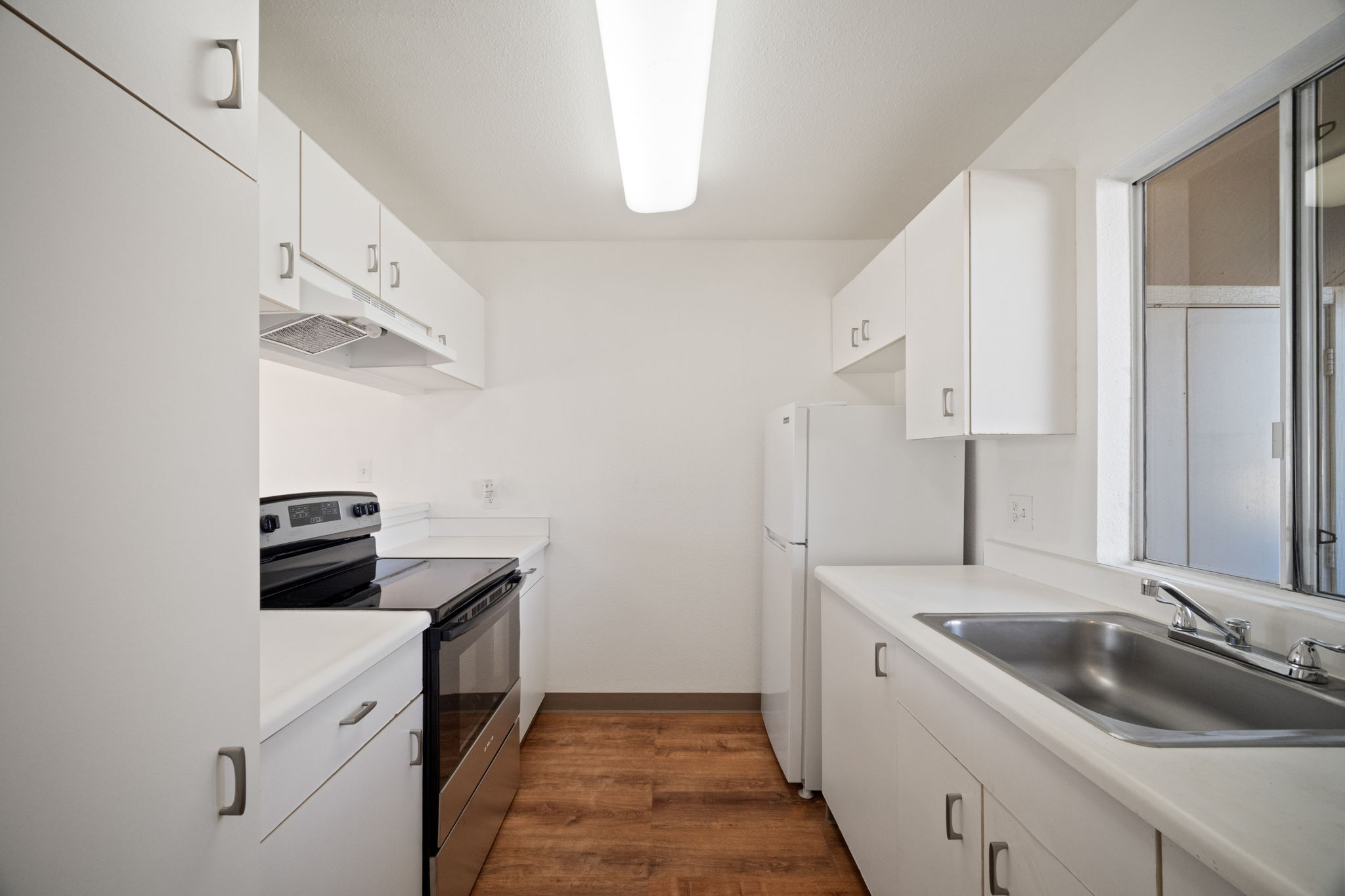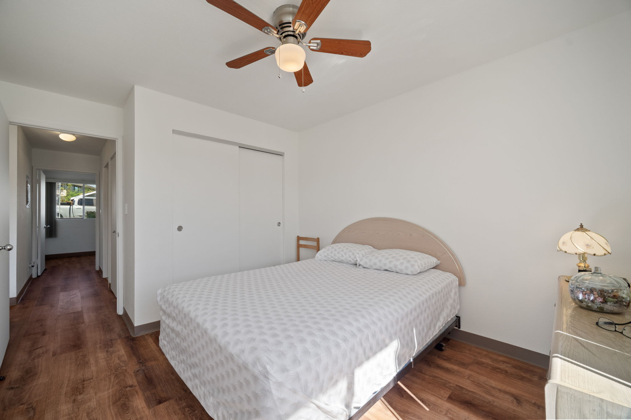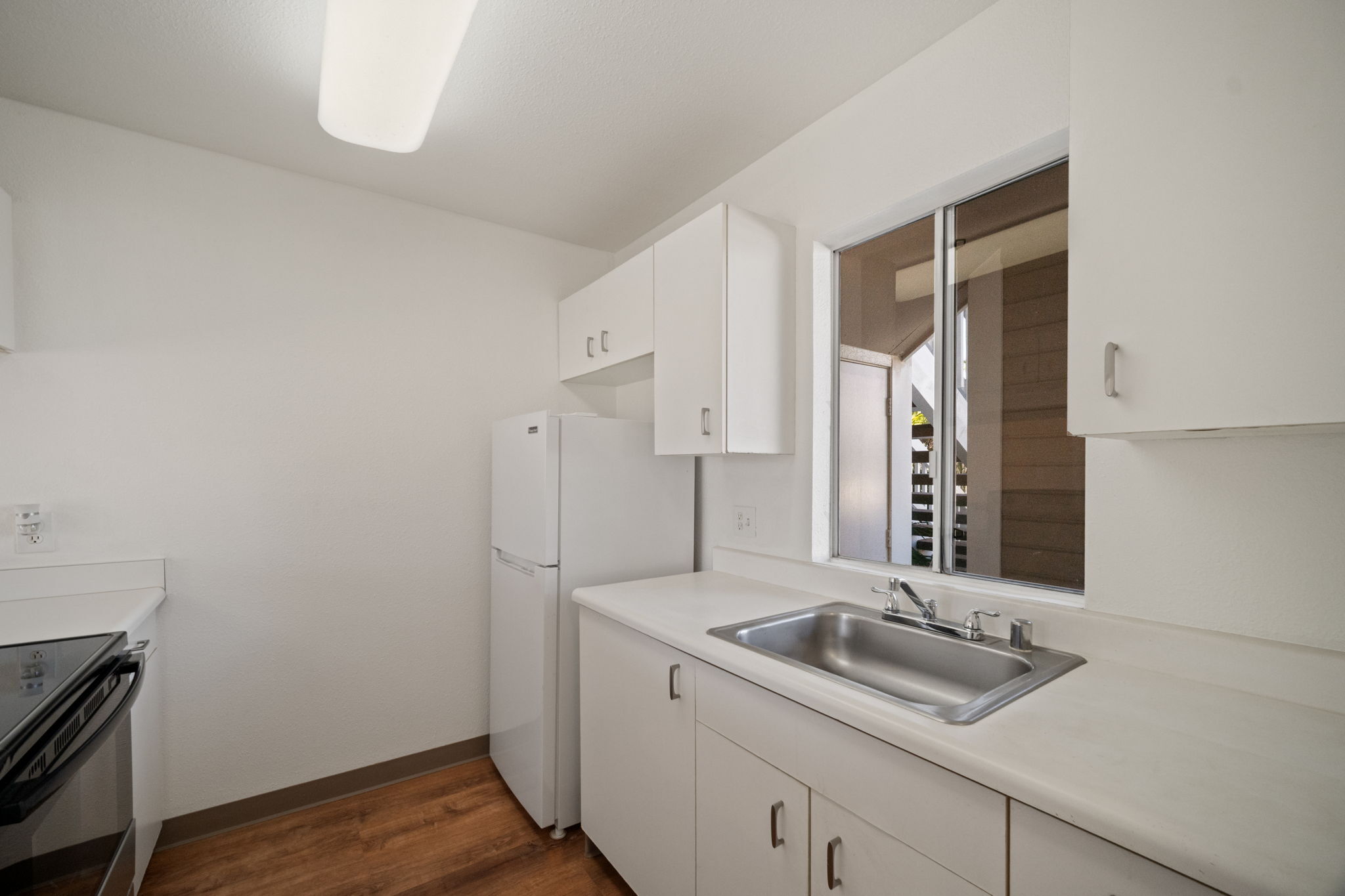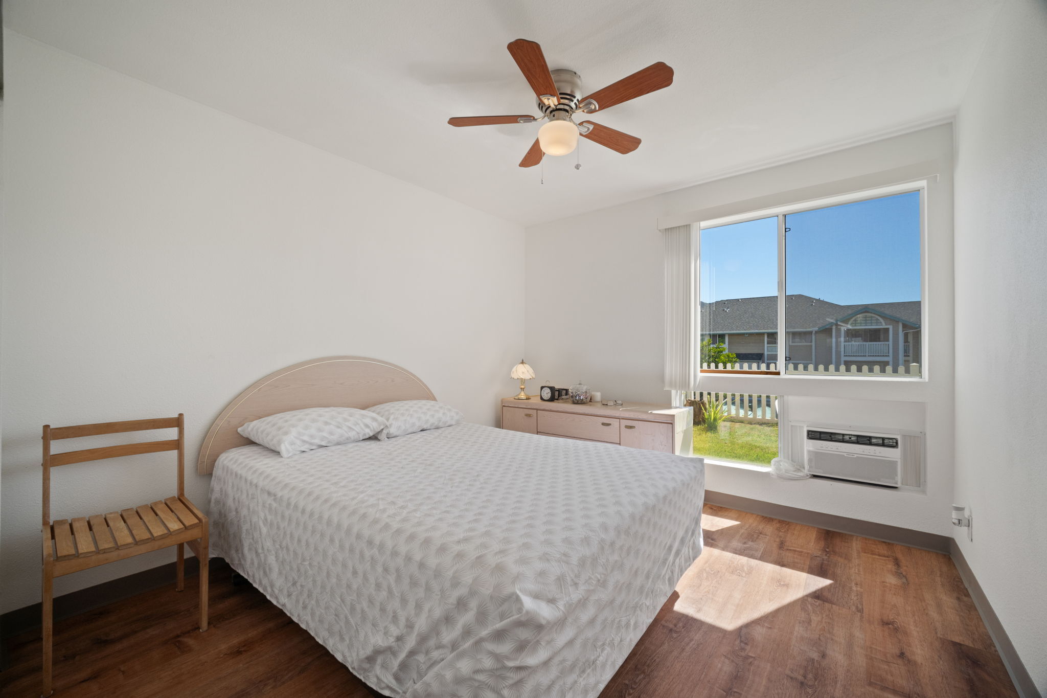 Welcome to Halelani Village at Puhi, where comfort meets convenience in this ground-floor townhouse featuring 2 bedrooms, 1 bathroom, and 2 parking stalls. This highly desirable unit offers a large private yard with beautiful mountain views, perfect for outdoor dining, gardening, or relaxing in your own space. Recently refreshed, the home features new interior paint, new luxury vinyl plank flooring, and new light fixtures, creating a bright and modern feel throughout. The kitchen is equipped with a new stainless steel range, and a new window A/C unit in the bedroom adds comfort year-round. Ideally located in Lihue near shopping, dining, and everyday conveniences and the airport, this move-in-ready home offers an excellent opportunity for both homeowners and investors seeking value and lifestyle in a well-maintained community.