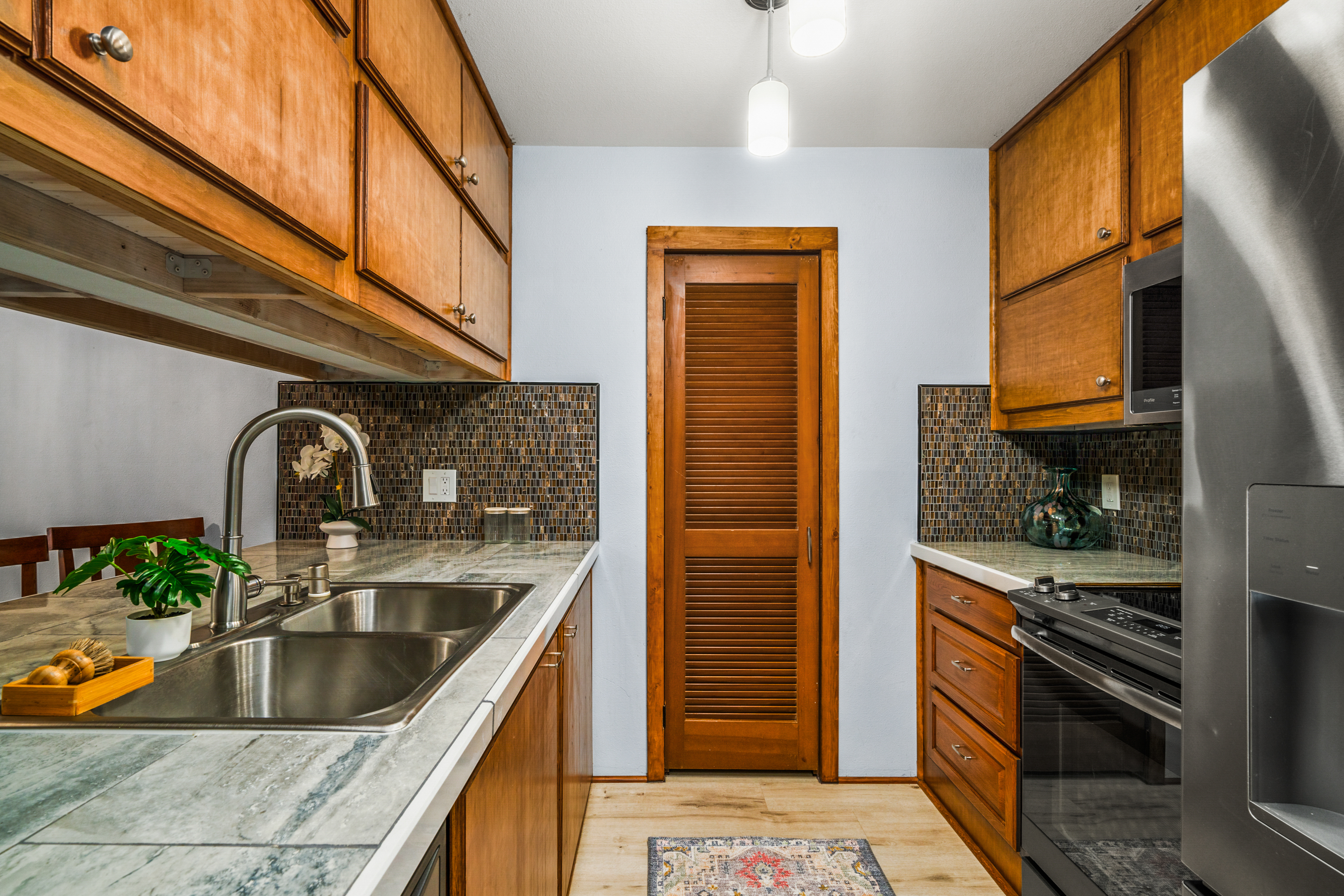 Welcome to this newly renovated, 3 bedroom/2 bath second floor corner unit. Enjoy a quiet evening on your private lanai with a forest view. Hookena is nestled in a quiet location in the heart of Lihue. Conveniently located near Costco, Safeway, Home Depot, and the public swimming pool.