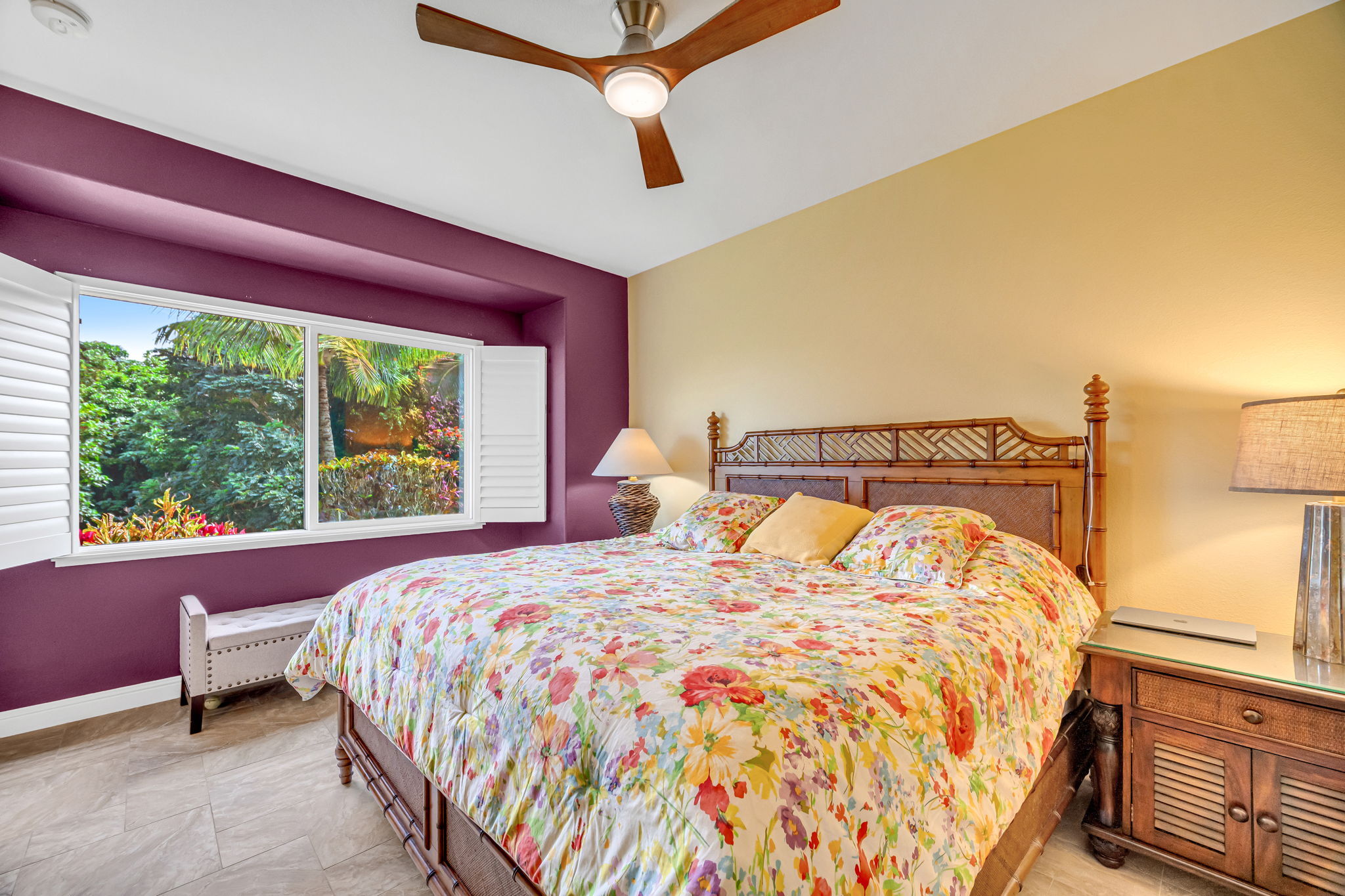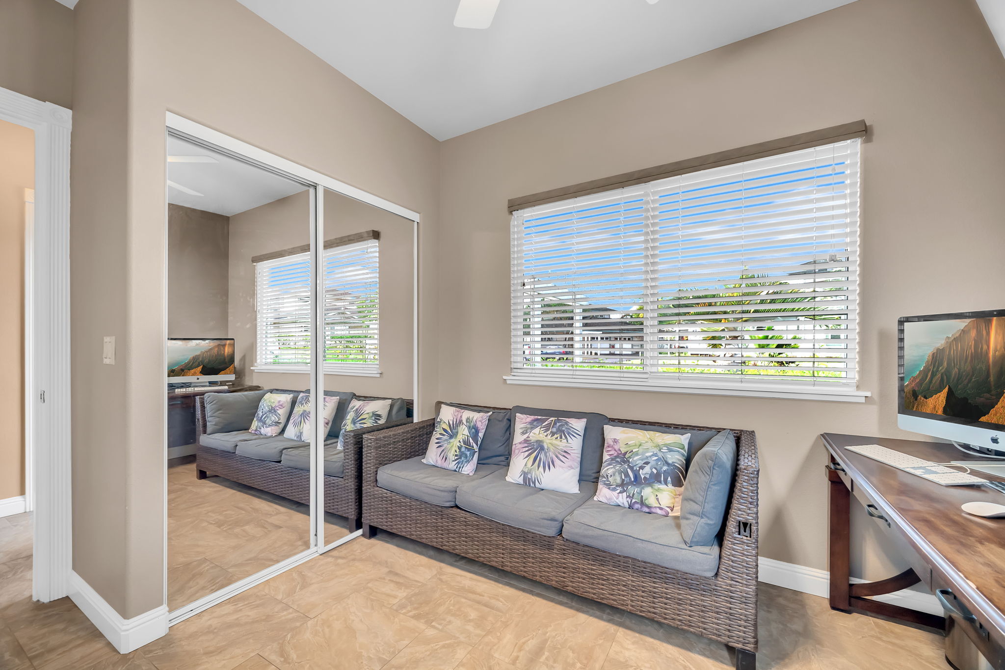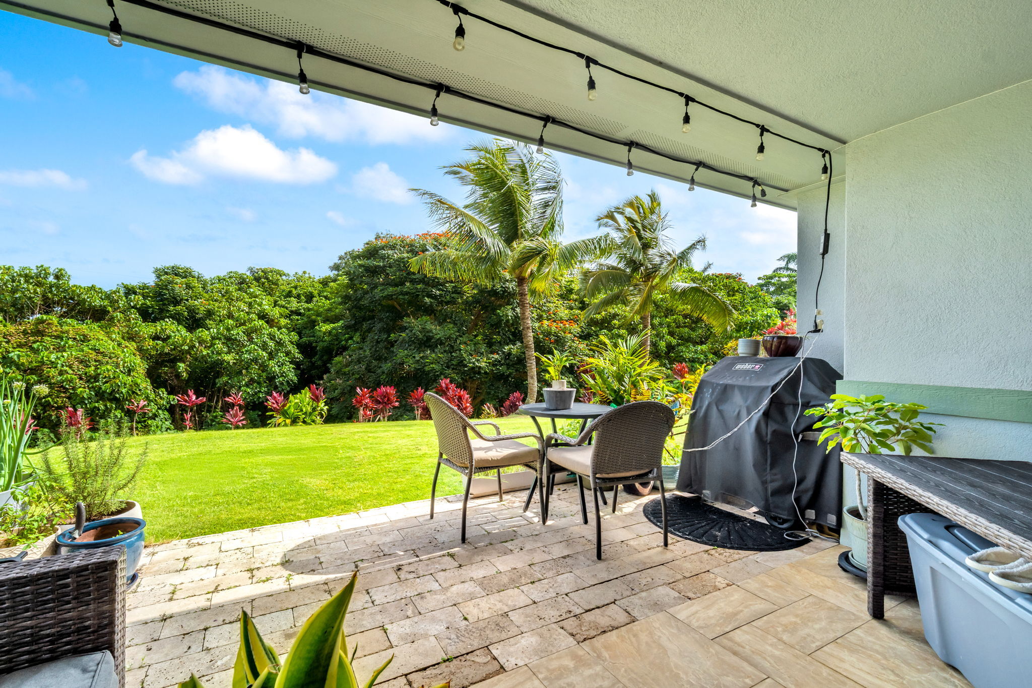 Known as Regency at Hule'ia #125. Mountain views from this conveniently located 2 bedroom/1.5 bath single story townhome that features high ceilings and an attached 1 car garage. This unit is move in ready with designer touches. A covered lanai makes for serene mornings when sipping your coffee. From your lanai you can stretch your legs on the grassy grounds. This unit is move in ready. It can come fully furnished. Regency Hule'ia is located on approximately 15 tropically landscaped acres and includes a community pool and clubhouse. A peaceful setting in the heart of Lihue close to schools, shopping, restaurants, fitness options, Lihue airport, Wilcox hospital, golf courses, Kalapaki beach and more. Although this unit has a small second bedroom, it is listed as a 1 bedroom in the county tax records. The main full bath is in the primary bedroom, with the half bath serving the rest of the townhome. The owners currently use the second bedroom as an office. Highest & Best due 1/30/26 at noon.