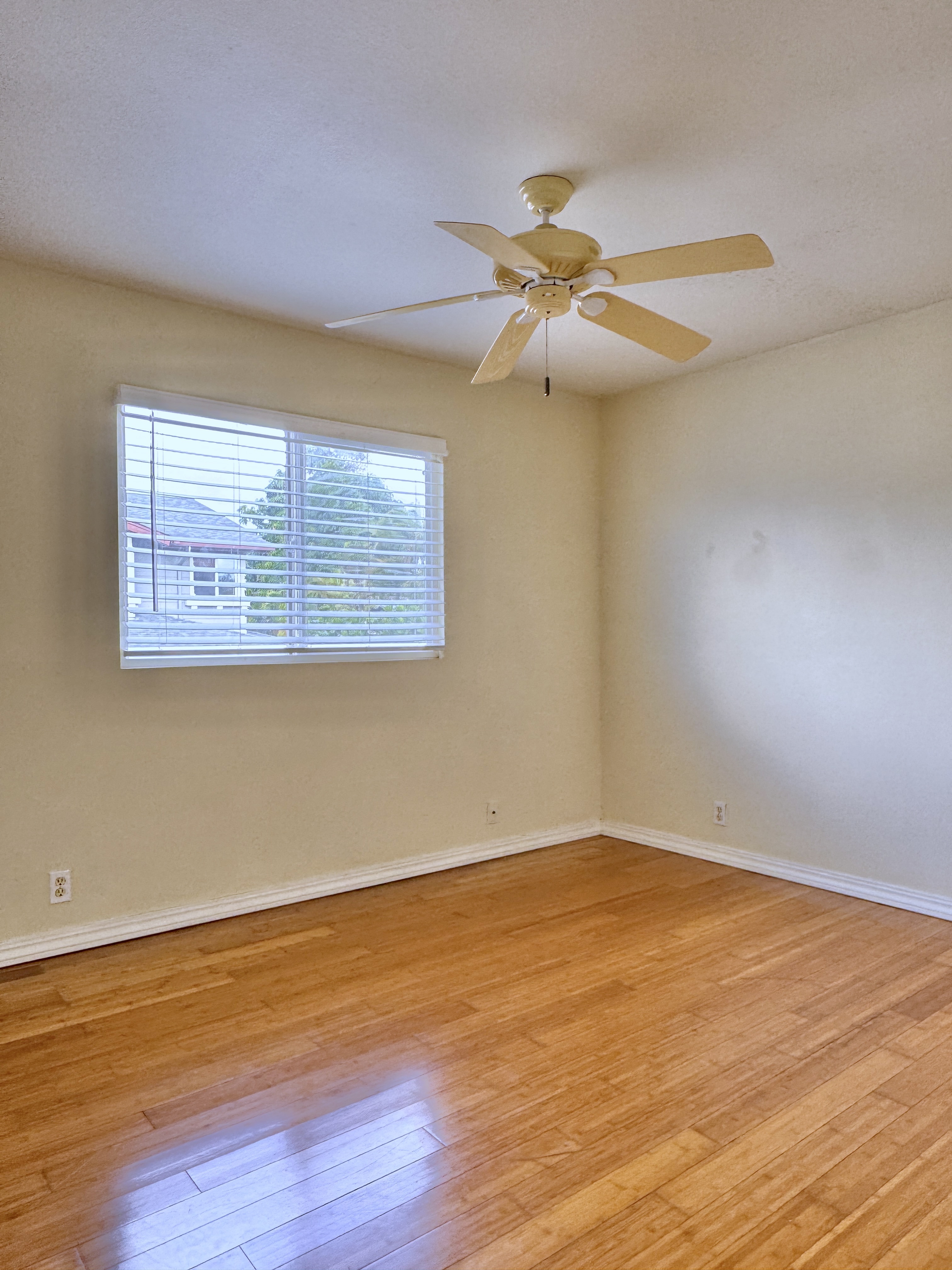 One of the bedrooms and a bathroom along with extra storage under the stairs rounds out the main level. Upstairs, you’ll find three bedrooms and two bathrooms. Bamboo flooring flows throughout the bedrooms, adding warmth and durability. The primary bedroom offers a walk-in closet and en suite. The upstairs hall bathroom features a newer vanity.