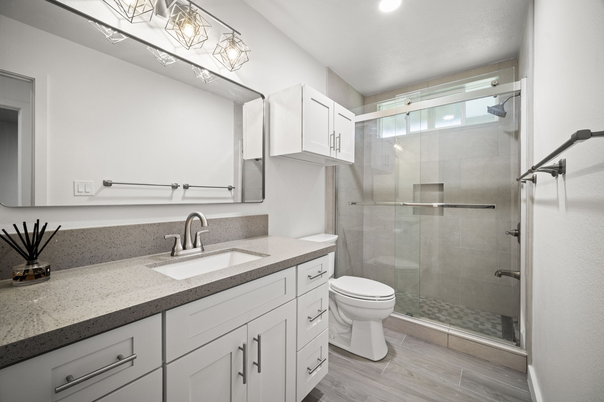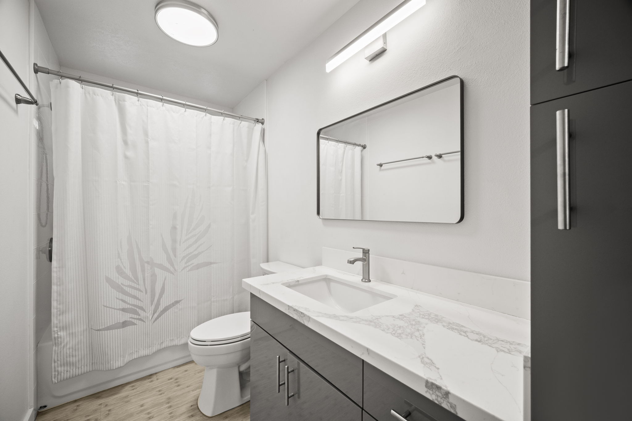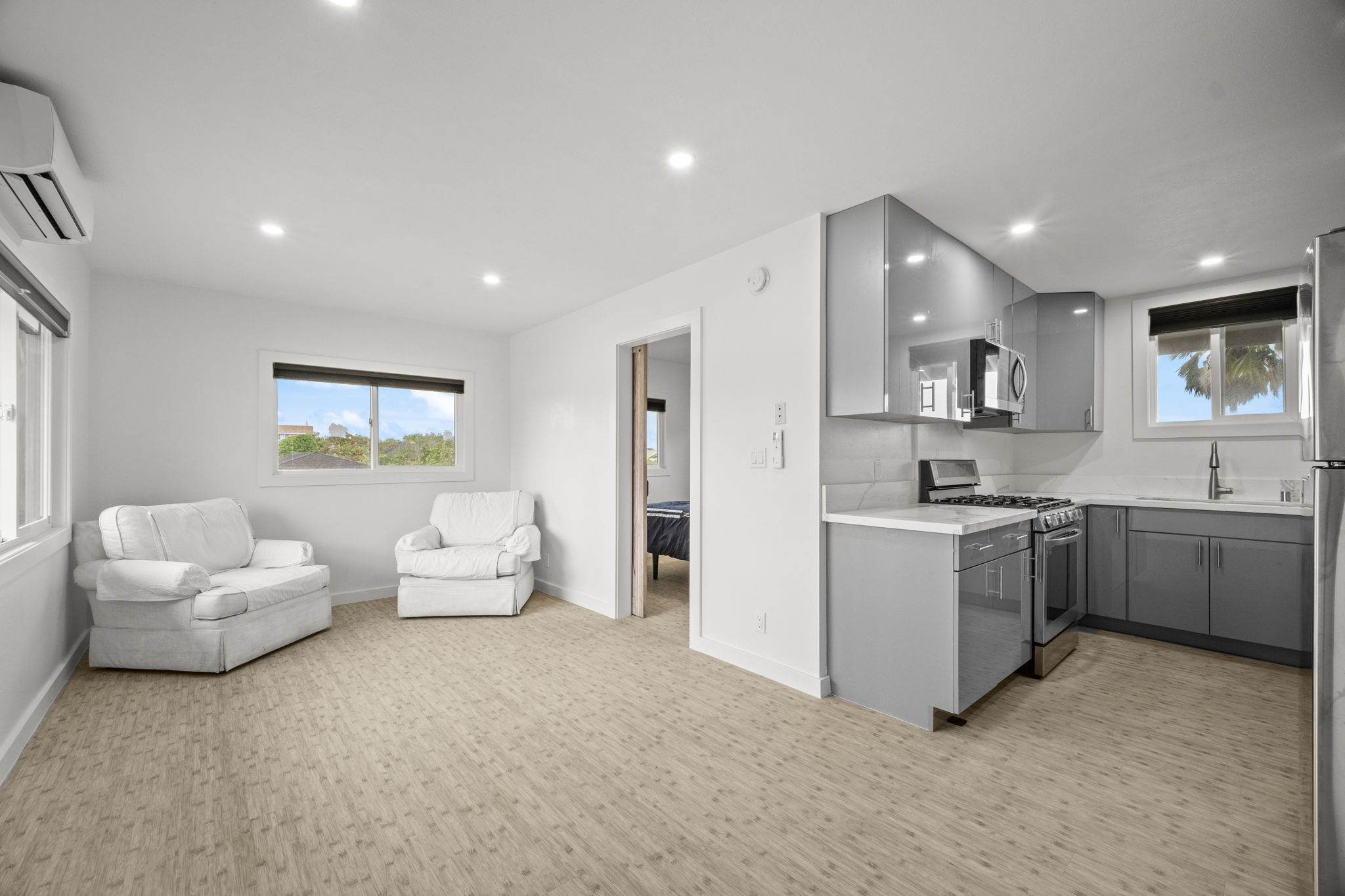 bedroom is separated by a wall and made into a studio with 3/4 bath located