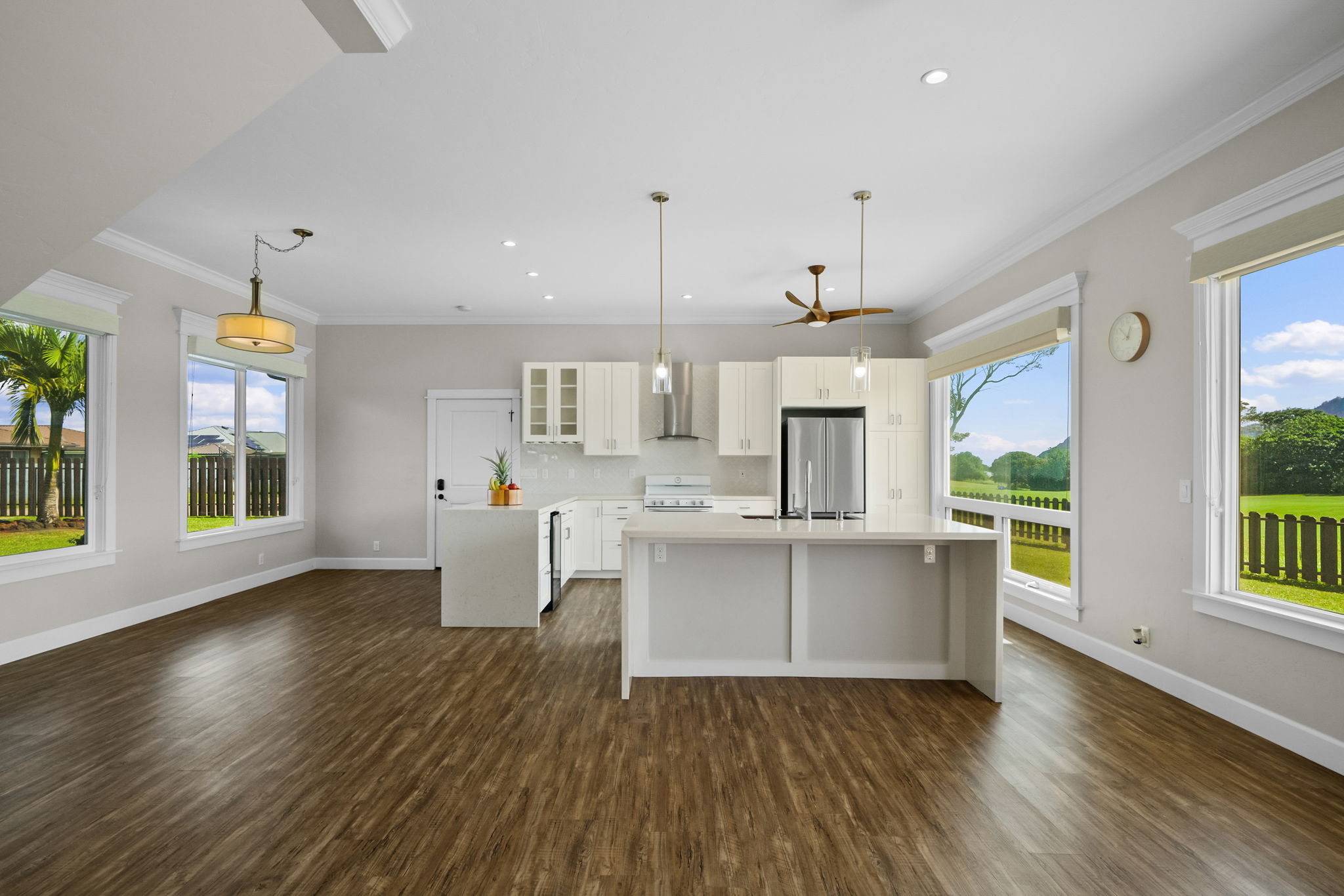 This exquisite custom residence in the prestigious Pikake subdivision seamlessly blends unrivaled convenience with elevated luxury and versatility. The main home welcomes you with elevated ceilings and an expansive layout featuring 3-Bedrooms and 3.5-Baths elegantly appointed. A separate studio suite–connects gracefully via a breezeway, offering an ideal retreat for multigenerational living, guest accommodations, or other possibilities.