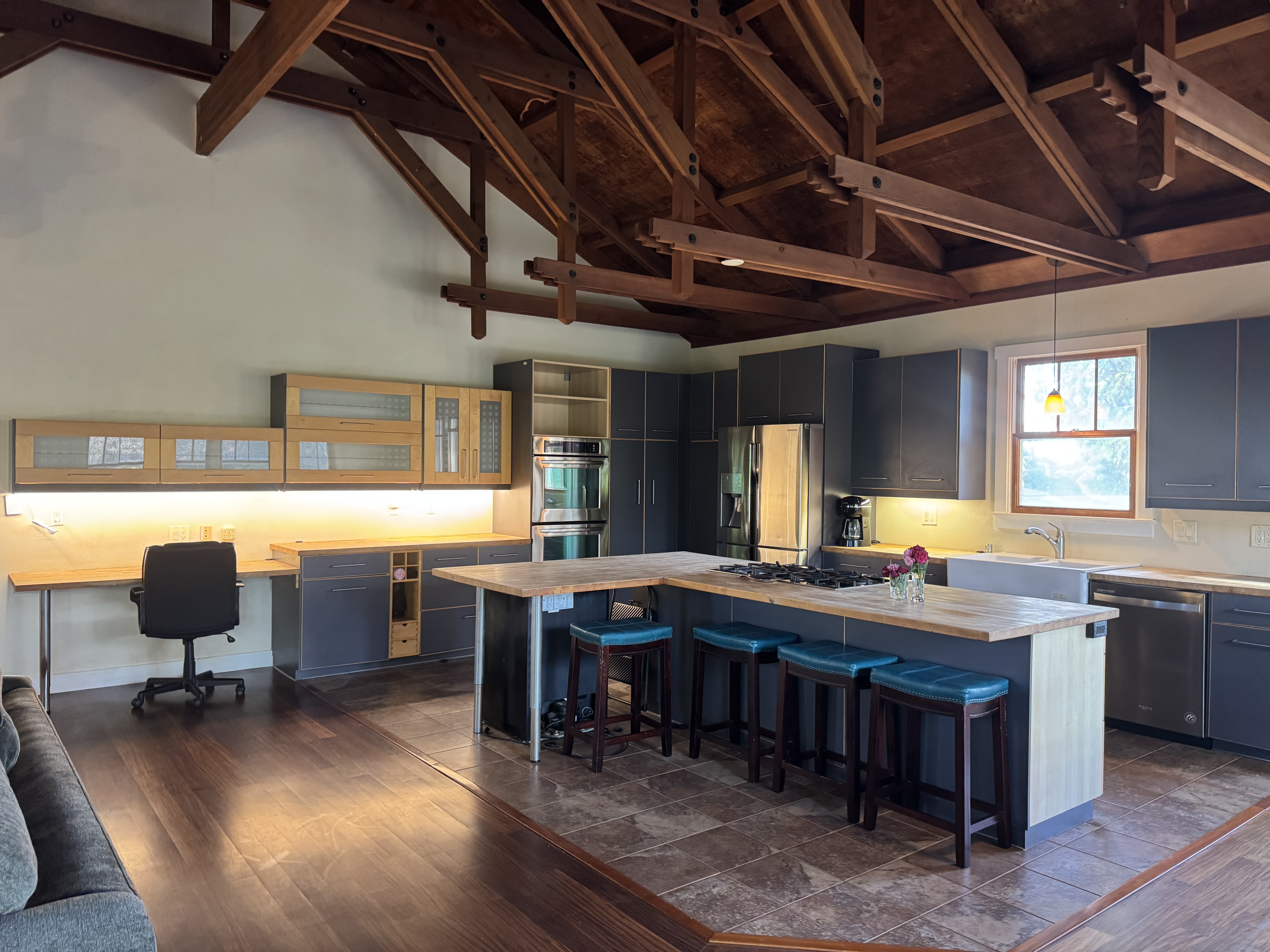 Large west-side home with attached comfortable studio apartment. Property backs up onto open land which gives it a quiet, rural feeling. High open beam ceilings and updated kitchen in the great room. Two bedrooms, two and a half baths are featured in the main part of the house, with two additional rooms which may have multiple uses. Professional photos will be forthcoming.