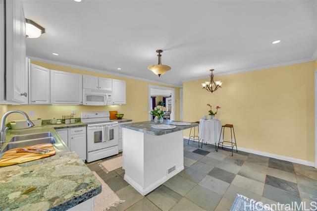 Welcome to 1123 Kehau Place — a timeless 3-bedroom, 2-bath plantation-style home nestled on a peaceful hillside just above historic Makawao Town. This classic residence with R-3 Zoning offers 1,392 sq ft of living space filled with warmth, character, and sweeping bi-coastal views that stretch to Moloka‘i. Step inside to find gorgeous hardwood floors, custom built-in cabinetry, and inviting wood accents that highlight the home’s old-world charm. The spacious kitchen, updated with slate tile flooring, granite counters, a center island, and crisp white cabinetry, balances plantation character with modern convenience — perfect for gatherings and home-cooked meals. Both bathrooms have been tastefully remodeled, one featuring a tub/shower with hibiscus tile accents, and the other boasting a walk-in shower, double sinks, and space to add your dream clawfoot tub. Set on a generous 11,250 sq ft lot, this property provides room for creativity and expansion — whether you envision a cottage, orchard, or lush tropical gardens. Enjoy morning coffee on the lanai while taking in the magnificent Upcountry breezes and panoramic views.