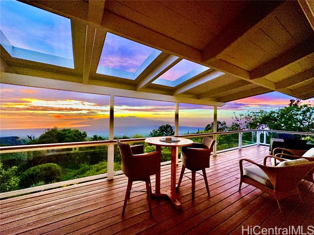 Nestled on the majestic slopes of Haleakala this unique up Country Estate, fully renovated offering 3 bedrooms/3 baths including an ohana, ready for the next owner. A rare opportunity to buy a California country style home with sweeping 280° of Maui bi-costal view. This magnificent home offers spectacular views of the West mountains and amazing Hawaii sunset right in your back yard. Improvements include new 50 year shingle, PV system with Tesla battery & your own workshop. Relax in the backyard Spa while you take in views and the fragrance of tree roses. Over 1000 feet of decking affords breathtaking view of the island. A professionally landscaped & irrigated yard contains abundant rare & exotic flowering plants. The fruit tree Grove contains citrus, apple, pear, plumb, avocado, coffee, peach, sugar apple & persimmon . Take a leisurely stroll through an Arboretum like setting, enjoying the amazing island views and smells of blooming Jasmine. Enjoy having a glass of wine while watching sunset next to your Koi pond. Low utility cost make this suitable for a second home or a primary residence. Own a piece of paradise in up country Kula where the weather is always pleasant.