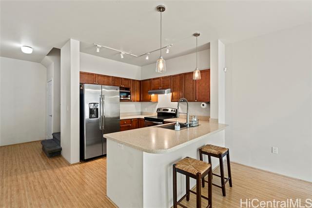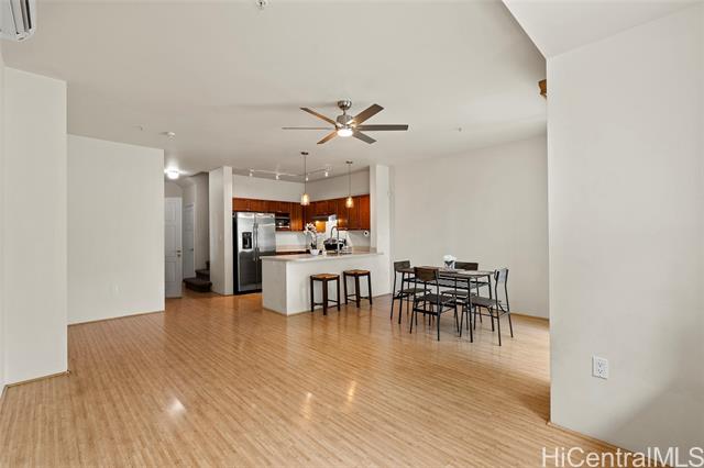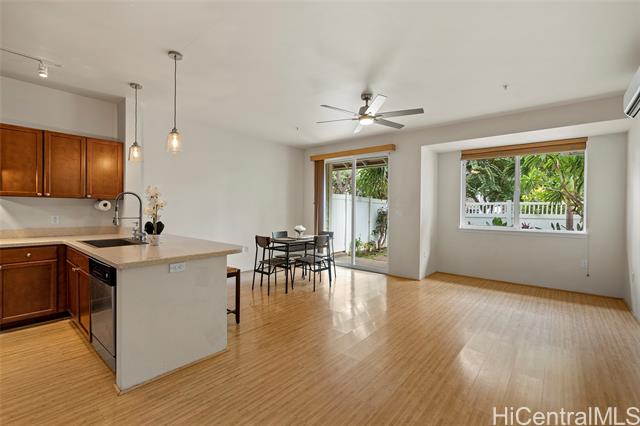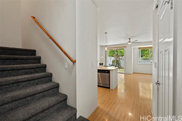 Welcome to your Maui dream home! Nestled at 31 E Kuu Aku Ln #206 in the heart of Lahaina’s desirable West Maui community, this 3-bedroom, 2.5-bath townhome is a rare find with a one-car garage and a deeded parking space. Blending modern comfort with island charm, this home offers the perfect coastal lifestyle minutes away from the beach. Step inside to a bright, open-concept kitchen, dining, and living area filled with natural light, featuring bamboo flooring, stainless steel appliances, a split AC system, a wired alarm, and custom shades. A convenient half-bath on the main floor ensures guest privacy. Your private backyard lanai, surrounded by plumeria, palm trees, and tropical plants, is ideal for relaxing, hosting a barbecue, or enjoying time with your pet. Upstairs, new 2024 plush carpeting leads to two private bedrooms, a full bathroom, an in-unit washer/dryer, and ample storage for linens and essentials. The spacious master suite occupies its own private floor, offering partial mountain views, vibrant sunsets, and beautifully landscaped surroundings.