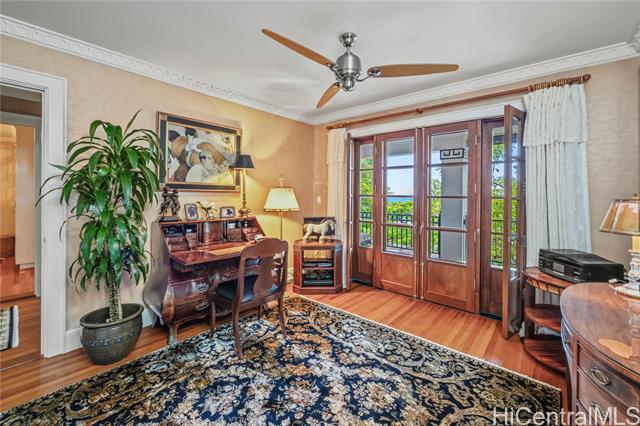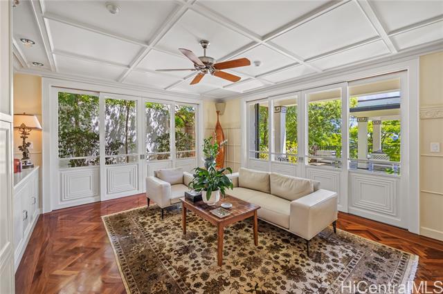 A Rare Diamond Head Estate with Timeless Elegance and Botanical Distinction- The legacy estate that reflects decades of thoughtful ownership and unmatched care. Lovingly maintained and meticulously upgraded, this refined residence sits on an expansive 34,157 sq ft lot and showcases an extraordinary level of craftsmanship, preservation, and pride. Honoring the property’s architectural heritage while introducing modern enhancements that elevate daily living. From the custom woodwork, curated interiors, and peaceful lanais, every element exudes quality and intention. Central to the plan of the garden, which was meant to create “an oasis in the midst of chaos”, were water features and arbors, which bring shade and structure to the garden with the addition of terraces connected by a winding path. The fountains and water features add visual beauty to the garden, as well. Tucked into the side of one of the lower hillside terraces, the path wanders up to and around a small yoga studio and guest cottage. The grounds are a living masterpiece. Breathtaking panoramic ocean and coastal views, minutes from Waikiki resort amenities, private clubs, and beautiful beaches.