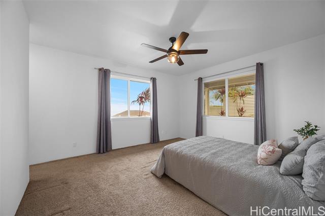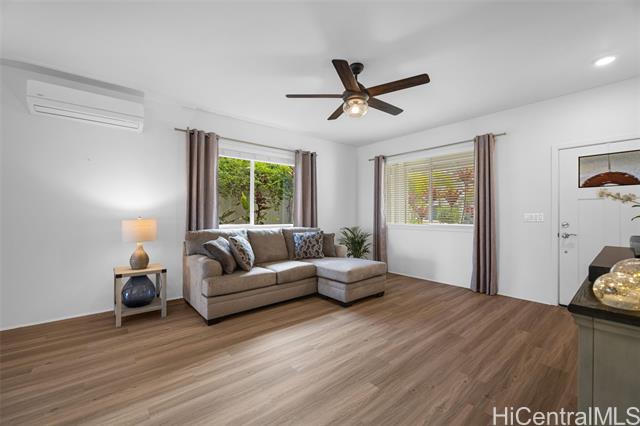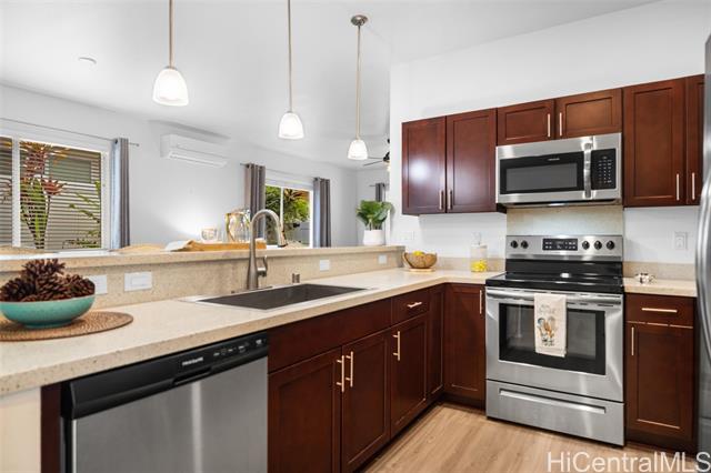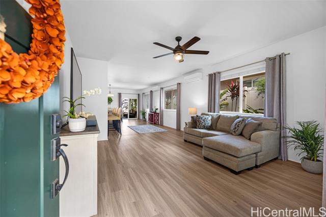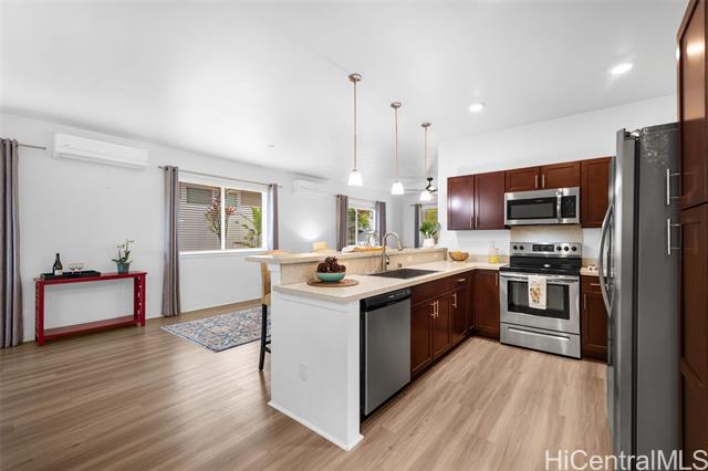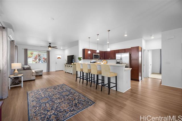 Majestic ocean views await from this beautifully maintained single-level home in the highly desired Highlands at Kehalani. This spacious 3-bedroom, 2-bath residence offers a 1502 sq. ft. open concept floor plan with 9-foot ceilings, luxury vinyl plank flooring and modern appliances. The dark cherry cabinetry with soft-close drawers and doors complements the solid surface countertops, creating a refined and functional kitchen space. Enjoy year-round comfort with two split A/C units and solar water heating for energy efficiency. Take in the stunning ocean vistas and tranquil mornings from your back lanai, surrounded by tropical foliage within a beautifully landscaped and fenced back yard. Come see and experience this lovely home for yourself - a true blend of comfort, elegance and island living. Enjoy the neighborhood park, walking paths and close proximity to downtown Wailuku with schools, shops and restaurants.
