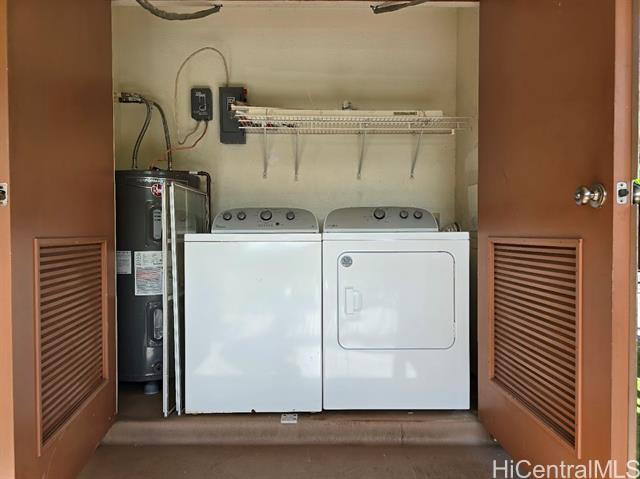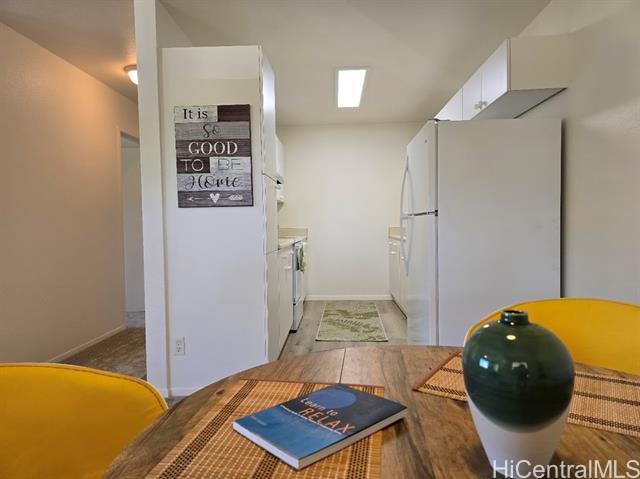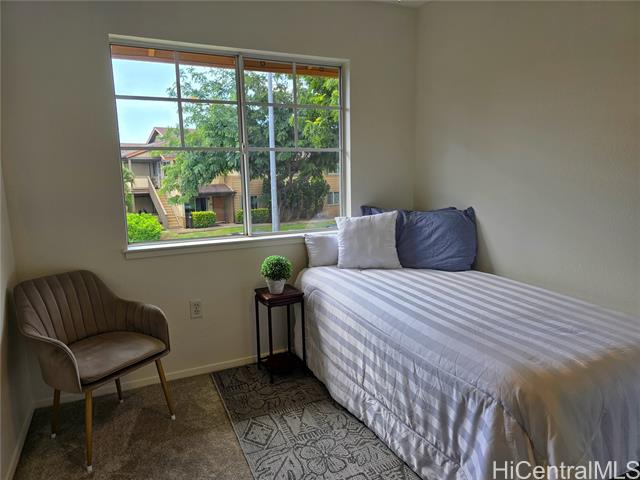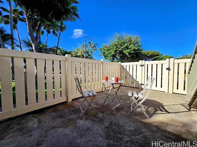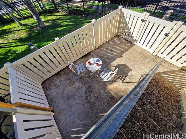 Attractive two level upper corner unit with an enclosed paved courtyard below and a 3 bedroom 2 bath unit above. Plenty of additional storage space in the attic. Lots of natural light with views of the park and garden across the street. Two assigned parking stalls in addition to ample street and guest parking spaces. New flooring, paint, appliances and fixtures were installed prior to tenant occupancy in May 2025. Tenant on lease until May 31, 2026. Residents are members of the Villages of Kapolei Community Association with exclusive use of pool and recreation facilities.