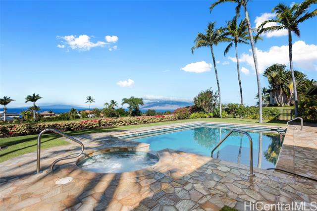 Stunning ocean and fairway views. Ground floor lanai flowing out to spacious grass area. Upgraded custom woodwork includes sapele kitchen, front entry cabinet, bathroom vanities, and closet build outs. Includes a unique additional custom shiplap murphy bed wall unit with cabinets and pull-out panels to create a third bedroom in front room for guests. Optional custom sapele murphy bed in second bedroom. Soundproofing added on both adjoining walls and in ceiling in front room and kitchen. New recessed lighting and ceiling fans. Full remodel in 2019 and new custom tile showers (2025). Upgraded split A/C with additional third unit in second bedroom. Bosch kitchen appliances and LG washer and dryer. Tile floor throughout. All new window coverings. Current cost for upgrades would be in excess of $350,000. Pet friendly complex. Tranquil pool area that includes a gym, community center, and barbeques. Short stroll down the golf course to local dining, shops at Wailea and premier beaches. Monthly HOA fee of $1289.00 includes water, sewer, trash, landscaping, and property maintenance. All comments, data is provided by seller or seller's representatives.