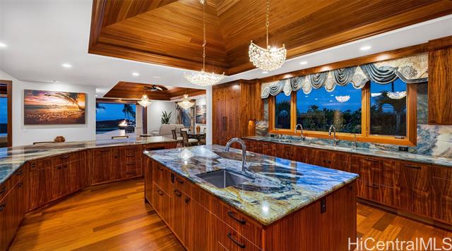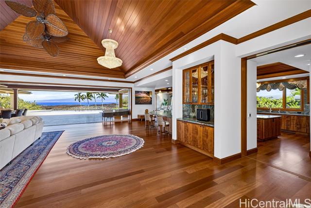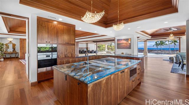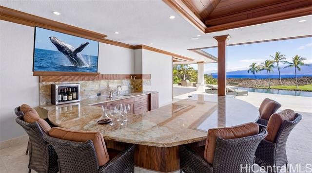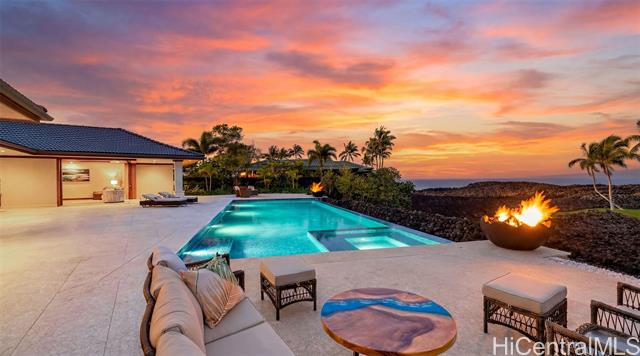 Welcome to Ka Hale Kai Nani, the Beautiful Ocean House. This exceptional "Modern Hawaiian" style oceanfront estate is in the prestigious One Ocean community at the world-class Mauna Lani Resort. With sweeping views of the ocean, golf course, and Mauna Kea, this home is a true masterpiece of design. Limestone and Mahogany gate brings you to a private courtyard and Great Room with vaulted ceilings, Brazilian Cherry floors, Sapele, custom Koa and Mango cabinetry. Elegant full wall sliding doors create the perfect indoor out experience. The chef’s kitchen is a showpiece, featuring exquisite cabinetry by Roy Lambrecht Woodworkers and a dramatic Blue Louise quartzite island and curved bar that bring art and function together. Covered lanai includes a summer kitchen with wet bar, and a 52-ft saltwater infinity pool. Tiki torches and lava fire pots frame unforgettable sunset evenings. Exclusive One Ocean amenities include: Ocean Club with oceanfront infinity pool, Sports & Wellness Club, conference center with full kitchen, pool, and BBQ area. Mauna Lani owners also enjoy access to the private Beach Club, Napua Restaurant, Golf Club, Fitness Center, and Shops.