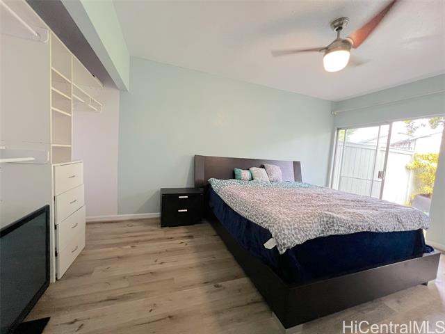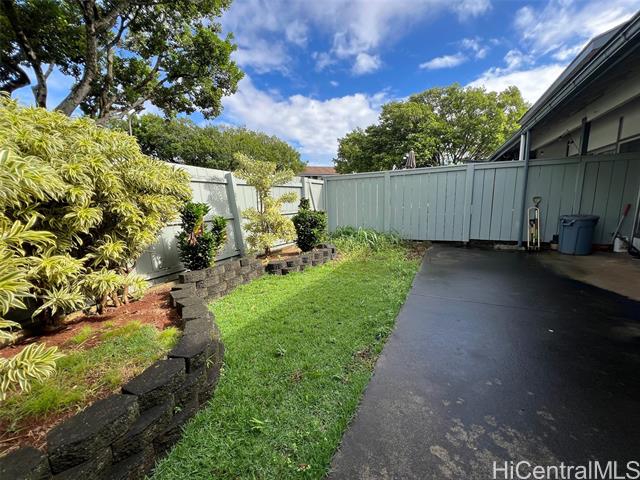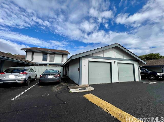 Discover this conveniently located townhouse in the heart of Mililani. This fantastic opportunity includes the highly desirable convenience of an enclosed one-car garage and a reserved open parking stall directly in front of your entrance. Enjoy charming outdoor living with a front porch and a private, fenced back courtyard. The interior offers a functional layout with two separate areas for kitchen table and dining table, and a dedicated laundry room. The main floor features a spacious primary bedroom with its own entrance to the backyard. This probate sale will convey "as-is." The seller's disclosure statement will be completed by a non-occupant heir, and buyers should be prepared to perform their own comprehensive due diligence.
