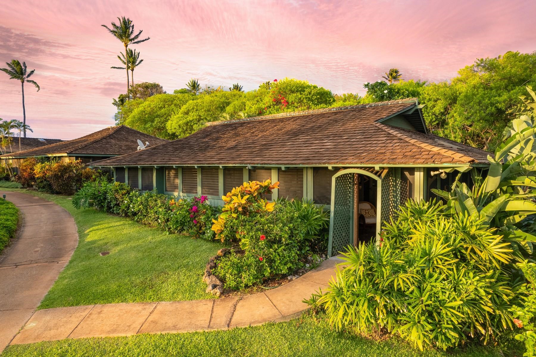 Owned and imagined by style icon Lynn Factor of the Max Factor cosmetics family for her Maui retreat, this distinctive home is in the exclusive International Colony Club. The ICC is a golf cart friendly community, made up of 44 free-standing cottages on nearly 10 acres of land with mature tropical landscaping, walking paths, and two swimming pools. Built entirely from redwood with a Hawaiian Japanese architectural aesthetic, this unique cottage offers well over 1800 square feet of living space including the enclosed lanai and has been thoughtfully designed to flow harmoniously with the natural environment. Vaulted ceilings and skylights, louvered windows, and ample storage are just a few of its many features. It enjoys a commanding ocean view location backing the Kaanapali Royal Golf Course and is just a five-minute walk or ride to sandy Kaanapali Beach, rated by Tripadvisor as one of the best beaches in the world. Authentic and imbued with character, this spacious cottage is ideal for a small family, easy Maui retirement living or your vacation home on Kaanapali’s hillside.