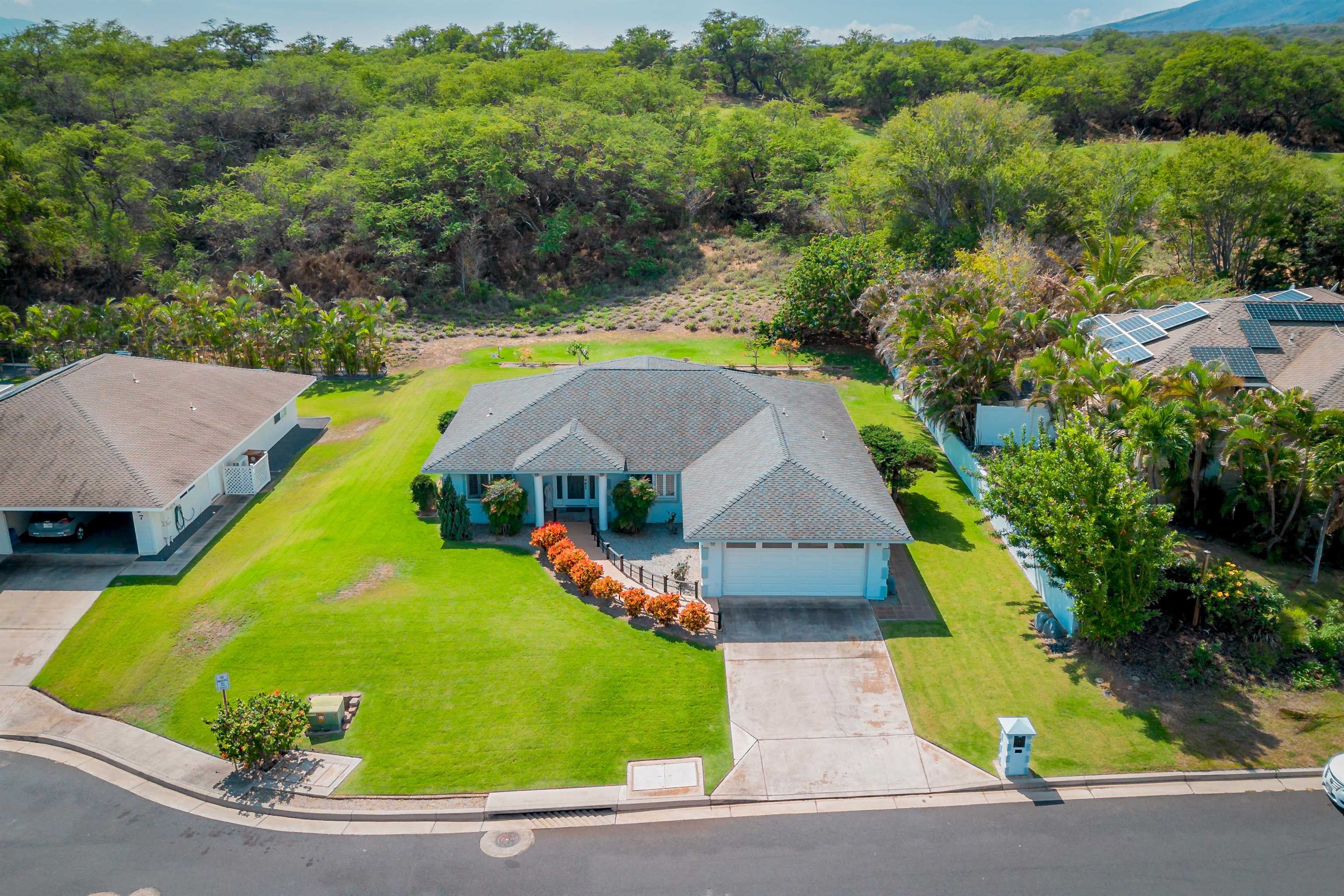 Private tranquil home located on a double ended cul-de-sac street. Private backyard views of golf course rough. Single level well maintained spacious 3 bedroom 2 bath, Grand Fairways, Maui Lani. Ideal central Maui location, convenient to schools, hospital, restaurants, shopping, Costco, golf, beaches, parks, airport. etc. Wonderful high ceilings thru out property. The Main bedroom located on westside of the property. The additional 2 bedrooms on the east side. (currently one is in use as an office) Main living areas & main bedroom enjoy privacy and view golf course rough of the the Dunes at Maui Lani golf course. Great covered 246 sf. lanai off the main living areas. Large landscaped lot 10,358 sf, the south backyard lot line borders "The Dunes at Maui Lani" golf course rough/trees. Room for a pool. Central AC, Solar Hot Water, Custom Window Shutters, Automatic Sprinkler System. Owner is in the process of downsizing. Property is a delight and easy to show by appointment.