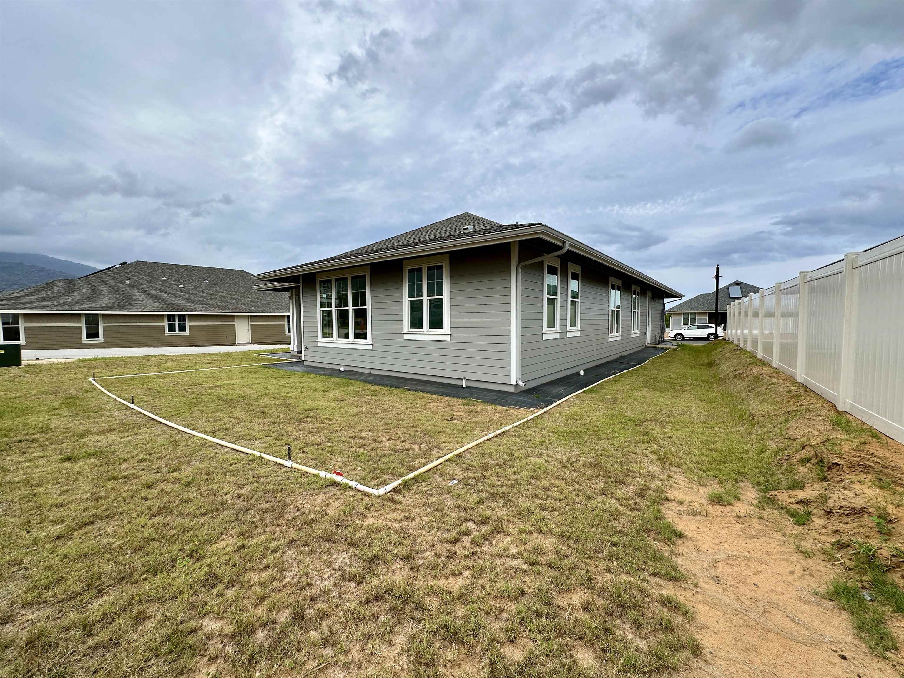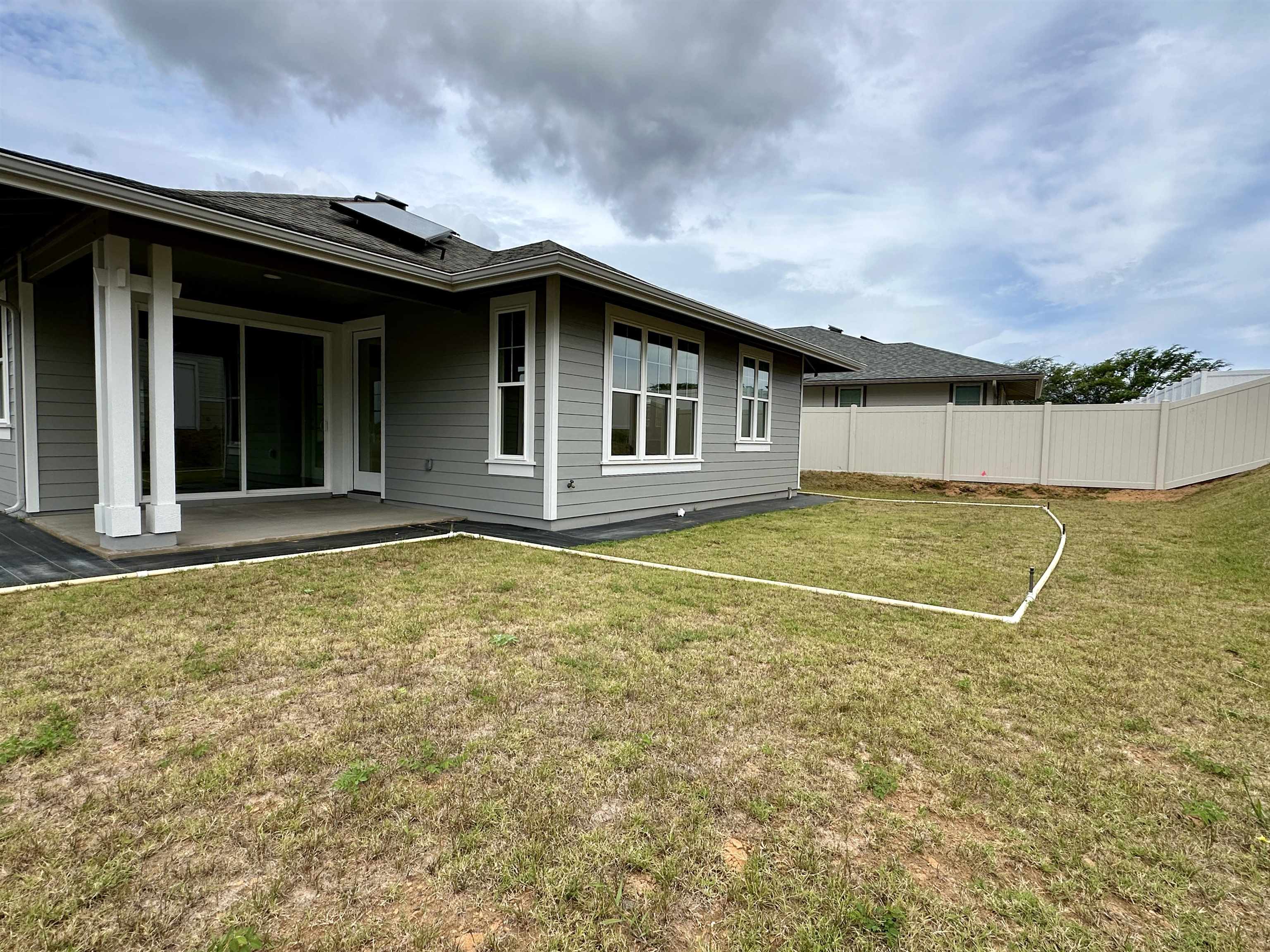 WELCOME HOME! This brand new and move-in ready home includes a 1-year customer service warranty and 10-year limited builder's warranty. Located in a highly desirable new community, The Parkways at Maui Lani is conveniently located in central Maui within the Maui Lani Master Planned Community and is in close proximity to Maui Lani Regional Park and trails, medical facilities, the airport, shopping, beaches and schools. This single level, IK3 plan, features an open floor plan with 3 bedrooms and 2 baths with approximately 1,596 s.f. of living space. All homes within The Parkways community include 9-foot ceilings and 8-foot custom doors. Additional bonus features include laundry room, exterior insulation and solar hot water heater. The home will also include a private E-one sewer system. This home has many upgrades including, upgraded tile in bathrooms, LVP flooring upgrade in great room, designer carpeting in bedrooms, EV receptacle with 50 AMP breaker in the garage for electric vehicles, PV prep ready, LED lighted mirrors in all bathrooms, full rain gutters, refrigerator, washer & dryer and custom drop zone. All information subject to change at any time. Photo of front yard landscaping is of a virtually landscaped yard.