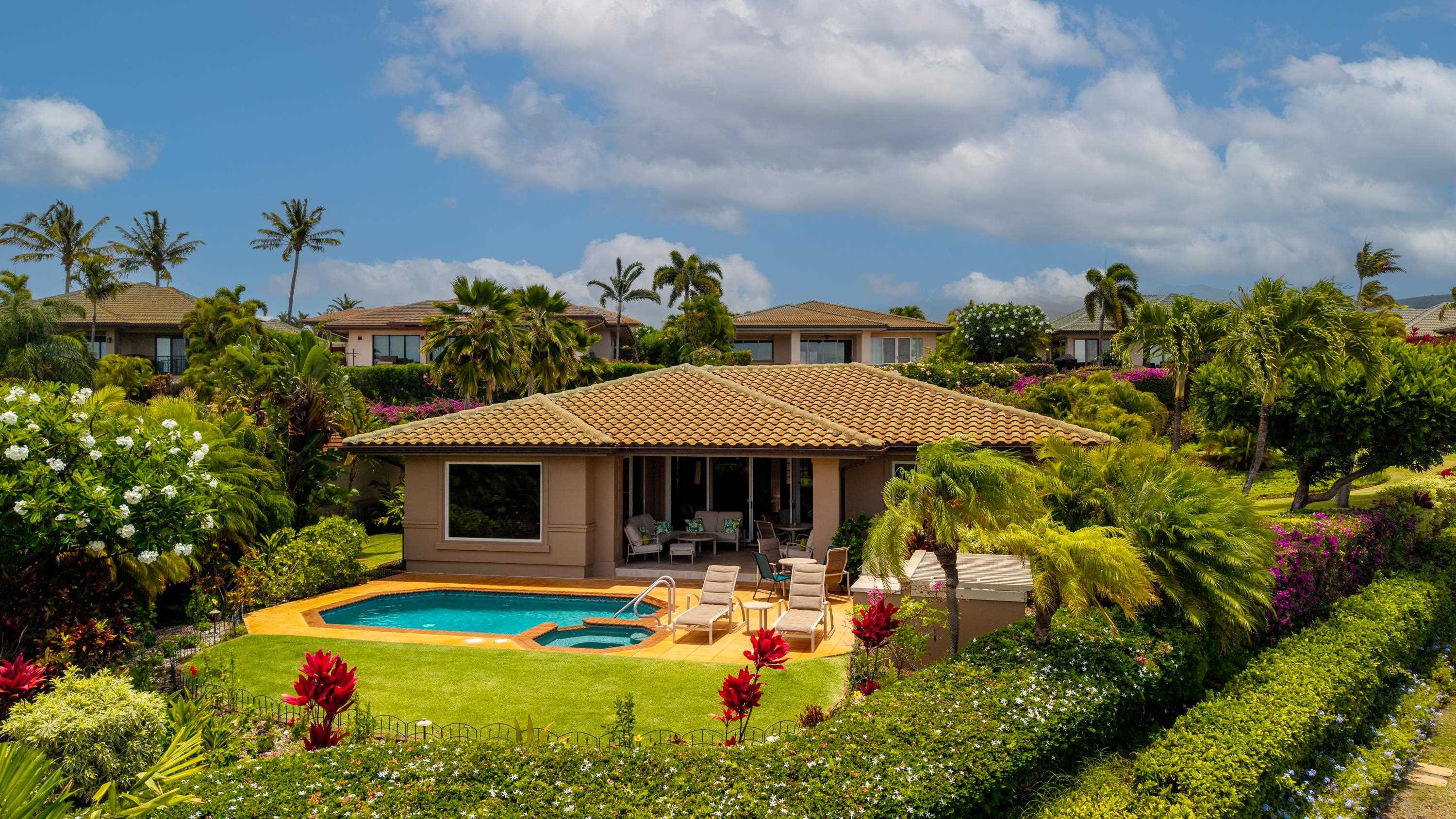 Spectacular unobstructable ocean, Molokai, Lanai and year round sunset views from this dual gated single level Kaanapali home. The Summit is a unique collection of 17 one & two story detached home condominiums located on a 17 acre parcel near the summit of the Kaanapali Golf Estates. It offers privacy and seclusion high on the hill with the island of Lanai in the distance. This luxury 3 bedroom, 3 bath recently remodeled home features tile floors, granite countertops and beautiful wood cabinets. Experience ocean and island views from the spacious great room, formal master bedroom, dining room and kitchen. The home features a pool, spa, outdoor kitchen with direct gas and bonus workout room. All surrounded by grass lawns and resort style landscaping. Homes in The Summit Phase I are rarely available and the association dues cover the exterior paint and pressure washing, roof, all landscaping, insurance, pest control, and pool and spa maintenance. Photovoltaic system with Telsa Powerwall. You will love the luxury throughout this custom designed home -- Secure, safe and located in the Kaanapali resort the Summit is a short golf cart ride to all that Ka’anapali has to offer. Residential Condominium home is being sold fully furnished.
