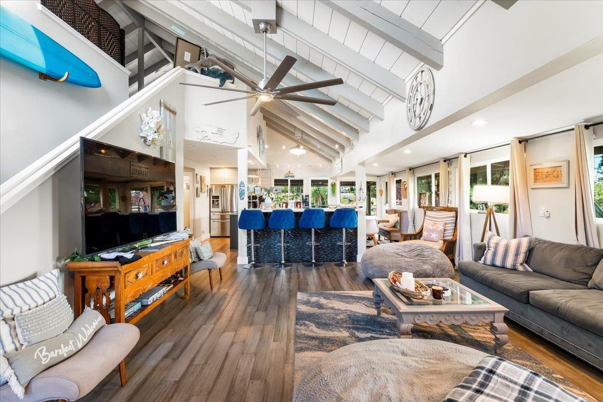 Breathtaking West Maui Mountain & Ocean Views! Welcome to your dream, FULLY FURNISHED, Upcountry retreat overlooking the 11th Fairway of the Pukalani Country Club Golf Course–offering a park-like setting with sweeping vistas and an abundance of space and serenity. This rare golf course-front home has been beautifully remodeled in 2017, blending modern elegance with the charm of Maui living. Step inside to discover high vaulted ceilings, a spacious finished loft, and a bright, open layout that invites natural light and showcases the spectacular scenery from every angle. The contemporary kitchen is a chef’s delight, featuring custom tile work, quartz countertops, premium cabinetry, stainless steel appliances, and panoramic windows that bring the outdoors in. Relax or entertain on the expansive covered wraparound lanai–perfect for enjoying sunrise coffee or sunset cocktails. The property also includes a versatile enclosed space ideal for a workshop, art studio, or additional storage. Located in the heart of Pukalani, you’ll enjoy an ideal climate, proximity to top-rated schools, shopping, and the lively Saturday Farmers Market. All the perks of Upcountry living, yet just 15 minutes from Kahului town and the airport. Golf course homes in this area rarely come available–don’t miss your chance to own one of Pukalani’s most desirable properties! ** Professional photos and video coming soon!! **