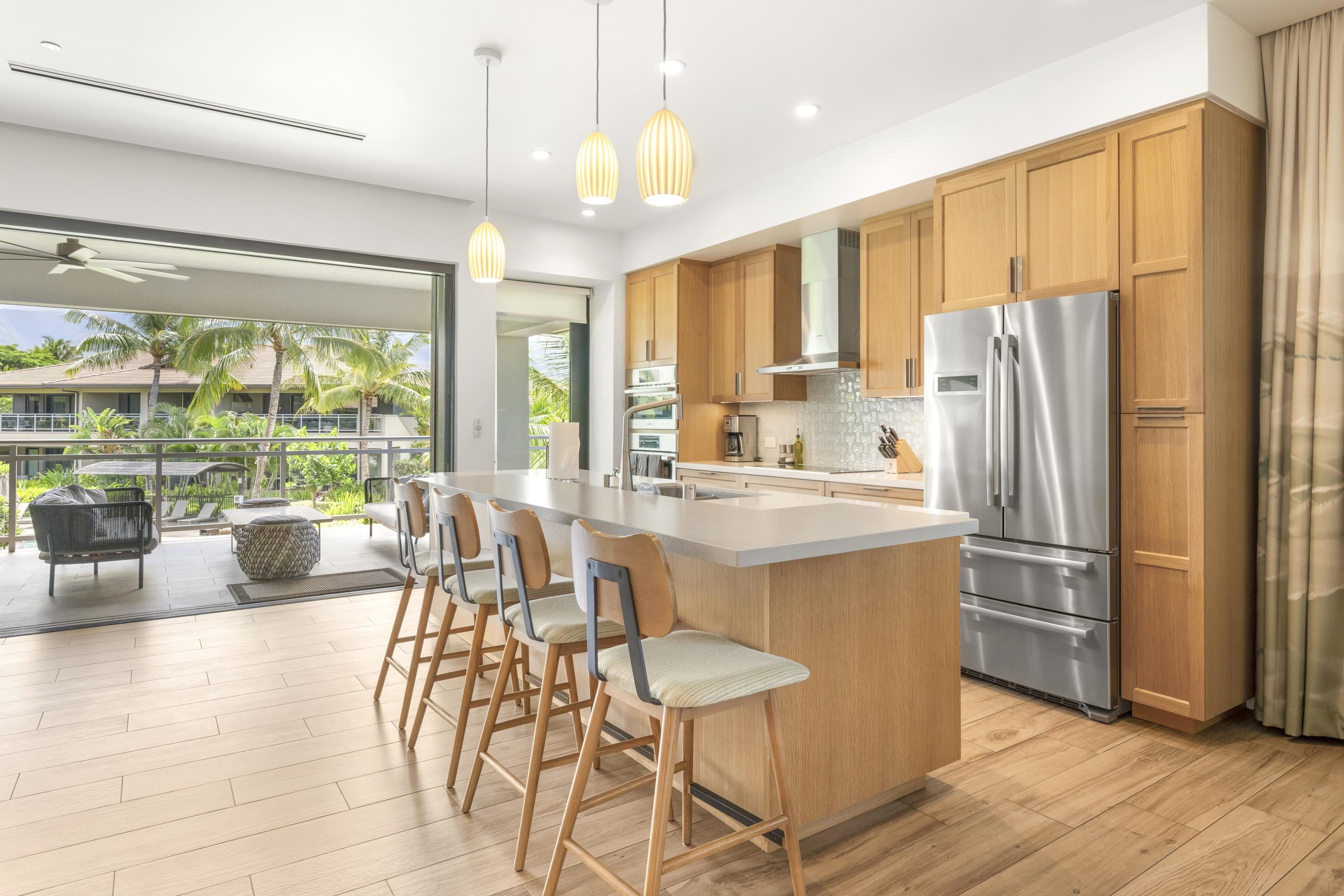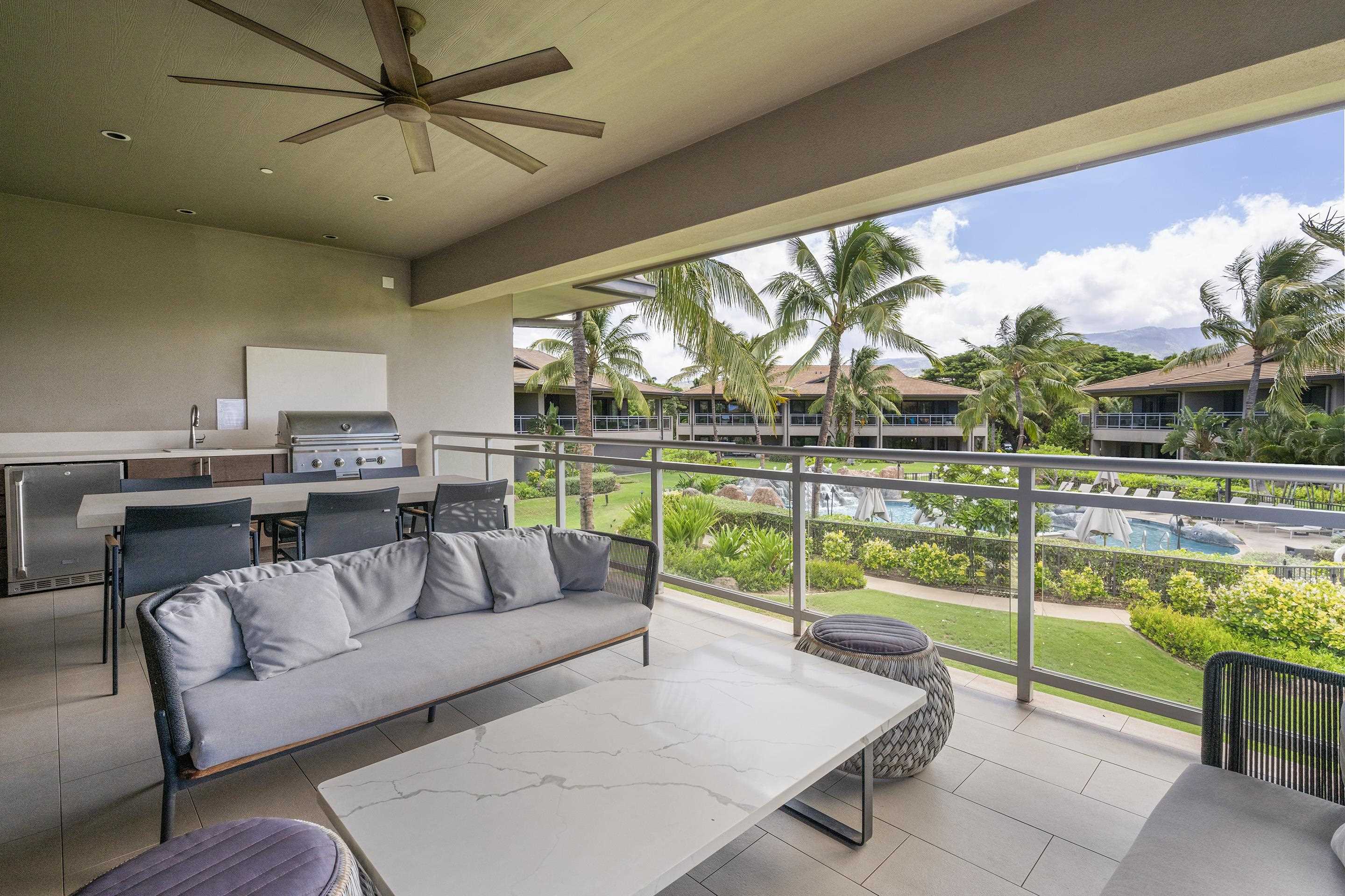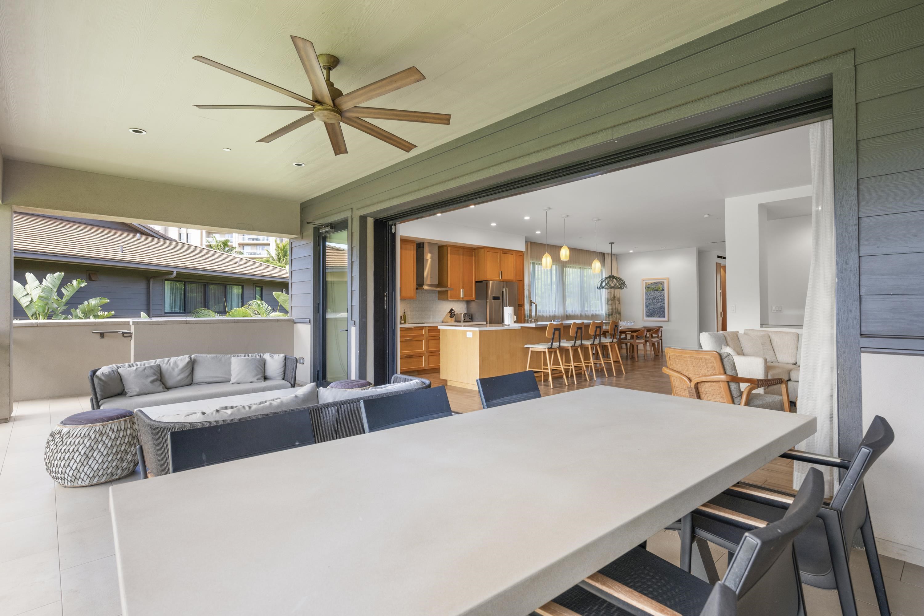 Luana Gardens Villa 17D is now available to purchase! Rarely offered, this luxurious 3-bedroom, 3-bath upper-level villa can now be yours. Its grandiose size (2,047 sq. ft., with a 521 sq. ft. lanai and private outdoor kitchen) exceeds every vacationers’ expectations. You can rent it to Maui visitors and reap the benefits of this potential investment. Or you can simply choose to use the home personally — it’s up to you! 17D has been professionally designed for total ultimate comfort and style as well as for general functionality. Hard-wood flooring provides a rich look and minimalistic feel. And speaking of lanais … this oversized lanai offers a gas BBQ for your cooking enjoyment along with waterfall and pool views in the near distance. Relax to the sound of flora and fauna. This home comes with a detached private garage for your car as well as additional parking for a second vehicle. If you want more pampering, simply book a message at the Resort Spa. It simply doesn’t get any better than this. Priced very competitively, this home is a MUST consider for the discriminating buyer. Luana Garden Villas is the third and final phase of Honua Kai Resort & Spa, and is located on stunning Kaanapali Beach on Maui’s West Side. The 38 family-friendly acres are designed with relaxation and memory-making in mind, offering owners and guests an unmatched resort experience with something for the whole family. As a Luana Garden Villa owner, you have full access to the all resort amenities at Honua Kai. Luana is comprised of 72 three-bedroom villas with detached garages arranged in three intimate enclaves.