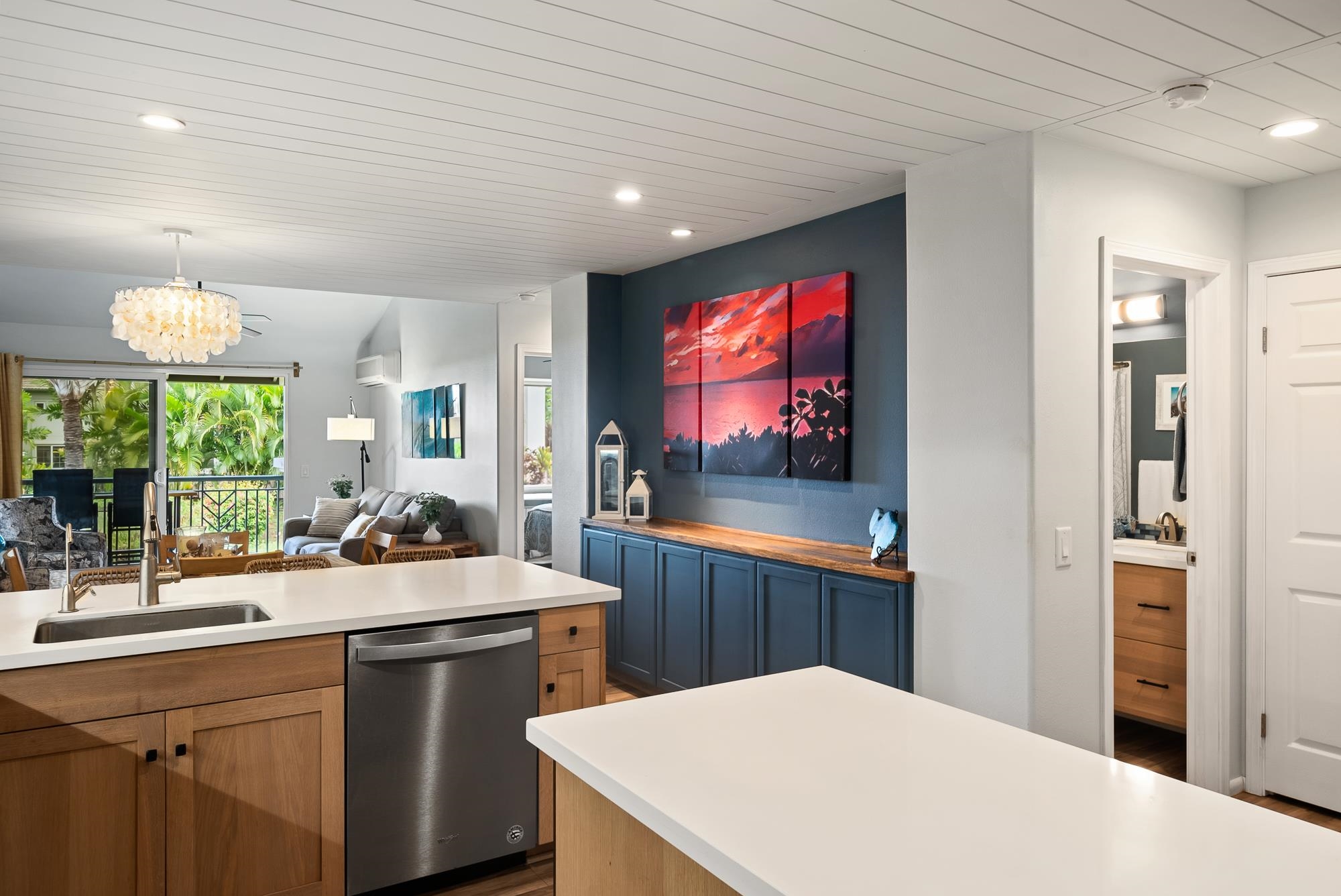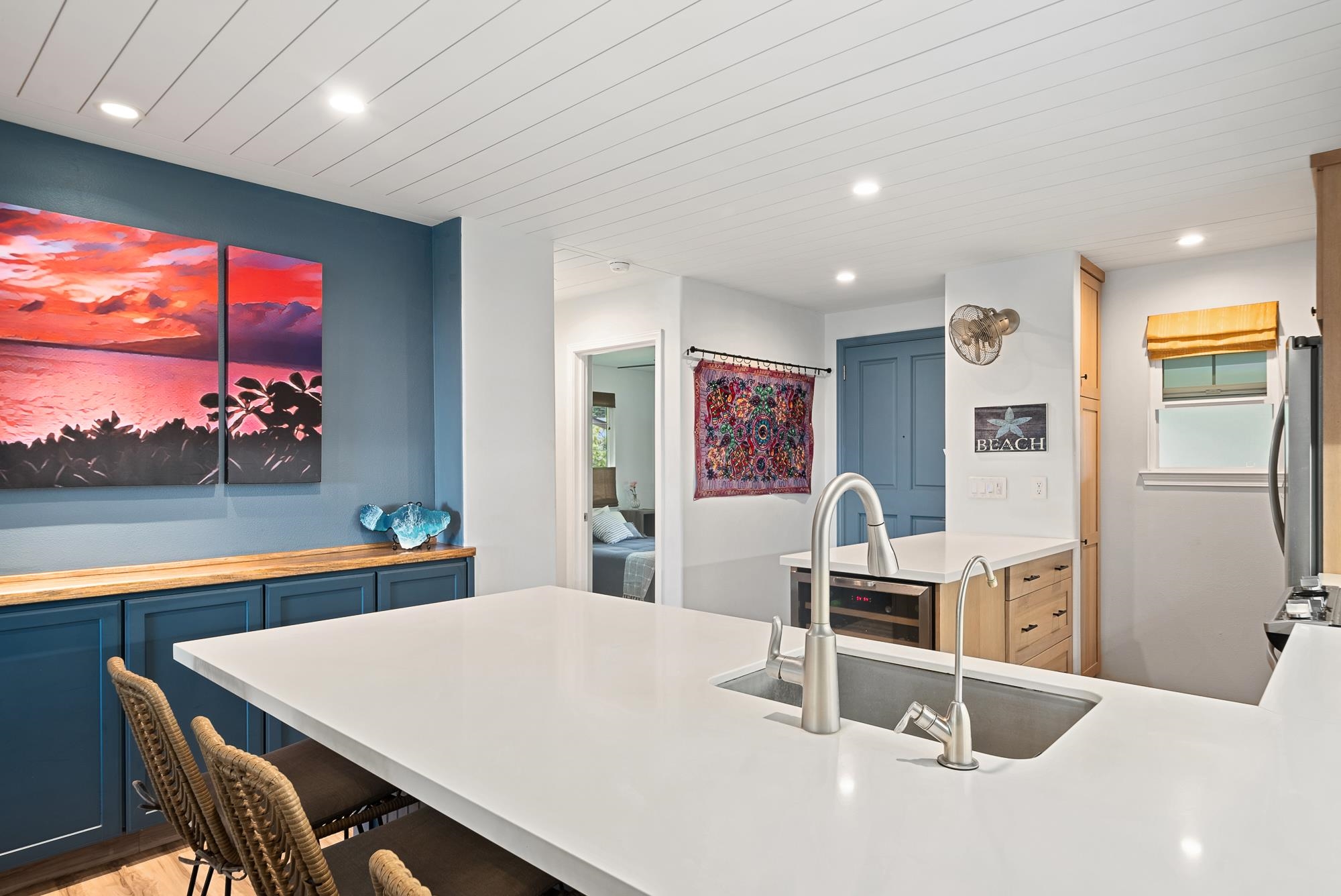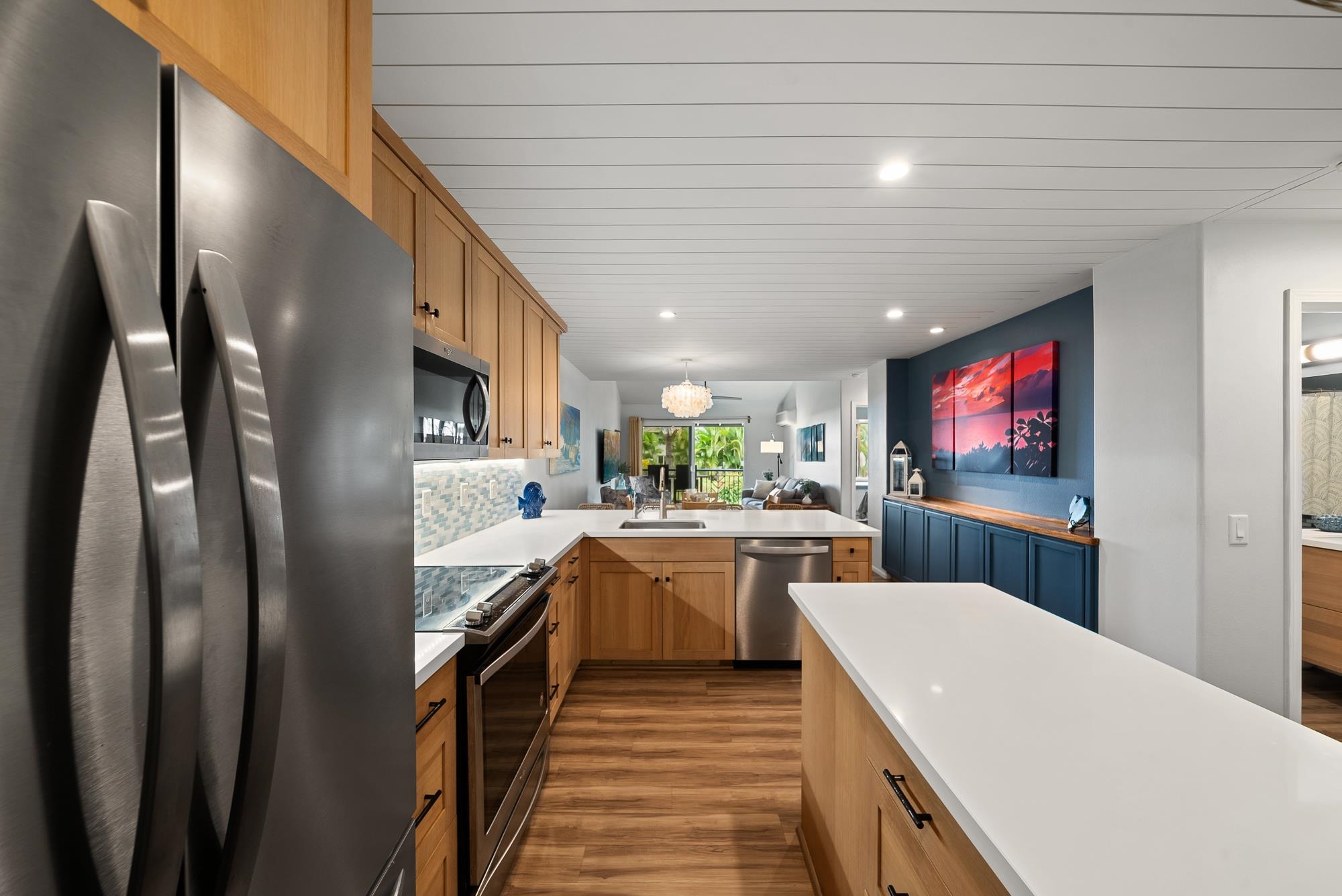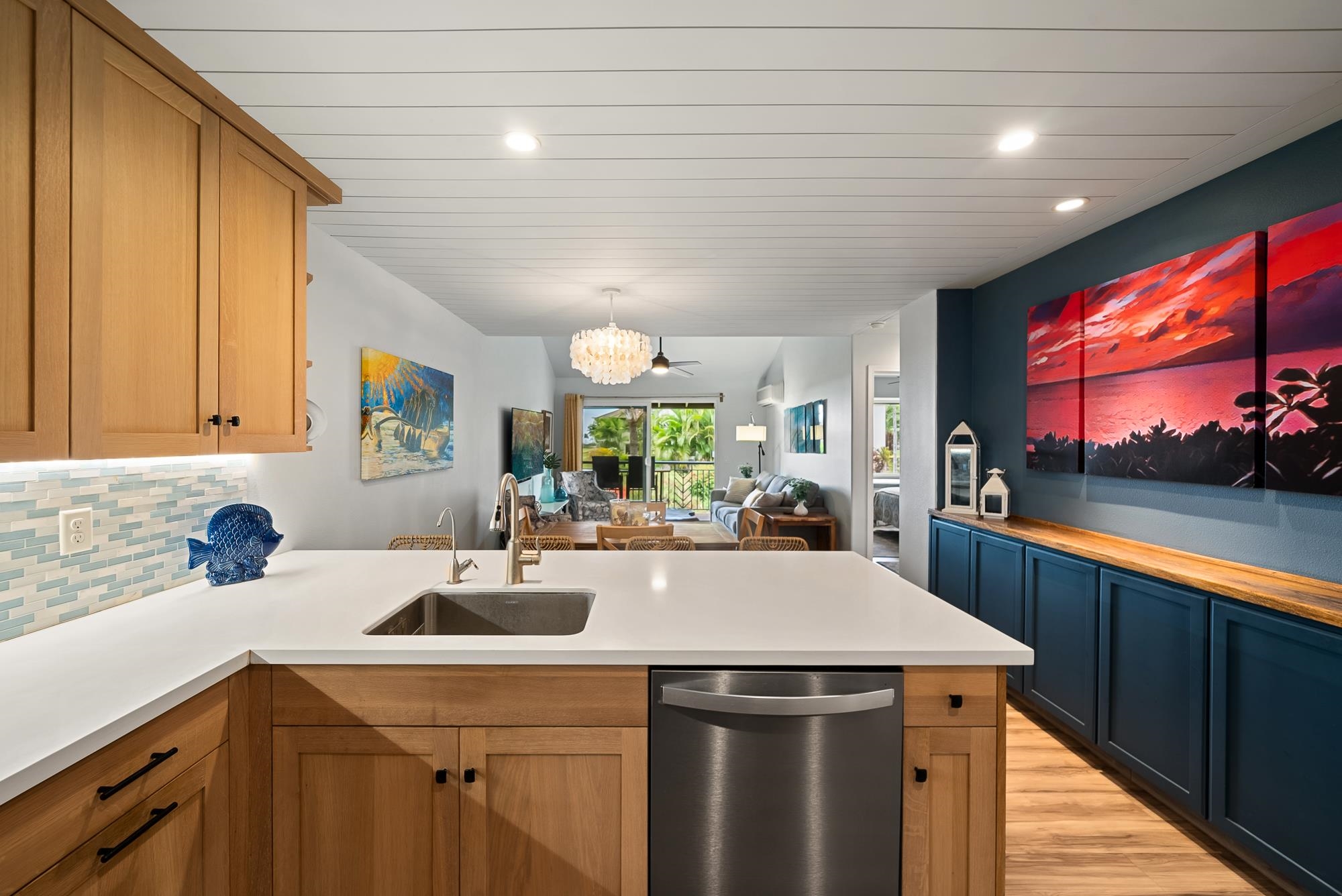 Perched above the Fairways with captivating ocean vistas, this tastefully renovated Wailea Fairway Villas residence is a retreat designed for those who appreciate classic refinement and modern luxury. This 2-bedroom 2-bath condo offers the most value per square foot. The interiors have been reimagined with high-end finishes such as custom white oak kitchen cabinets, an extended kitchen area, a sophisticated open-concept layout with additional counter space that's integrated with a climate controlled wine fridge. Additionally, installed is a reverse osmosis water system for water and ice, and has easily accessible attic storage. Enjoy seamless indoor-outdoor living that frames the Pacific Ocean and West Maui mountains as your backdrop. Right from your balcony, you'll enjoy Maui's legendary sunsets, as well as the winter visits of whale season. Every moment here is bathed in natural beauty. Set in the heart of prestigious Wailea, unit V-202 places you within minutes of world-renowned beaches, five-star resorts, championship golf, and The Shops at Wailea's luxury boutiques and fine dining. The complex itself offers resort-inspired amenities including a pool, clubhouse, fitness center, and barbecue pavilions, all embraced by tropical landscaping and sweeping island views. More than a home, this is an invitation to embrace the Wailea lifestyle- sophisticated, serene, and endlessly inspiring.